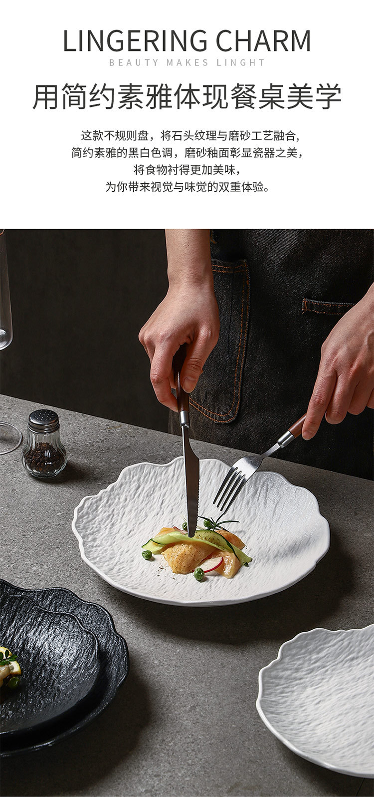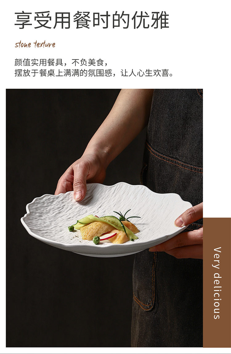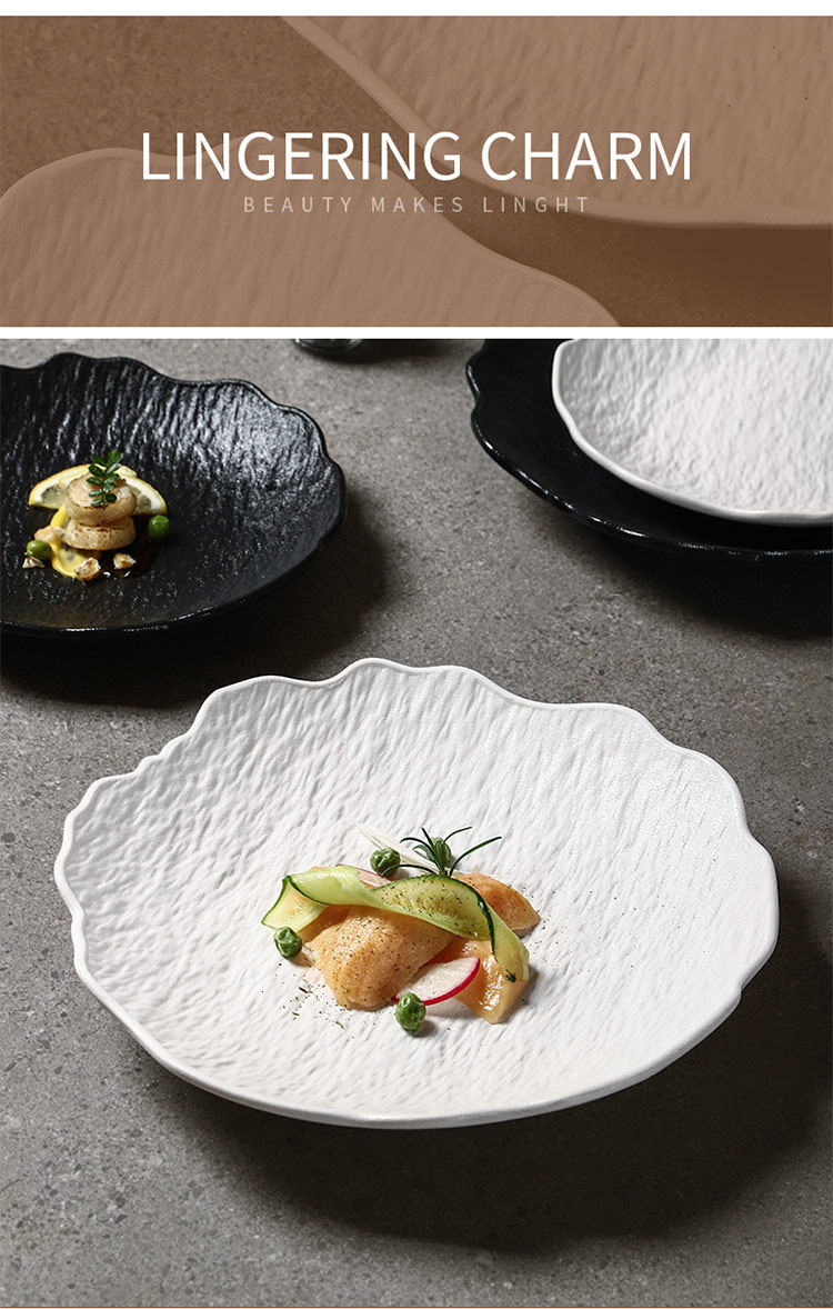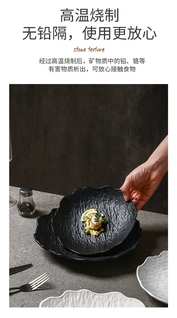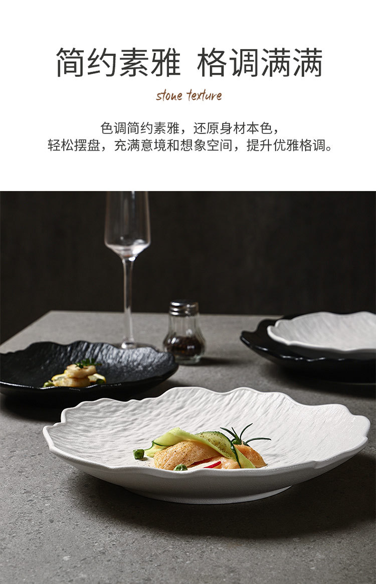 일본식 심플 8inch 특별한 모양의 가정용 깊은 접시 호텔 접시 고급 흑백 돌 무늬 세라믹 식기