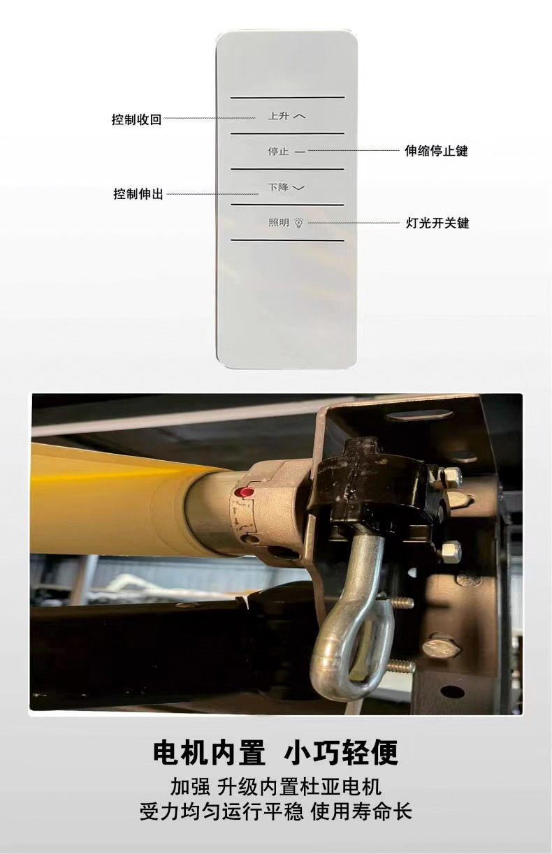 • 조명이 포함된 고급 전기, 벽에 대한 높은 방수 강화, 6m 텔레스코픽, 3m