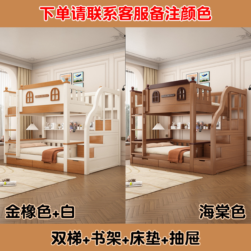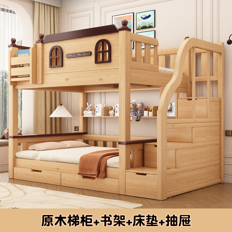 Xizhi 원목 하이 및 로우 베드 성인용 이층 침대 어린이용 이층 침대 어머니-자식 침대스토어 가기