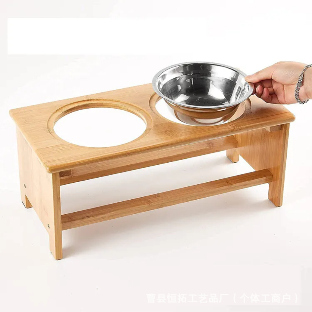 고양이 그릇 랙 단단한 나무 바닥에 두 개의 그릇이 있는 더 높은 먹이 랙 대나무 작은 개 고양이 사료 물 그릇 랙 애완 동물 용품스토어 가기