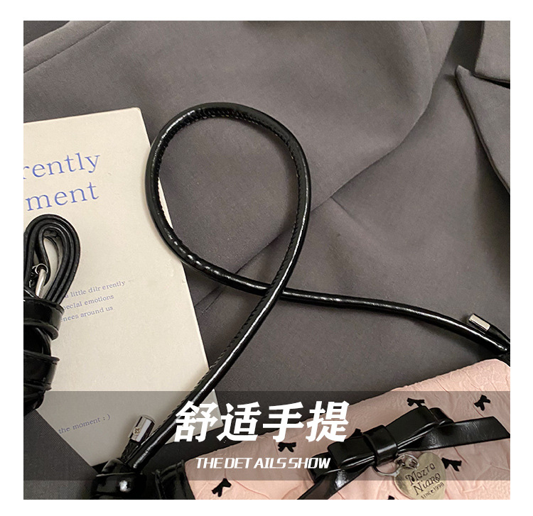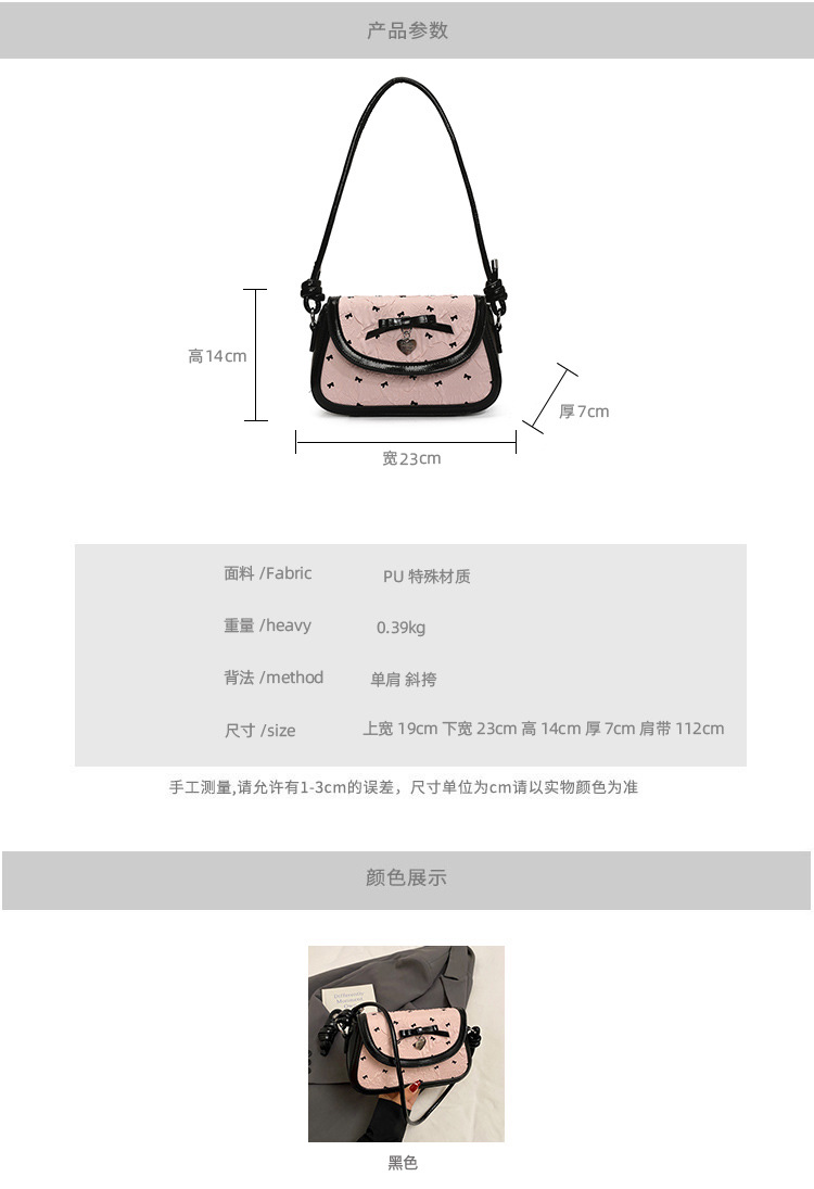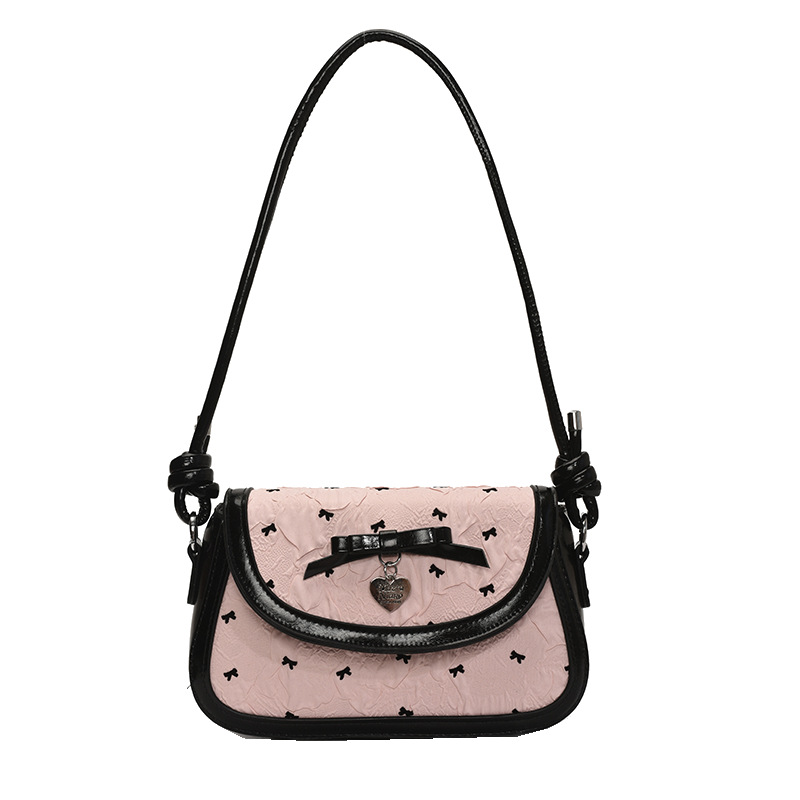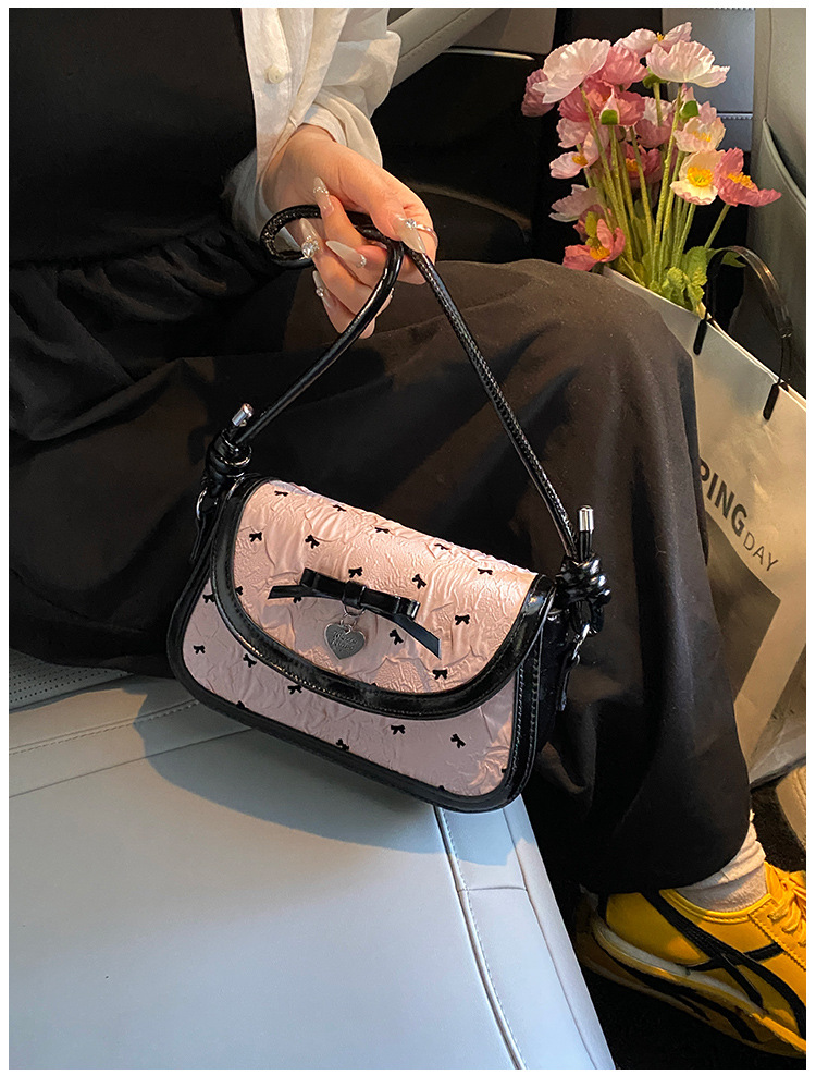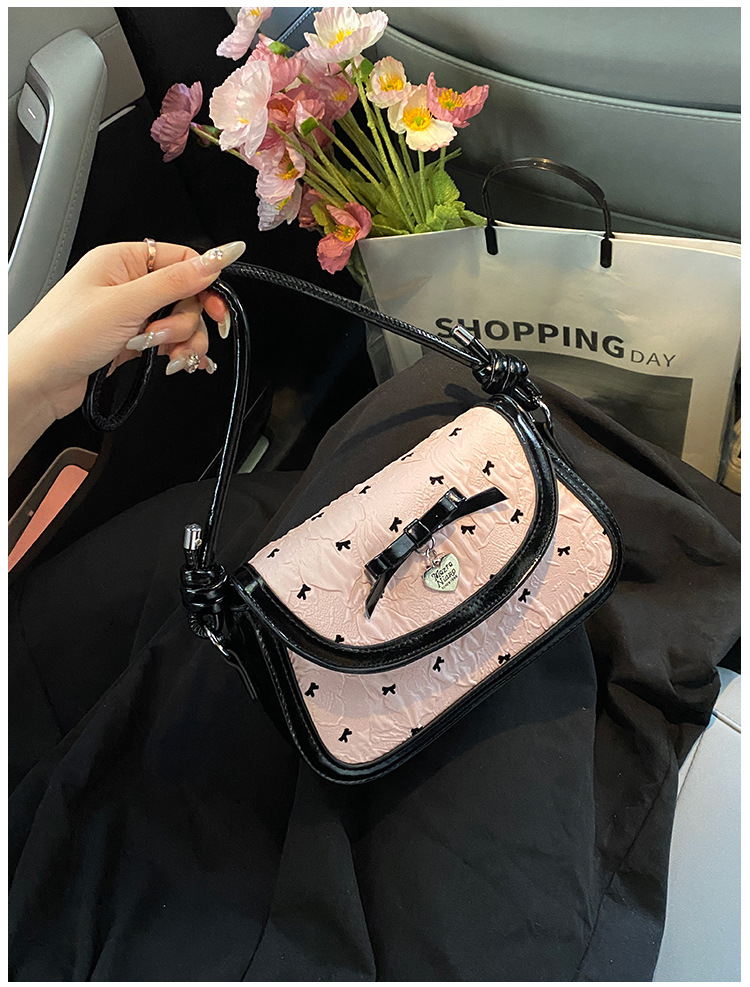 블랙과 핑크의 대비되는 리본 작은 가방 여성 2025 여름 새로운 어깨 겨드랑이 가방 세련된 폴카 도트 손 가방스토어 가기