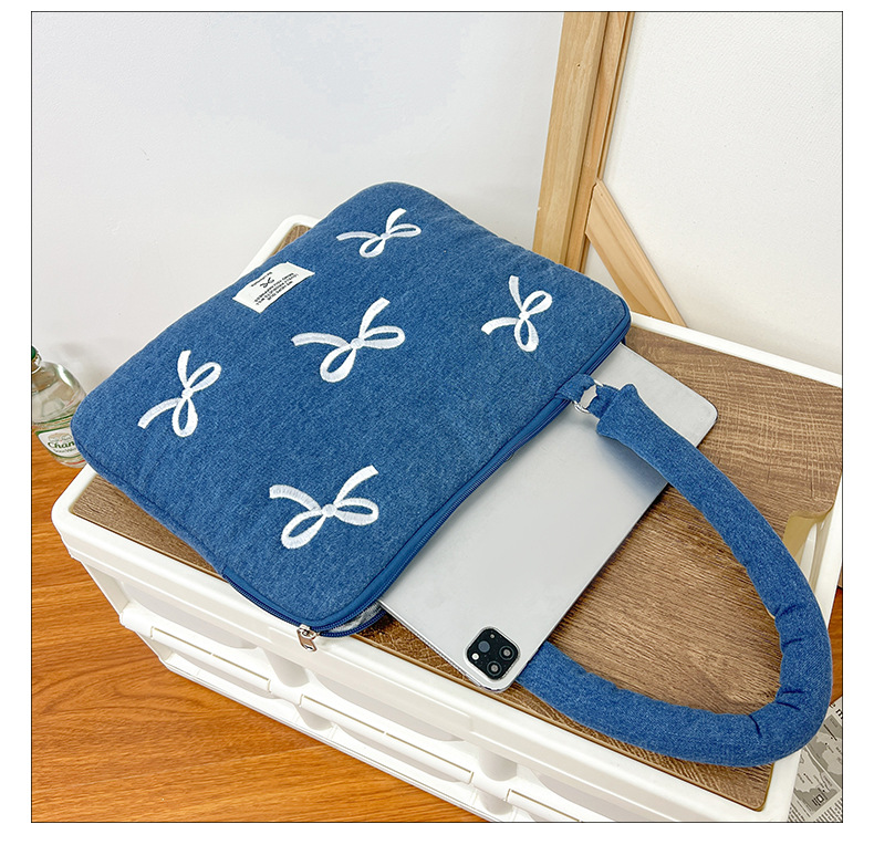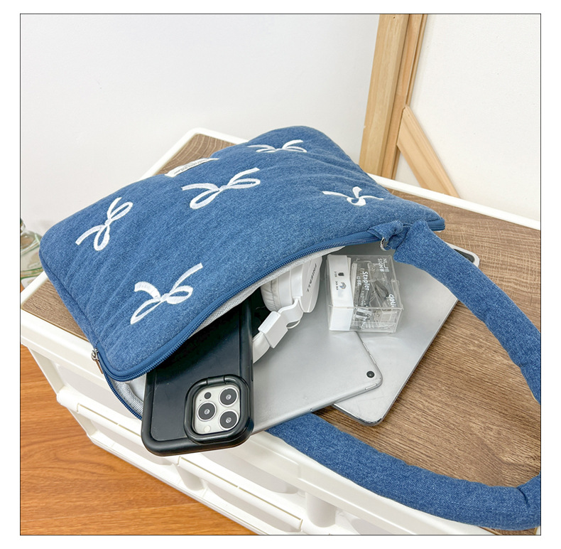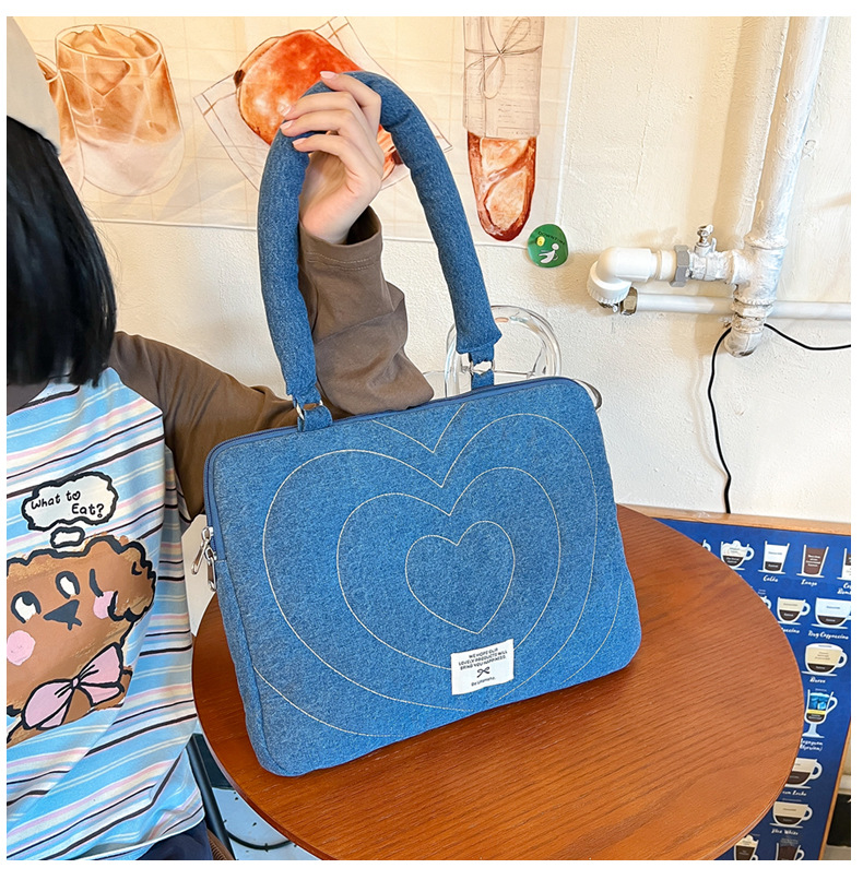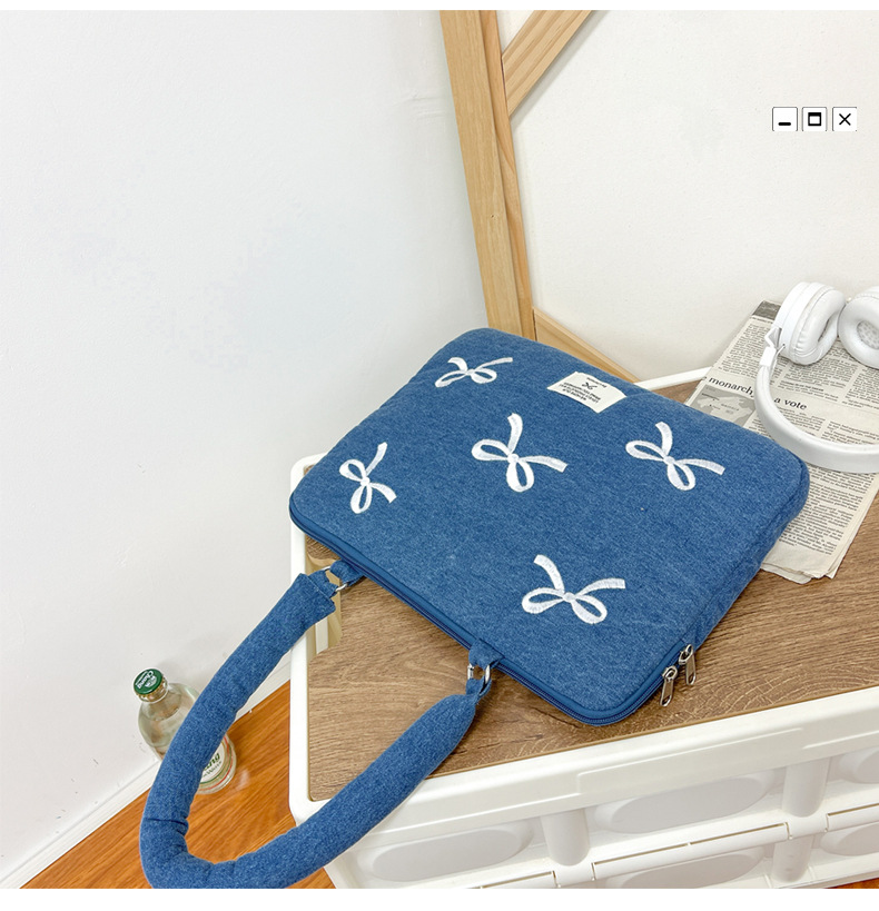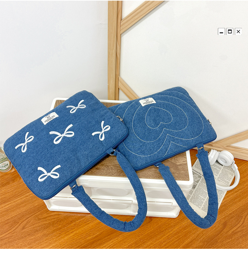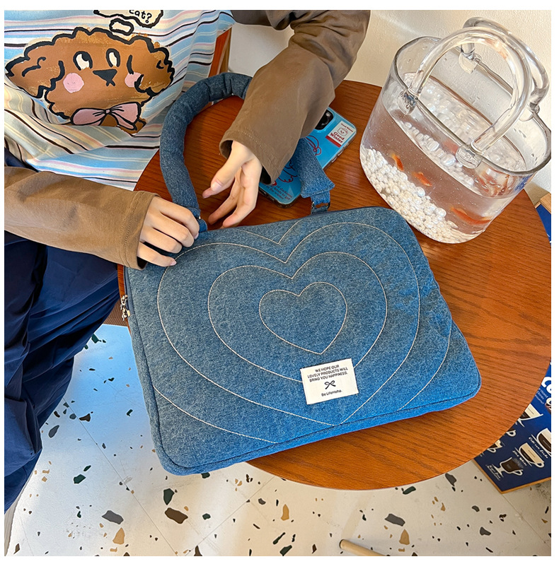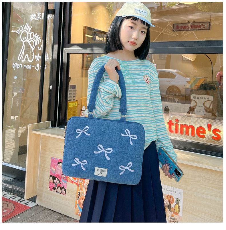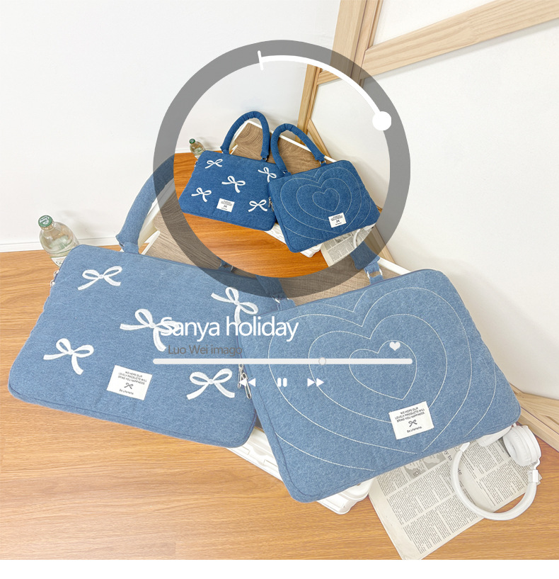 한국 ins 여름 워시 데님 자수 노트북 가방 패션 새로운 다용도 숄더백 휴대용 태블릿 가방