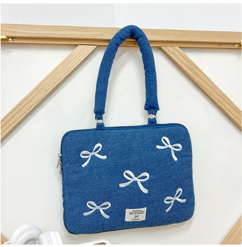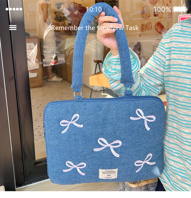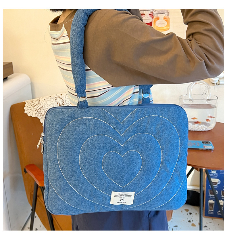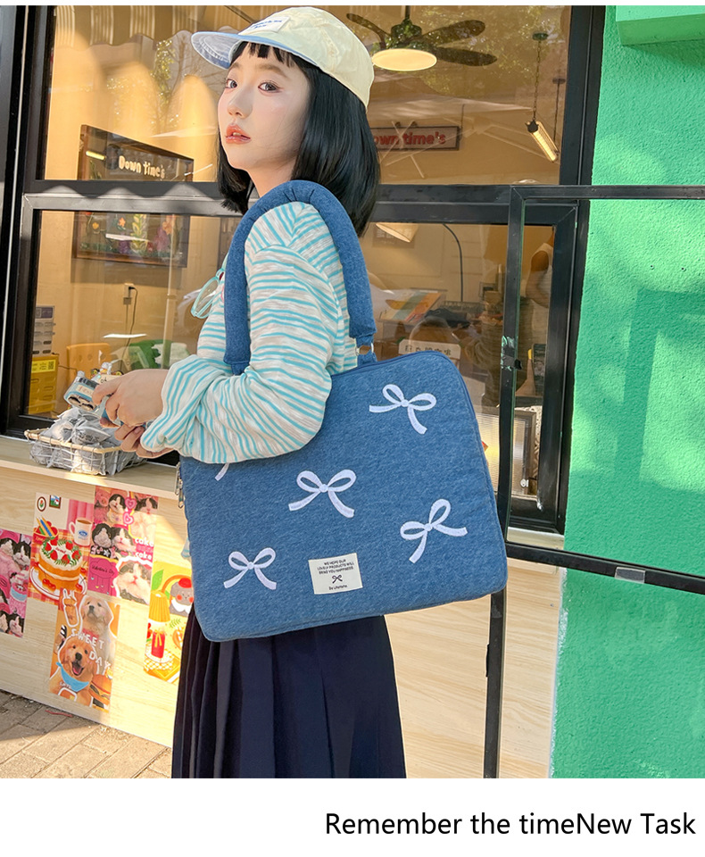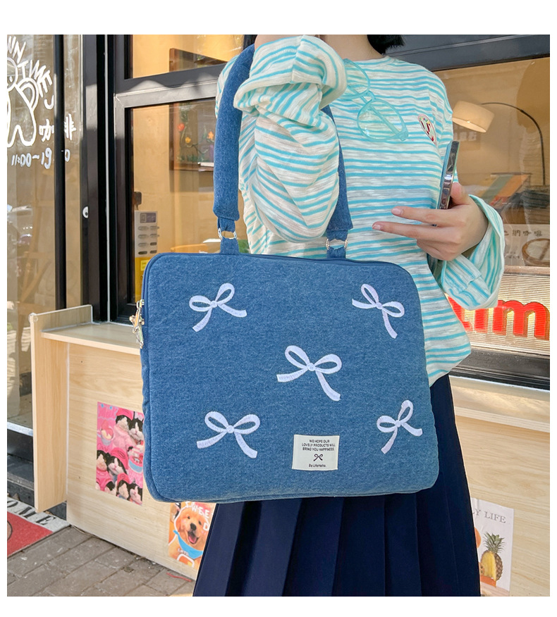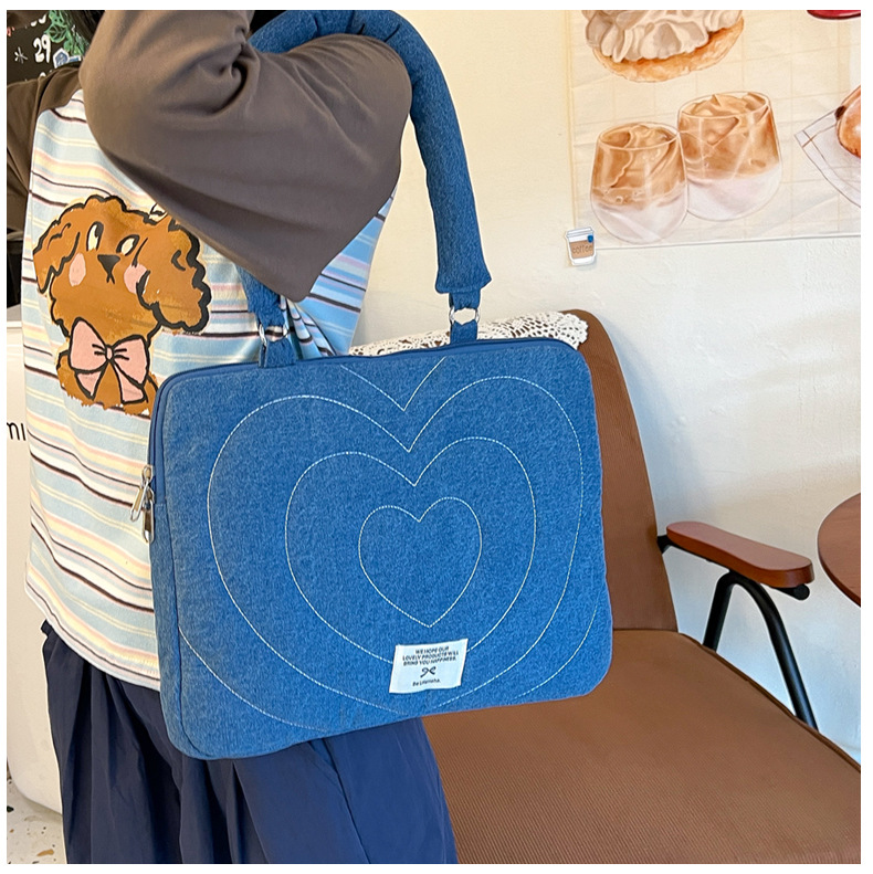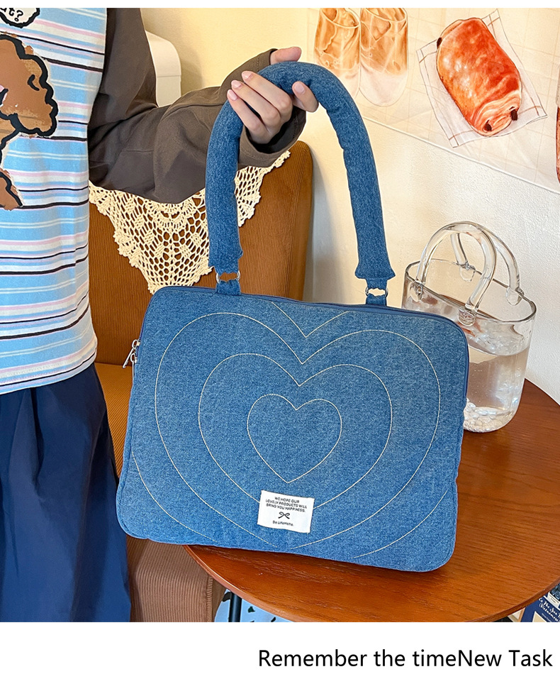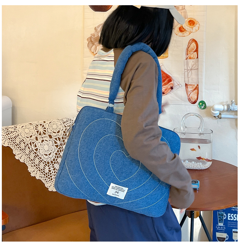 한국 ins 여름 워시 데님 자수 노트북 가방 패션 새로운 다용도 숄더백 휴대용 태블릿 가방