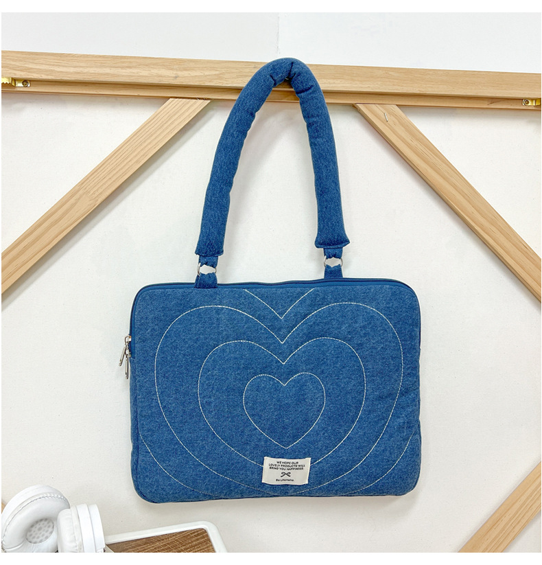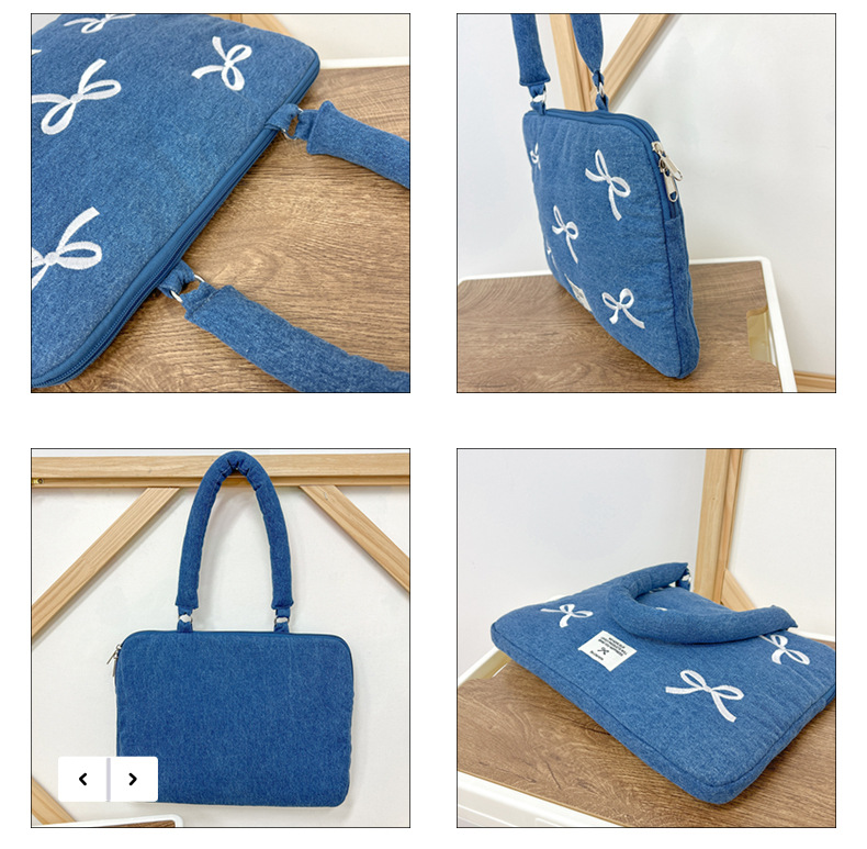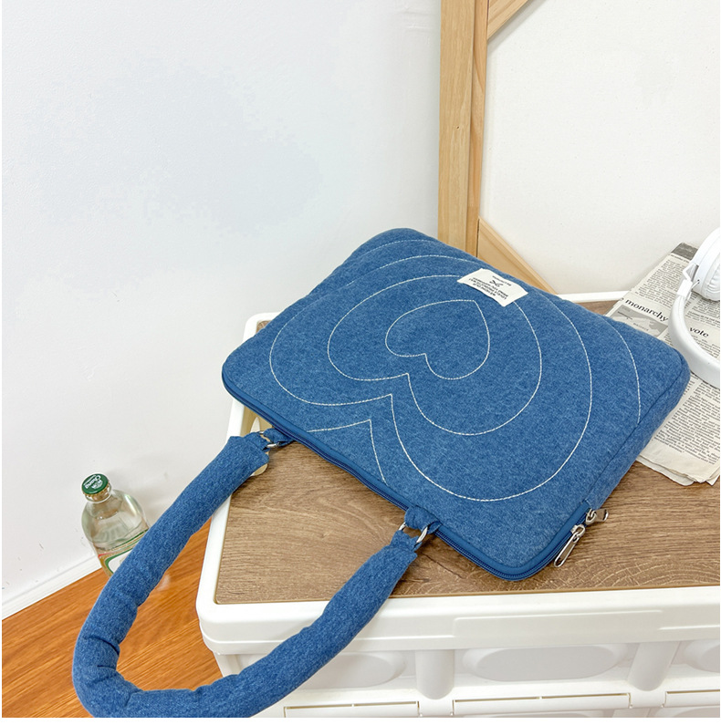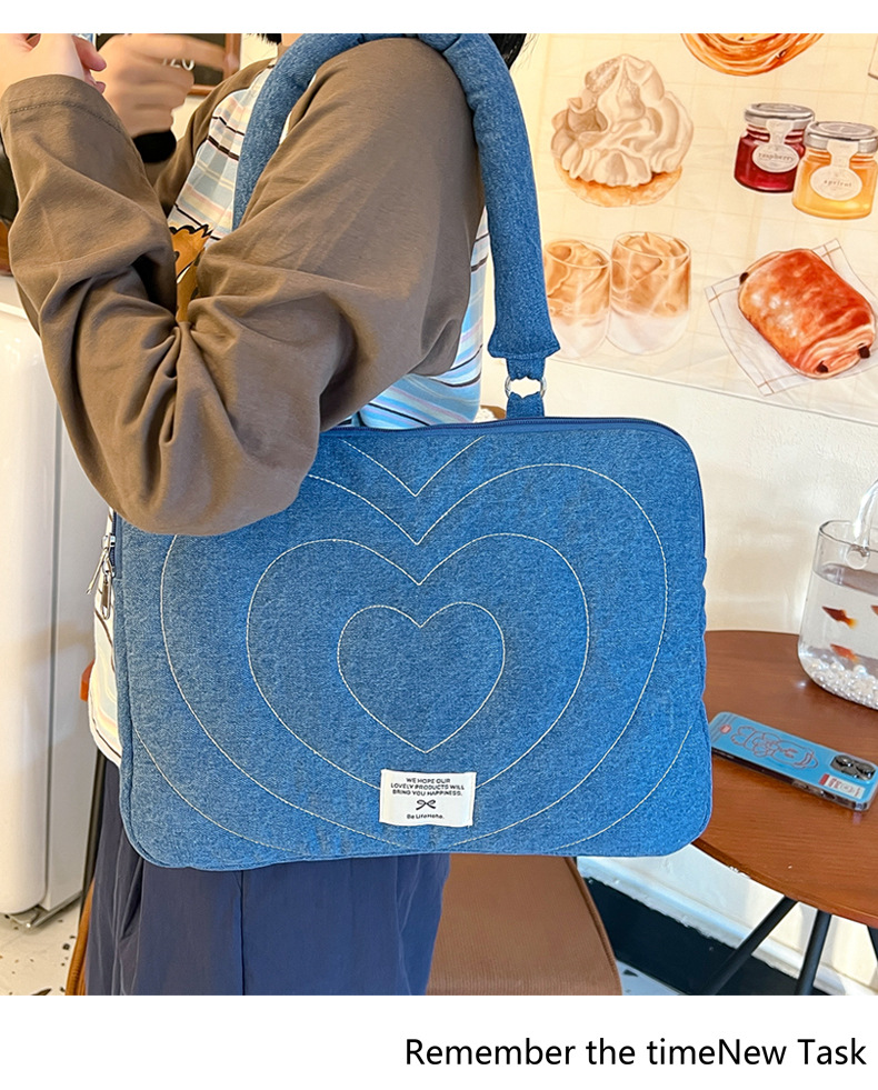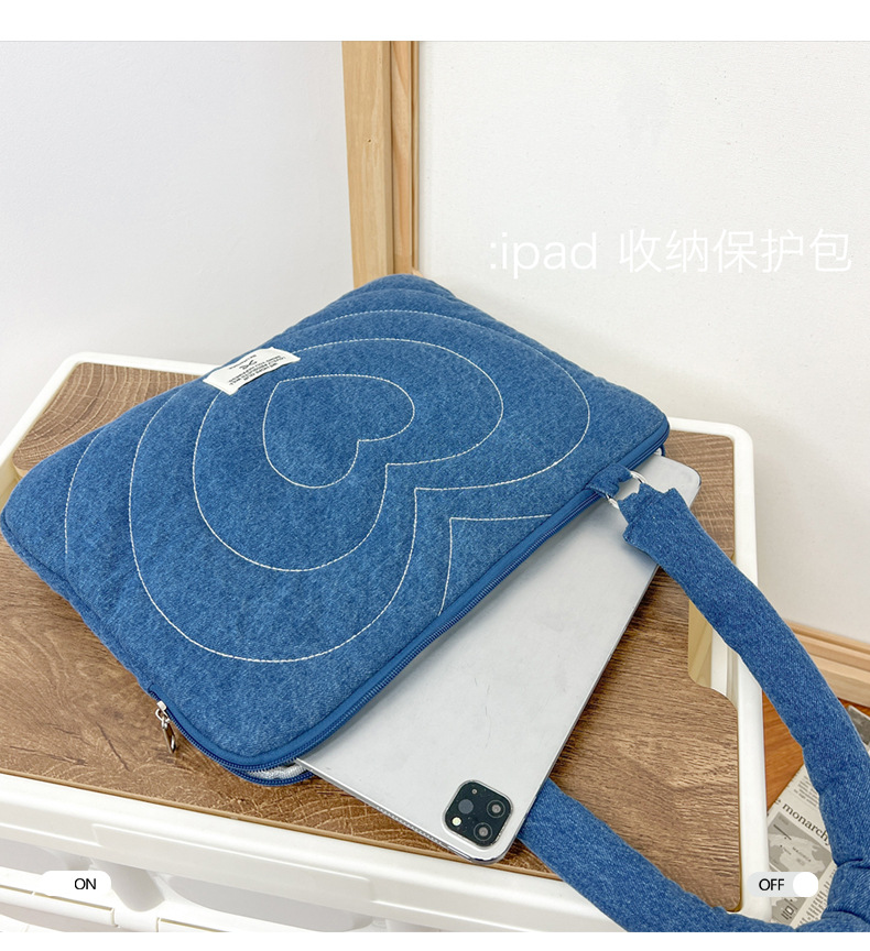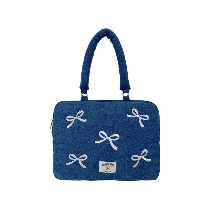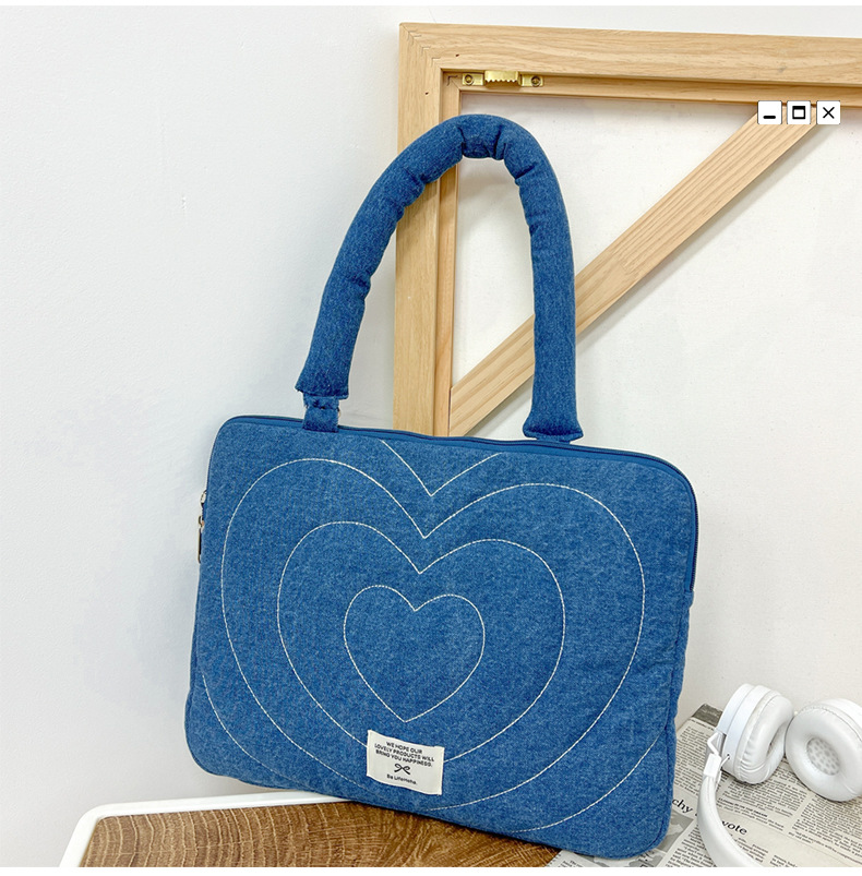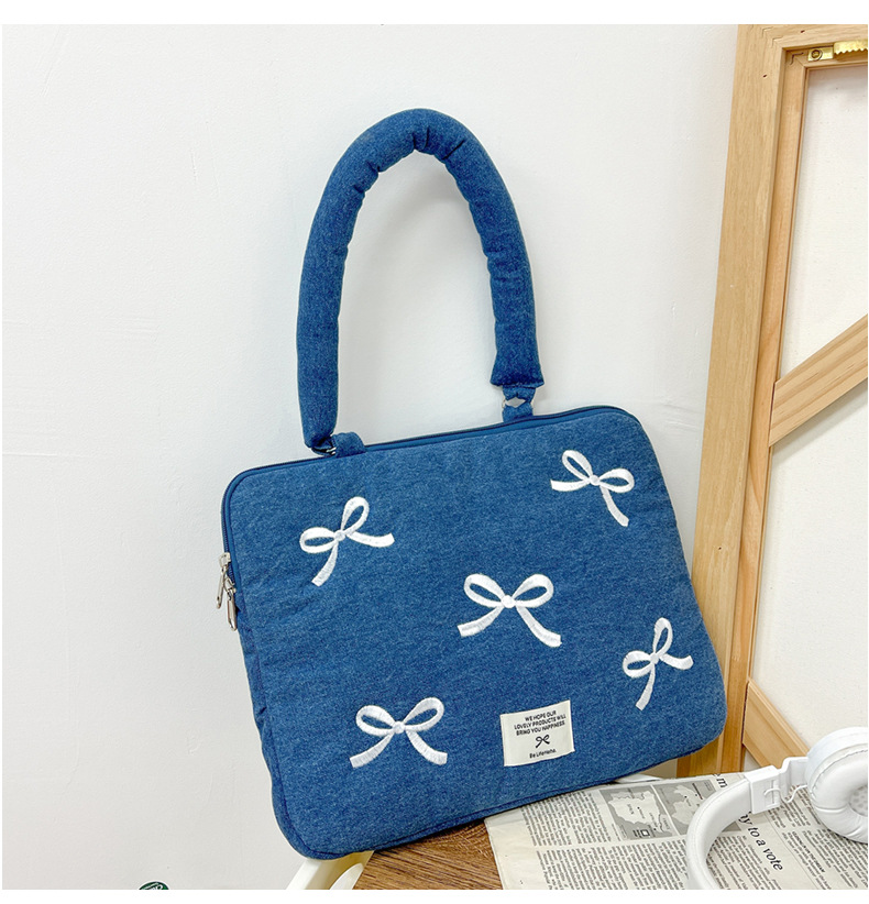 한국 ins 여름 워시 데님 자수 노트북 가방 패션 새로운 다용도 숄더백 휴대용 태블릿 가방