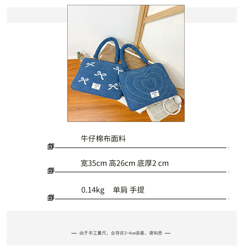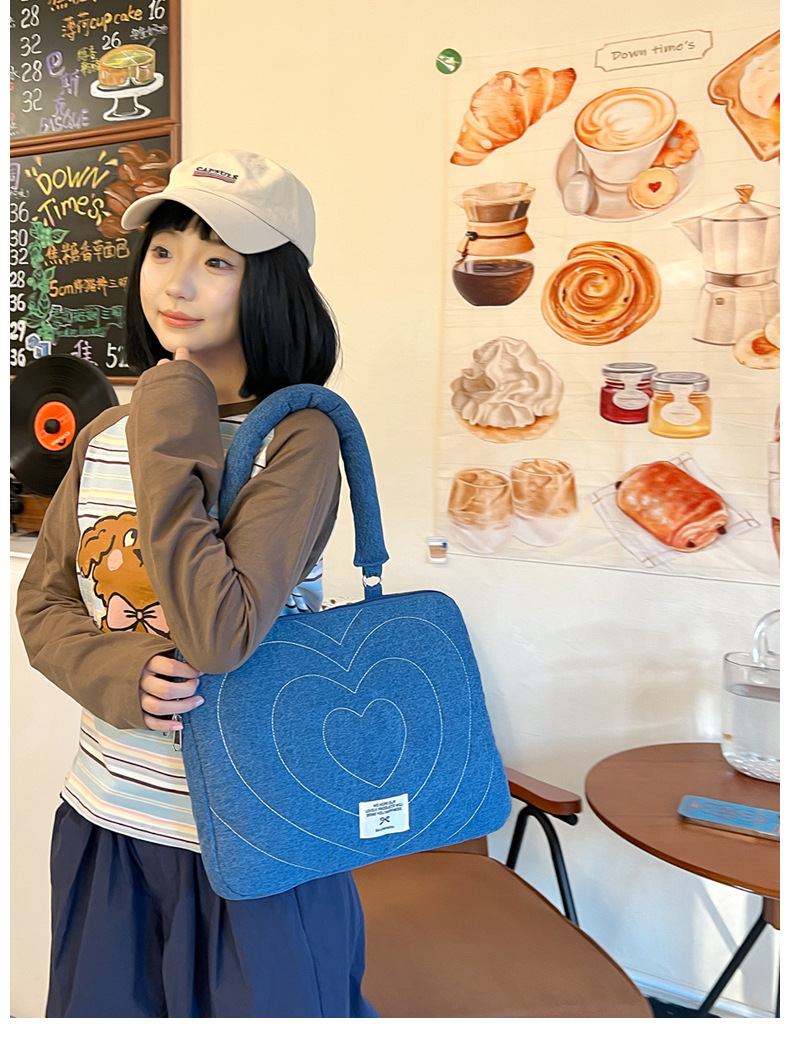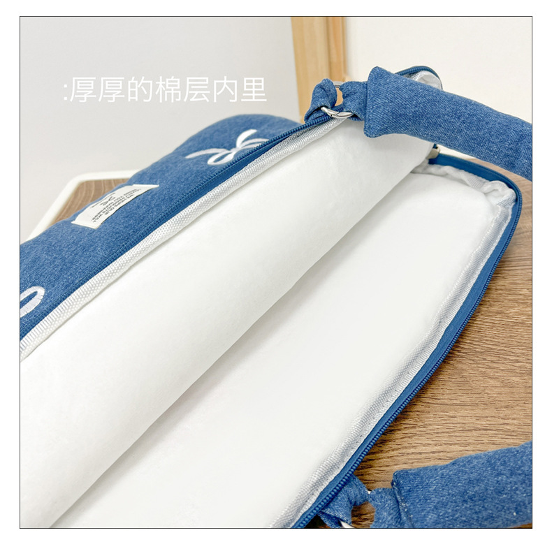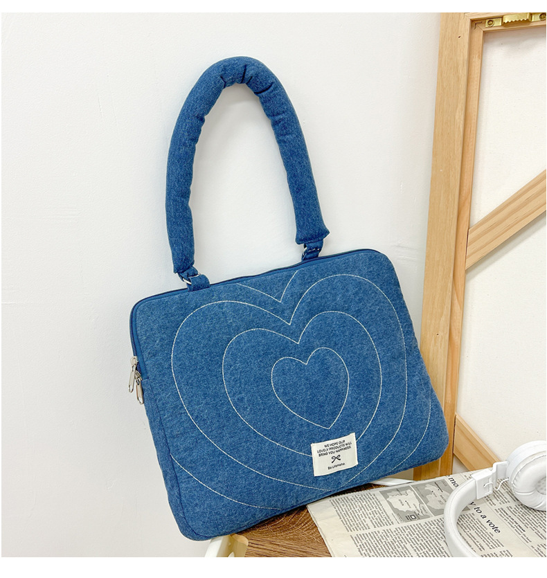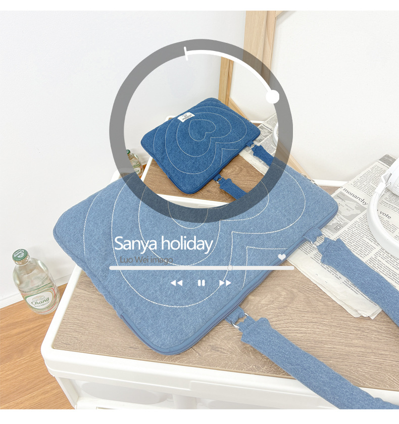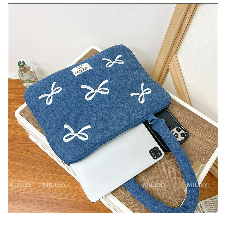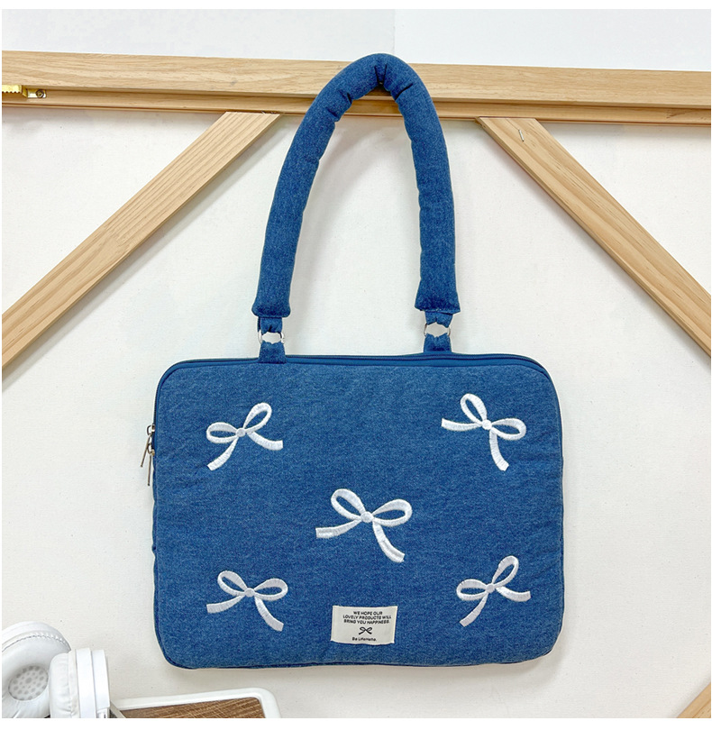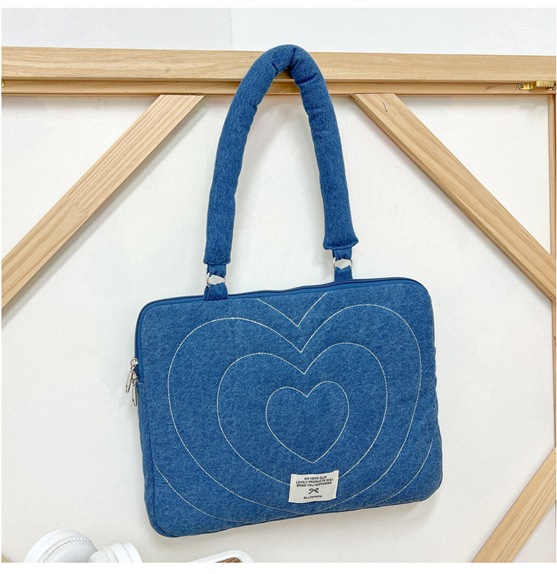 한국 ins 여름 워시 데님 자수 노트북 가방 패션 새로운 다용도 숄더백 휴대용 태블릿 가방