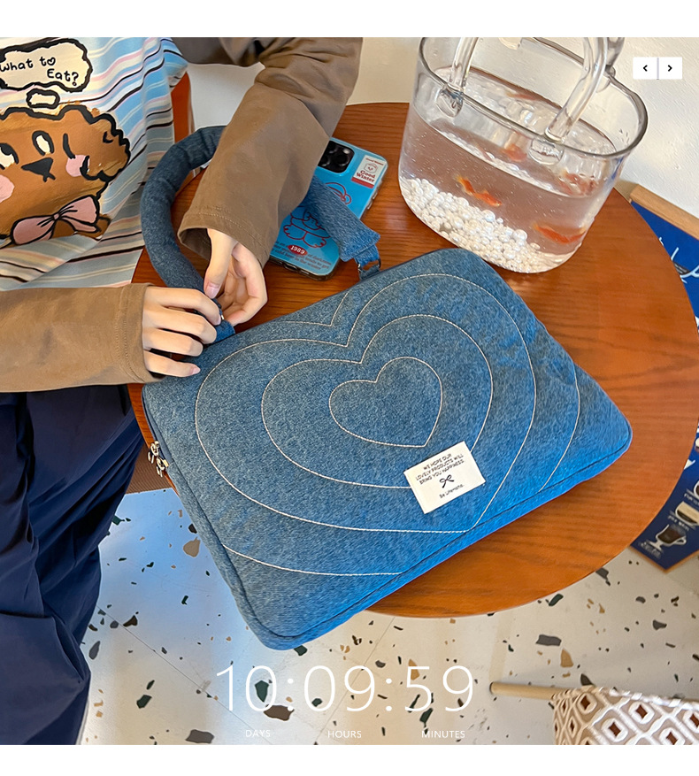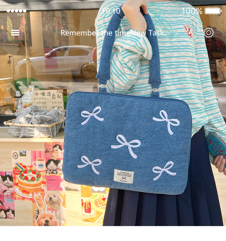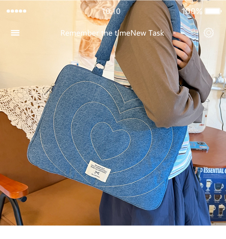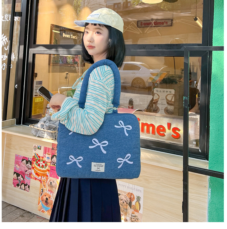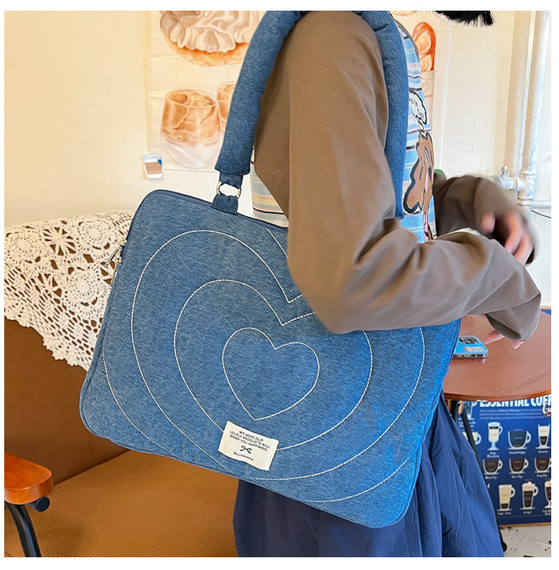 한국 ins 여름 워시 데님 자수 노트북 가방 패션 새로운 다용도 숄더백 휴대용 태블릿 가방스토어 가기