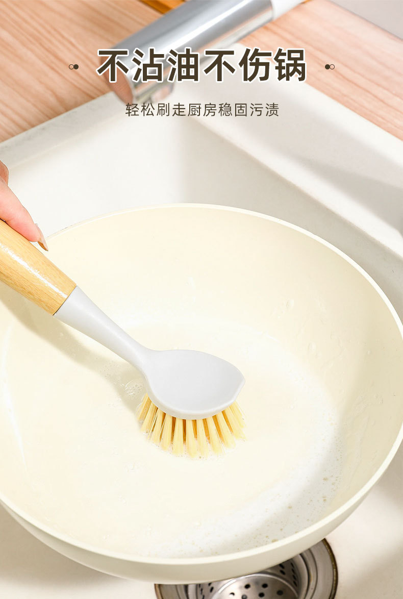 천연 사자수 냄비 브러시 가정용 긴 손잡이 식기 세척 냄비 나무 손잡이 브러시 주방 다기능 청소 브러시 청소 유물