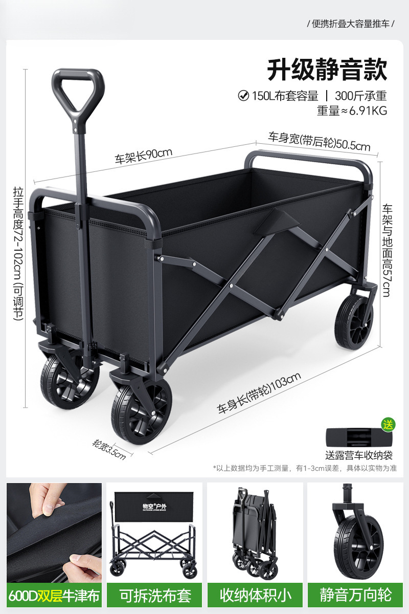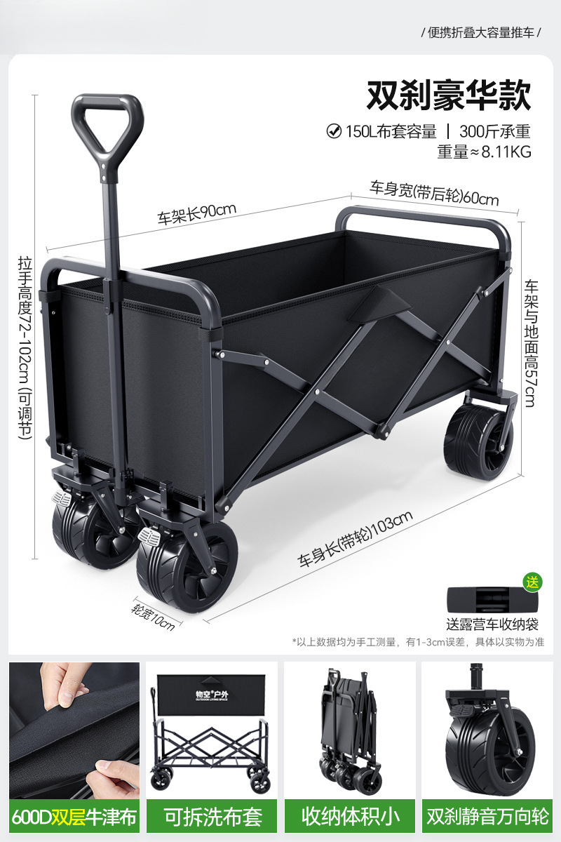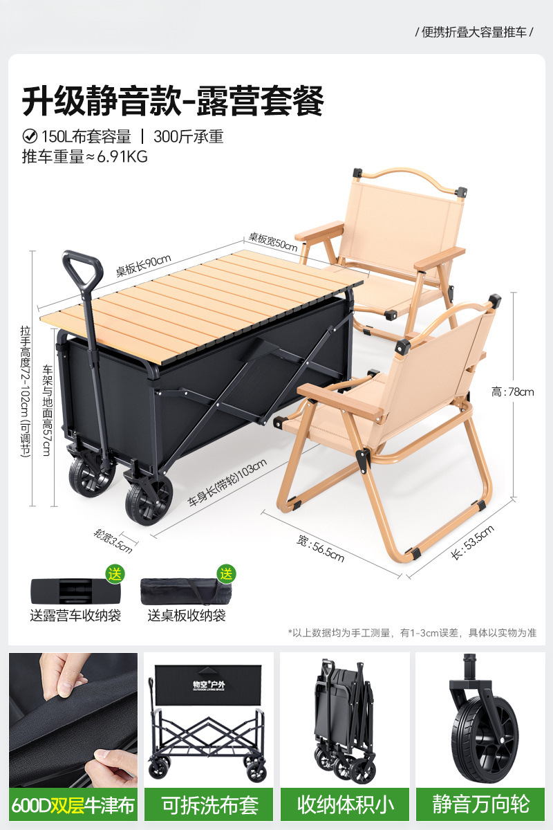 • 캠핑 세트 [특대형 사일런트 휠/흑요석 블랙] + 특대형 및 두꺼워진 올스틸 바디 + 유니버설 휠 + 접이식 카키 테이블