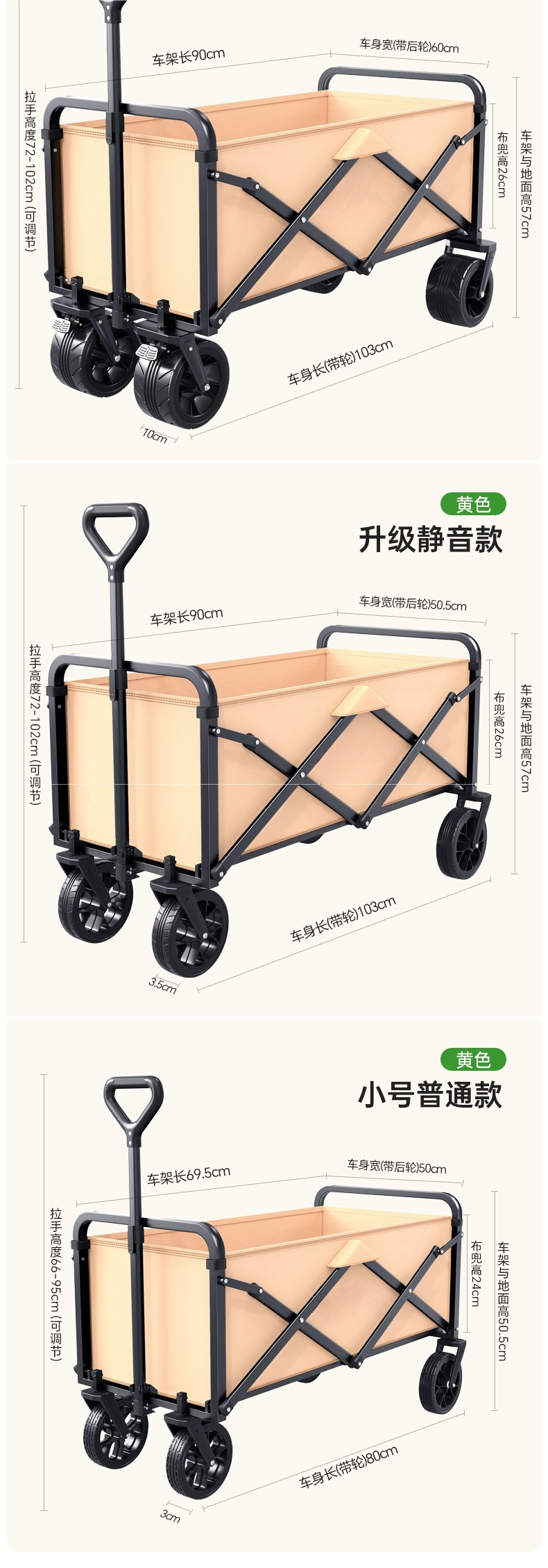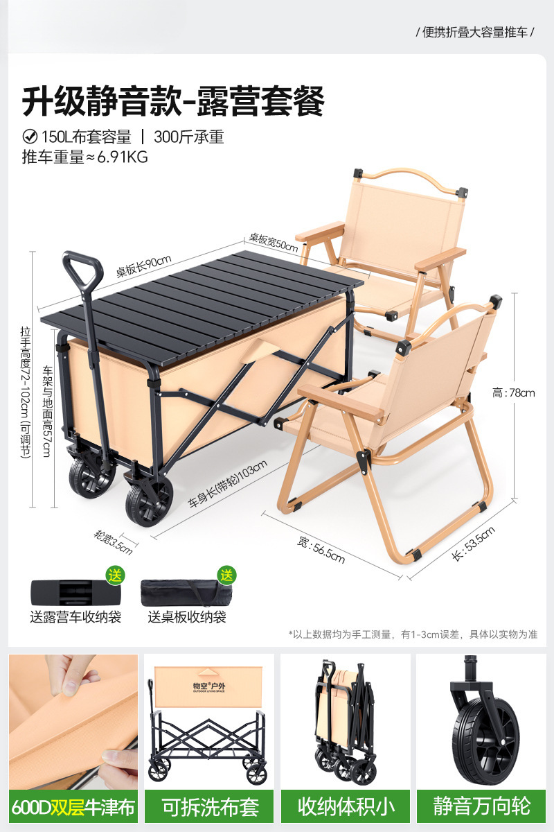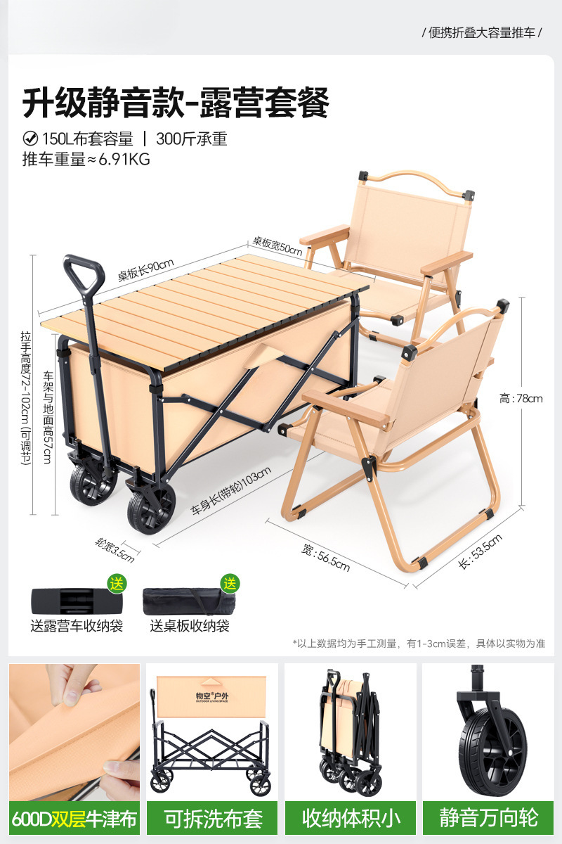 • 캠핑 세트 [특대형 사일런트 휠/고운 샌드 옐로우] + 특대형 및 두꺼워진 올스틸 바디 + 유니버설 휠 + 접이식 카키 테이블
