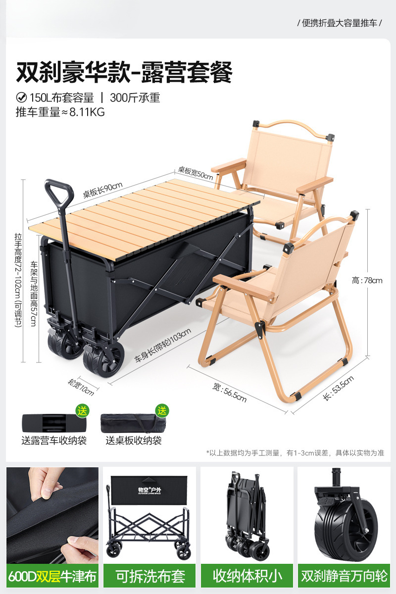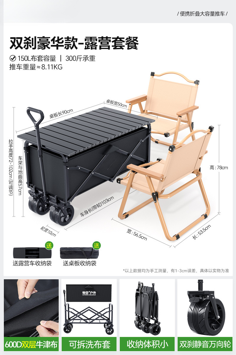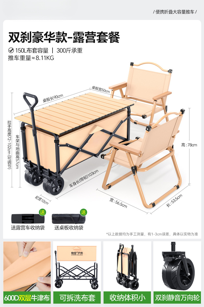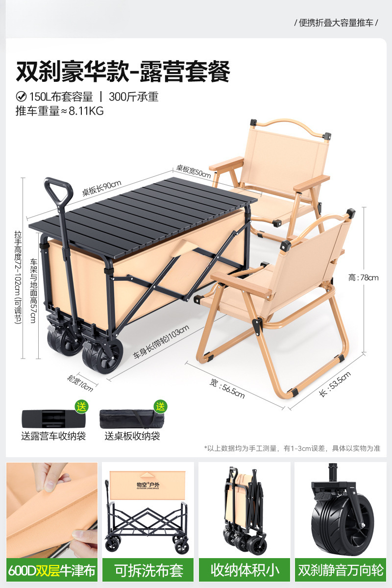 • 플래그십 모델 - 캠핑 세트 [비행기 바퀴/고운 모래 노란색] 슈퍼 올 스틸 바디 + 더블 브레이크 유니버설 휠 + 접이식 흑요석 블랙 테이블