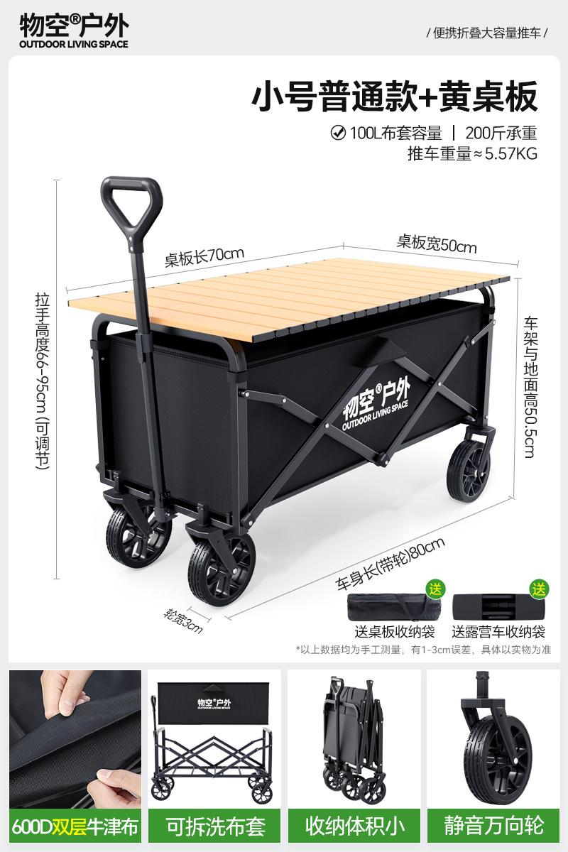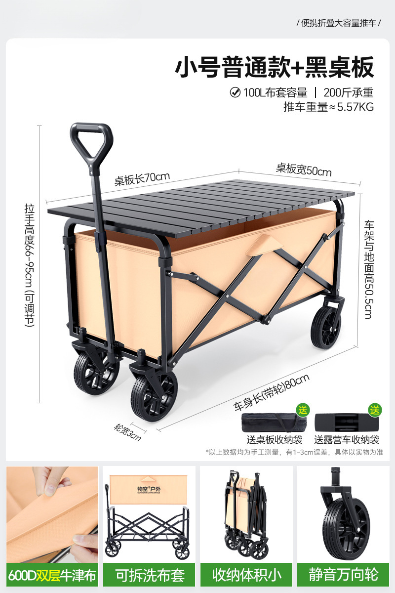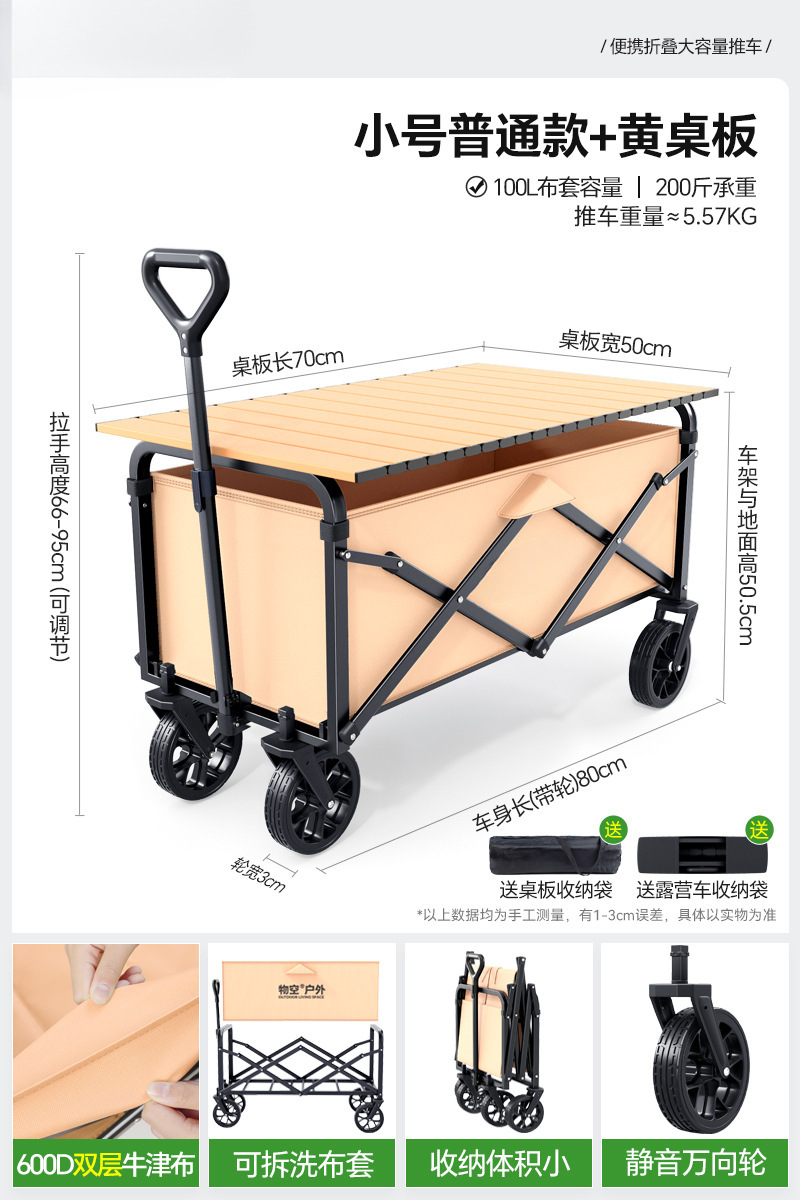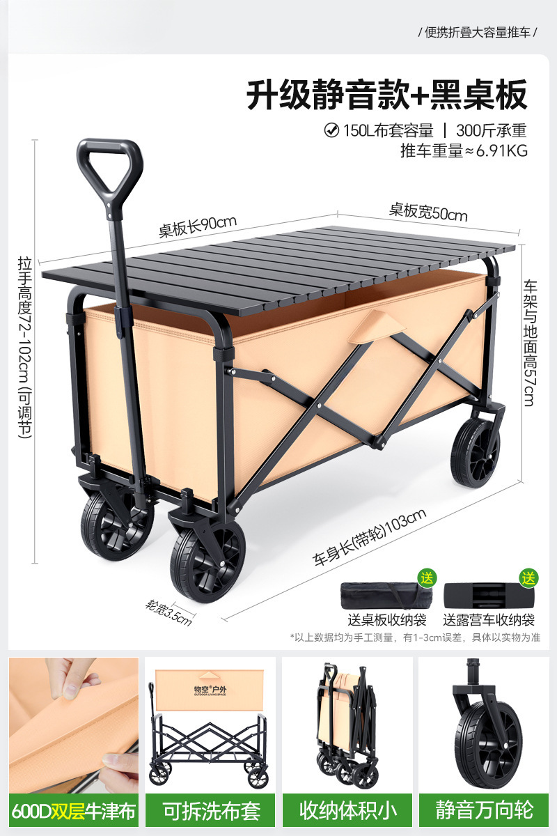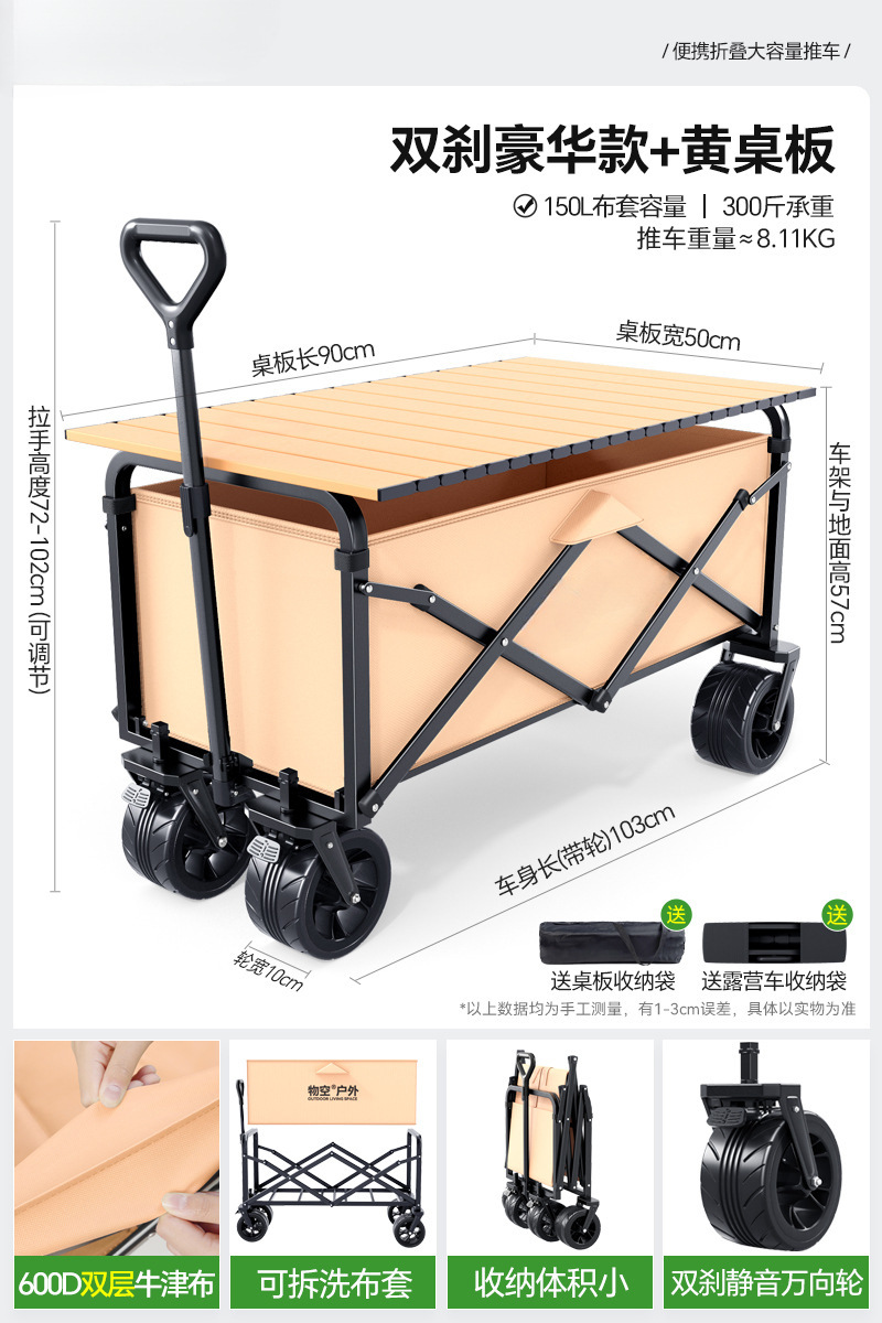 • 플래그십 모델 - 캠핑 세트 [비행기 바퀴/고운 모래 노란색] 슈퍼 올 스틸 바디 + 더블 브레이크 유니버설 휠 + 접이식 흑요석 블랙 테이블