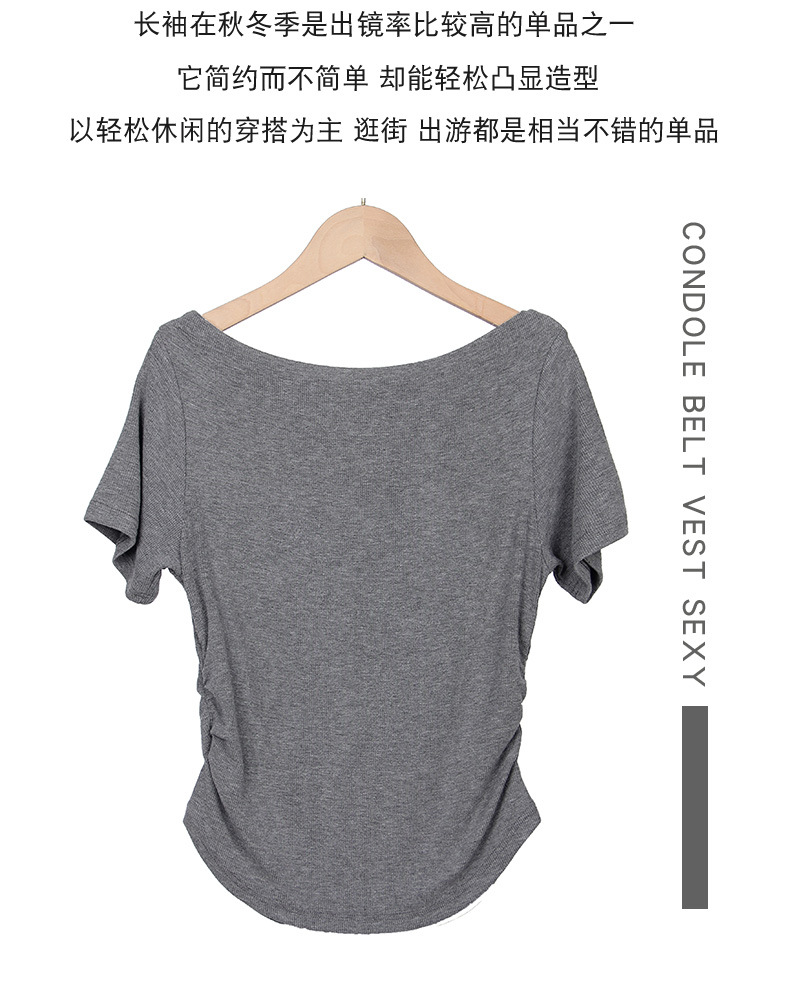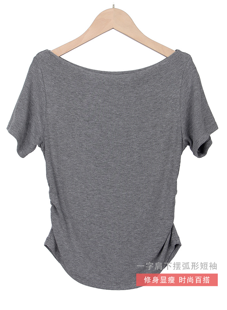 여성용 원 숄더 반팔 티셔츠 2025 새로운 스타일 하이 엔드 곡선 밑단 슬림 피트 허리 탑스토어 가기
