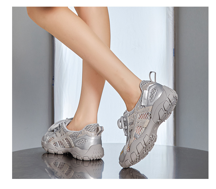 여성을위한 새로운 스포츠 포레스트 검프 신발 2025 여름 메쉬 통기성 두꺼운 밑창 신발 여성을위한 다목적 도덕 훈련 신발 캐주얼 아빠 신발스토어 가기