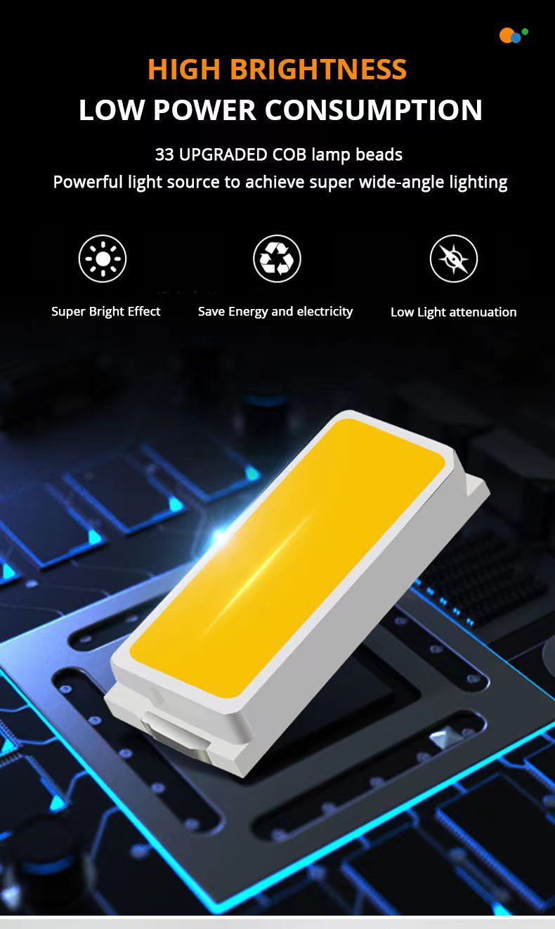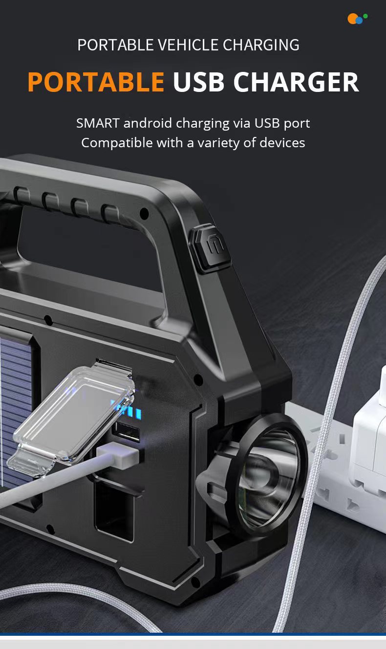 LED 태양 손전등 강한 빛 야외 충전 휴대용 다기능 cob 작업 조명 휴대용 탐조등