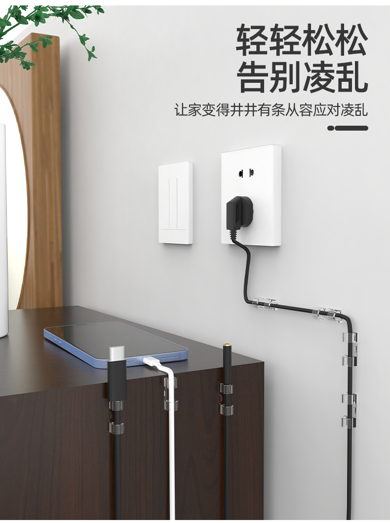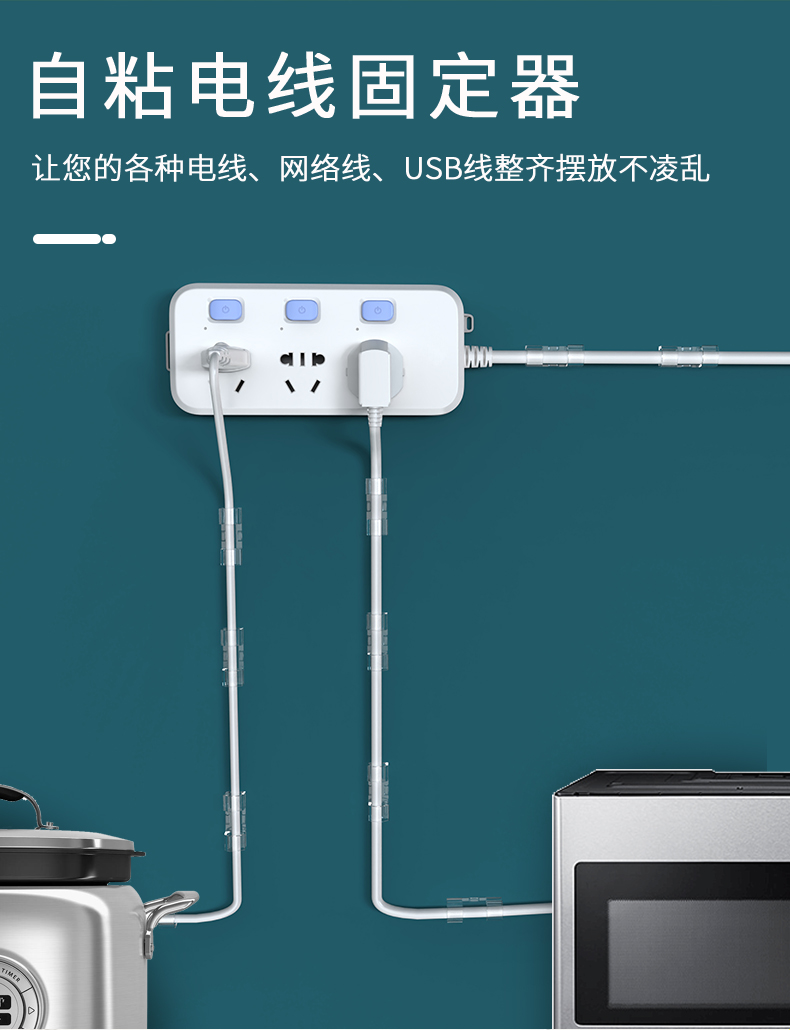 ⇖ 구멍을 뚫을 필요가 없는 전원 코드 홀더, 자체 접착식 버클, 전원 스트립 벽면 스티커, 플러그 및 전선 보관 및 관리
