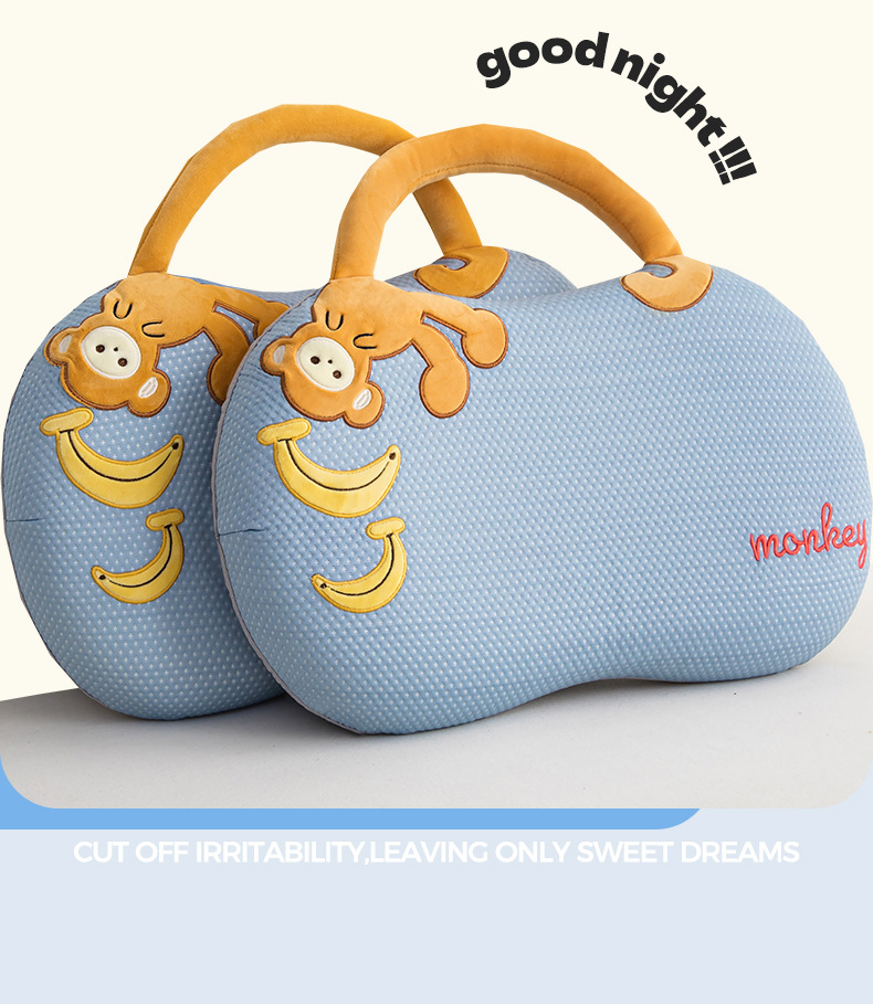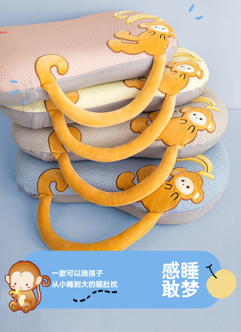 수면을 돕는 아이스 실크 메모리 폼 베개 코어, 유치원 편안한 베개, 만화 시원한 얼음 콩 고양이 배 베개, 탈착 가능