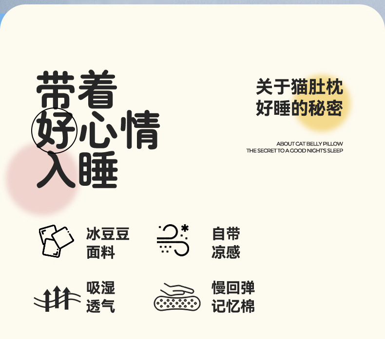 수면을 돕는 아이스 실크 메모리 폼 베개 코어, 유치원 편안한 베개, 만화 시원한 얼음 콩 고양이 배 베개, 탈착 가능스토어 가기