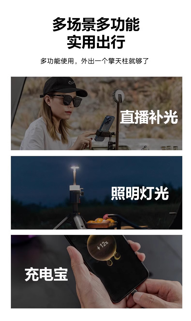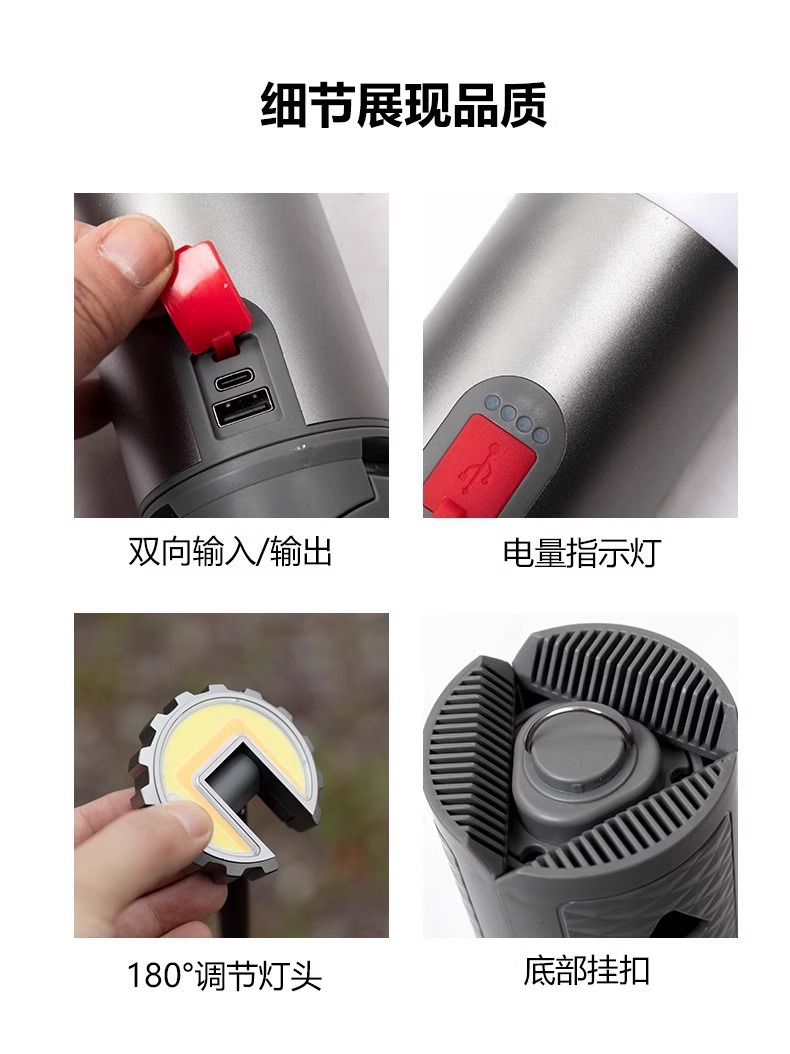 국경 간 새로운 휴대용 캠핑 램프 다기능 야외 알루미늄 합금 개폐식 브래킷 긴 배터리 수명 작업을위한 분위기 램프