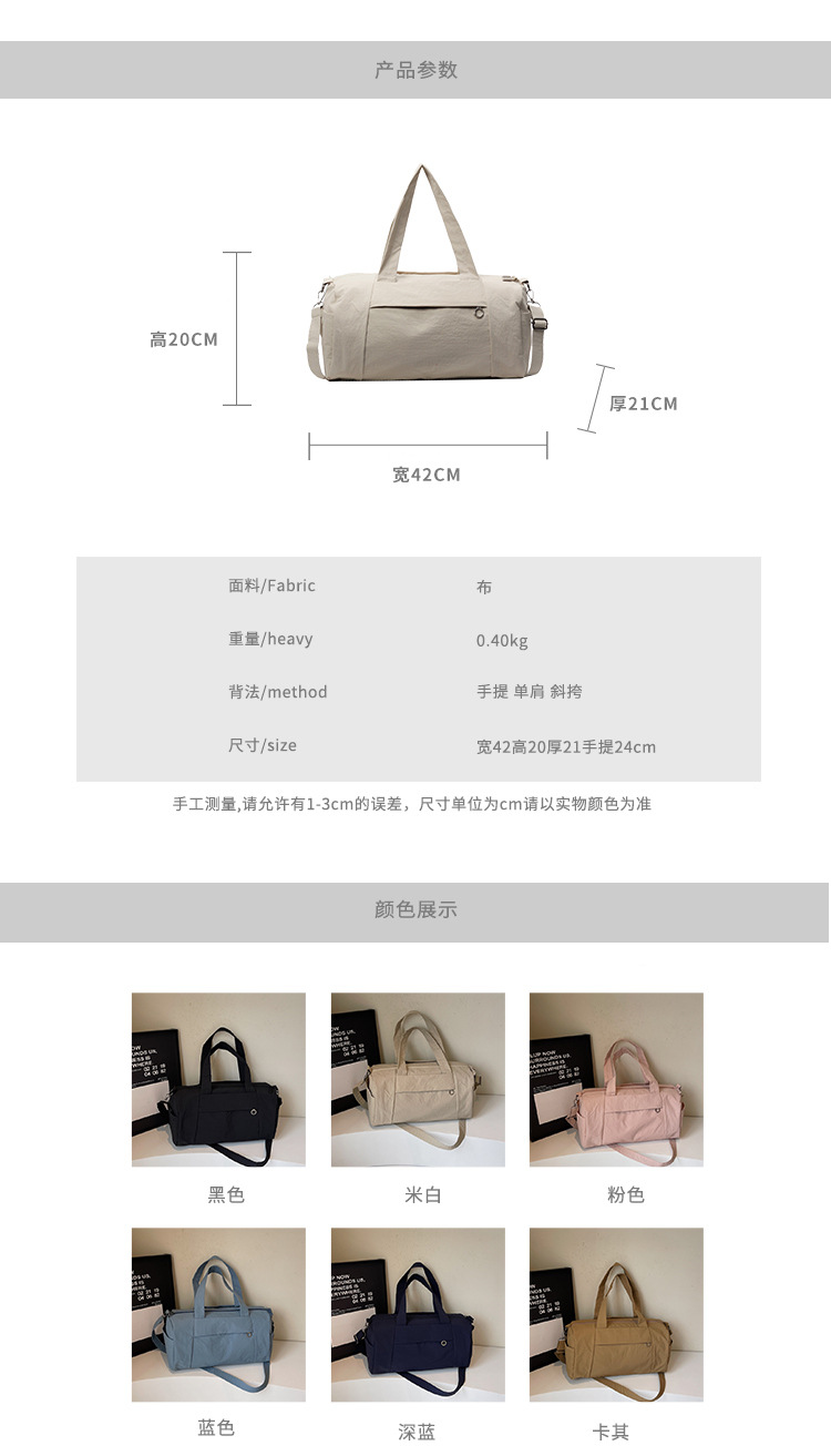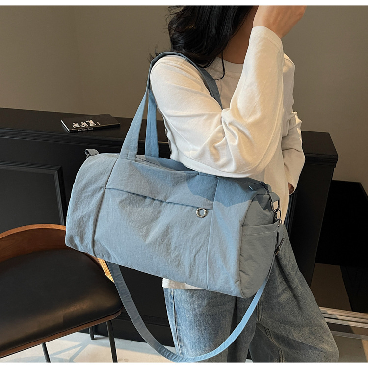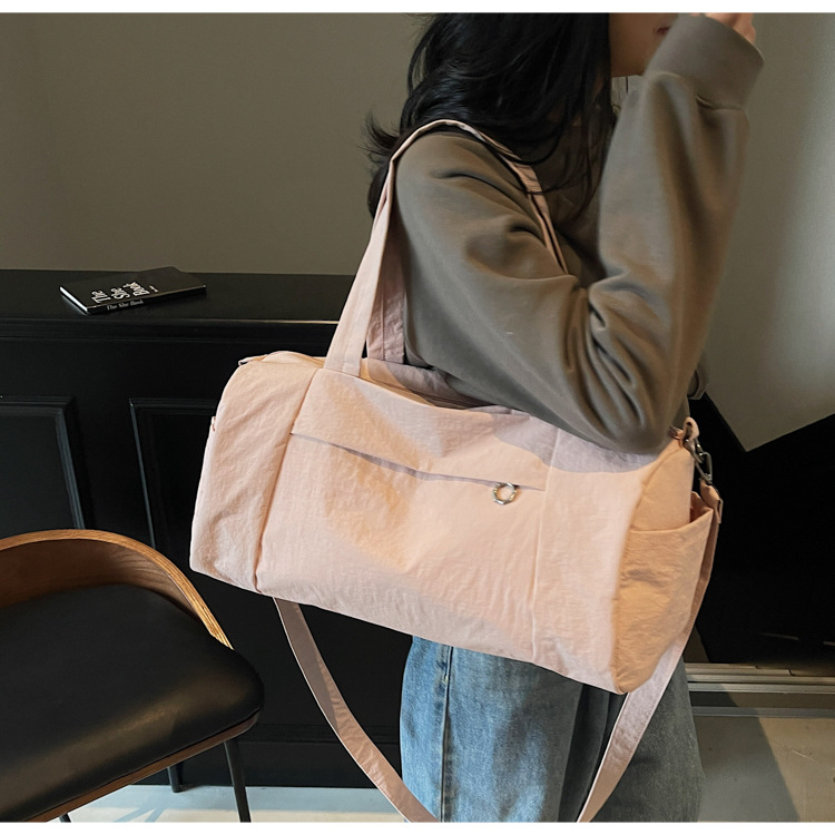 한국 캐주얼 피트니스 가방 보스턴 숄더 크로스 바디 통근 가방 여성을위한 세련된 경량 단순 대용량 여행 가방