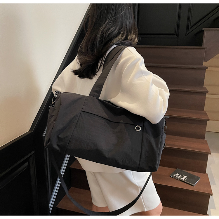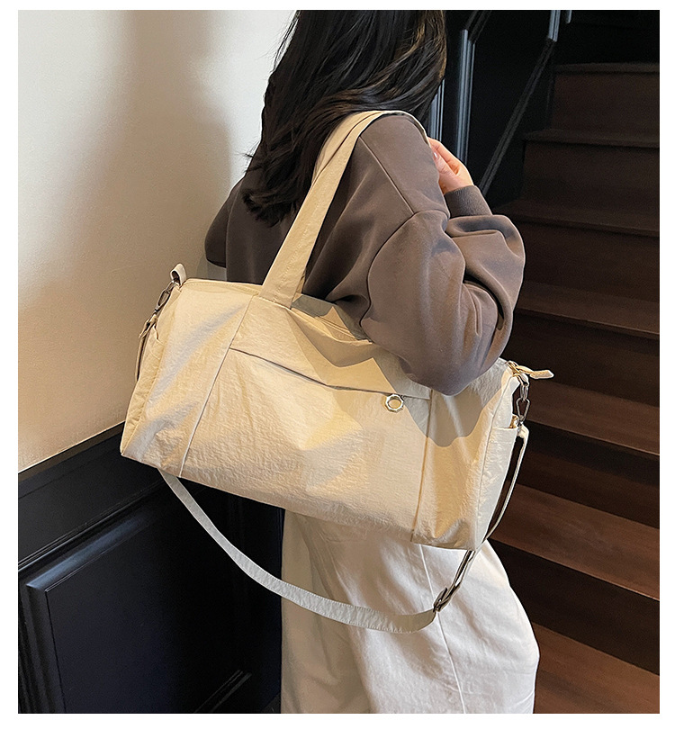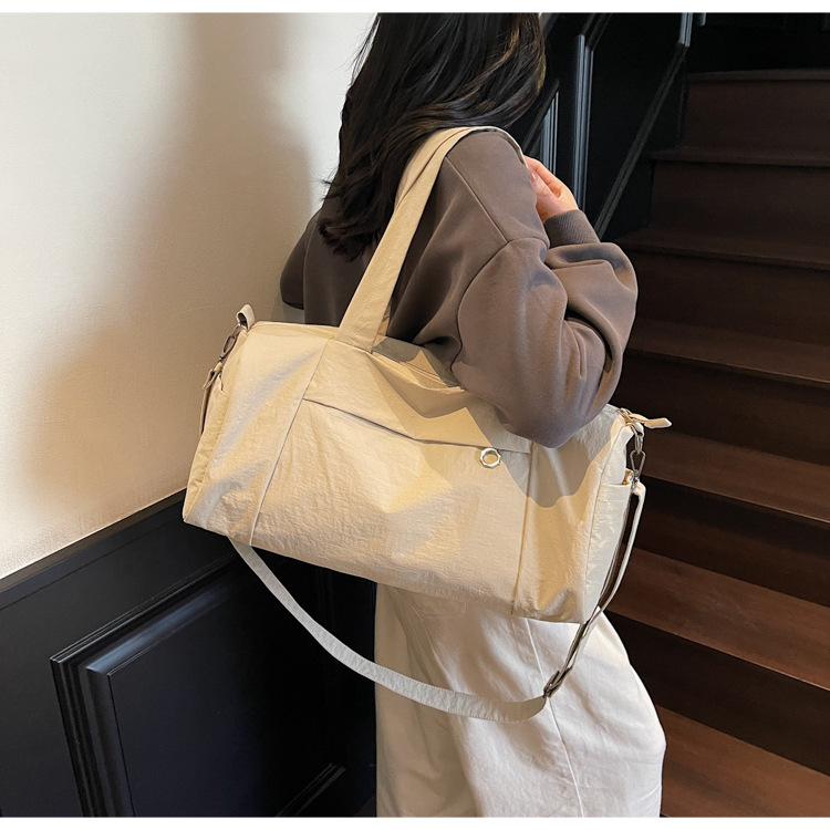 한국 캐주얼 피트니스 가방 보스턴 숄더 크로스 바디 통근 가방 여성을위한 세련된 경량 단순 대용량 여행 가방스토어 가기