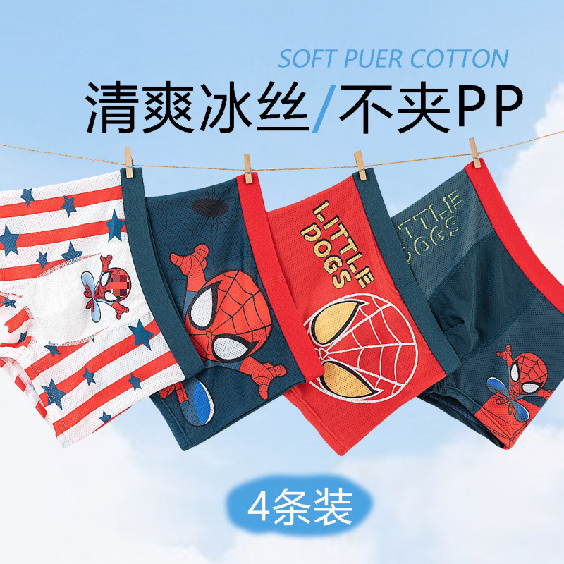 소년 스파이더 맨 속옷 얼음 실크 통기성 만화 어린이 복서 어린이 아기 복서 반바지 소년 잘 생긴스토어 가기