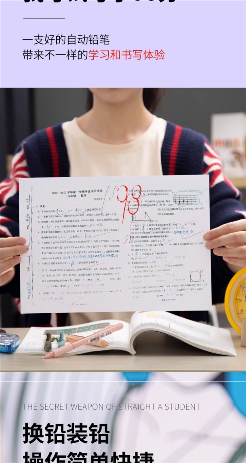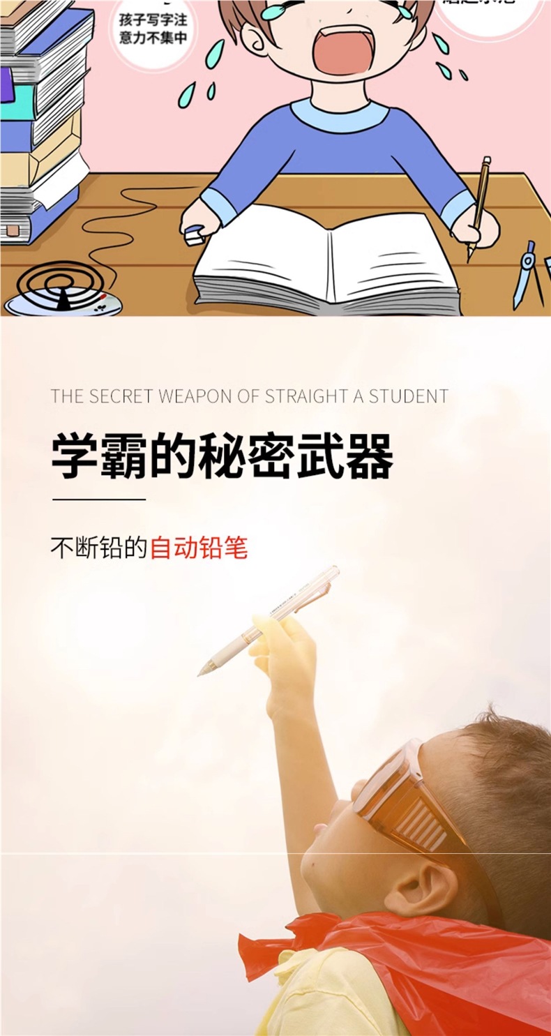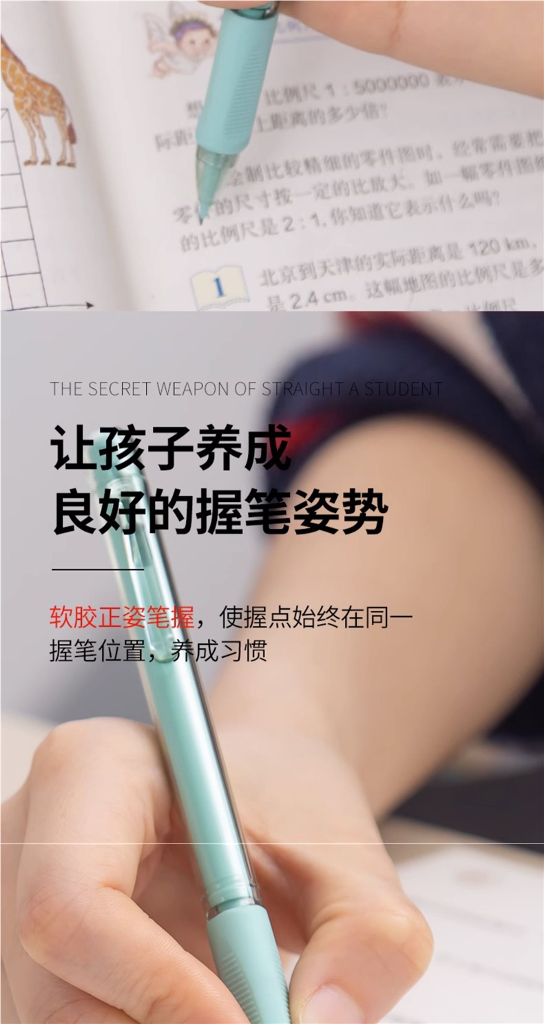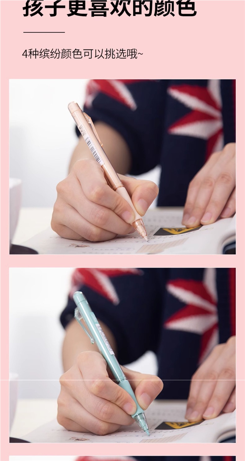 초등학생용 샤프펜슬 0.7 연속심 자동펜 0.5 심으로 그립 자세 교정 귀여운 남아, 여아용 하이룩