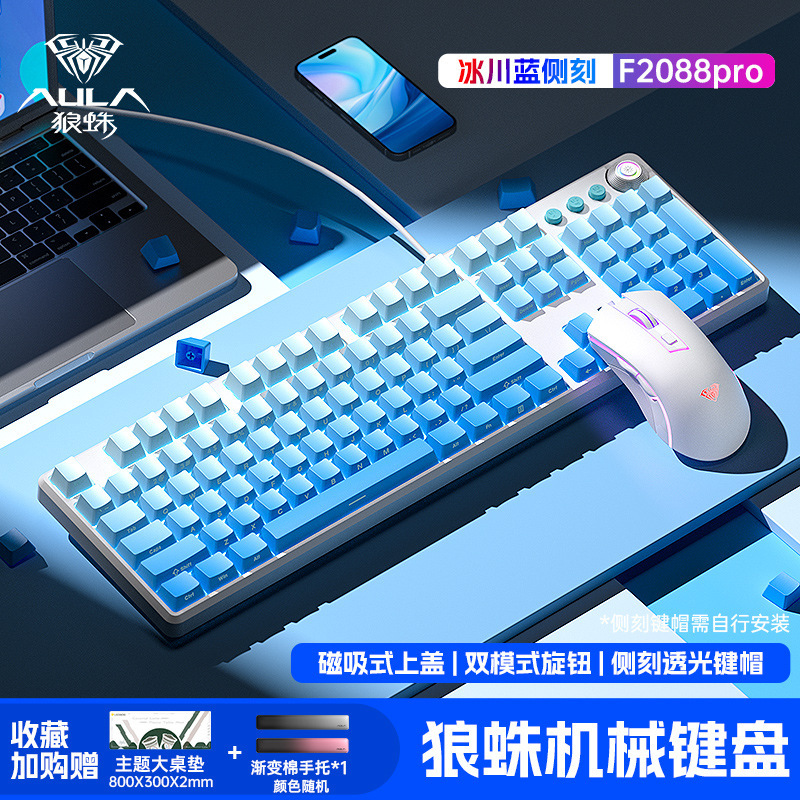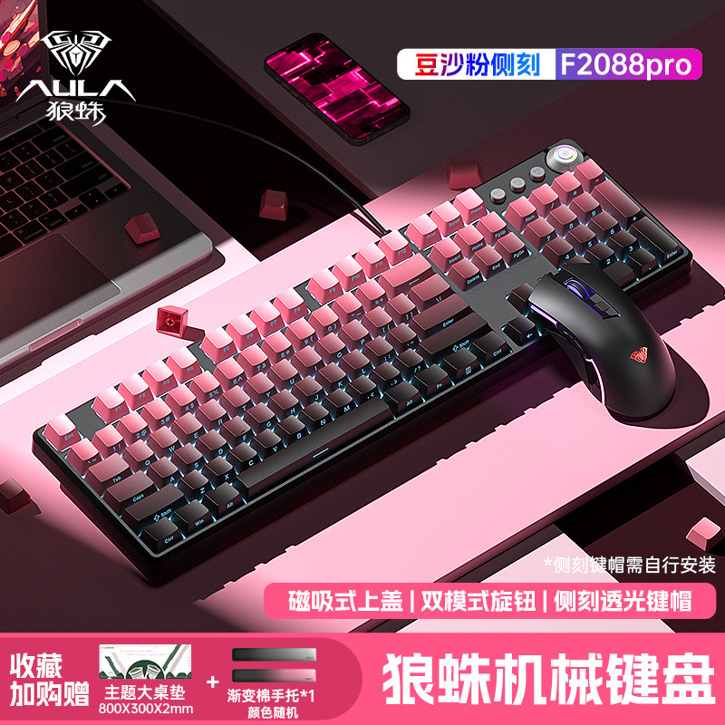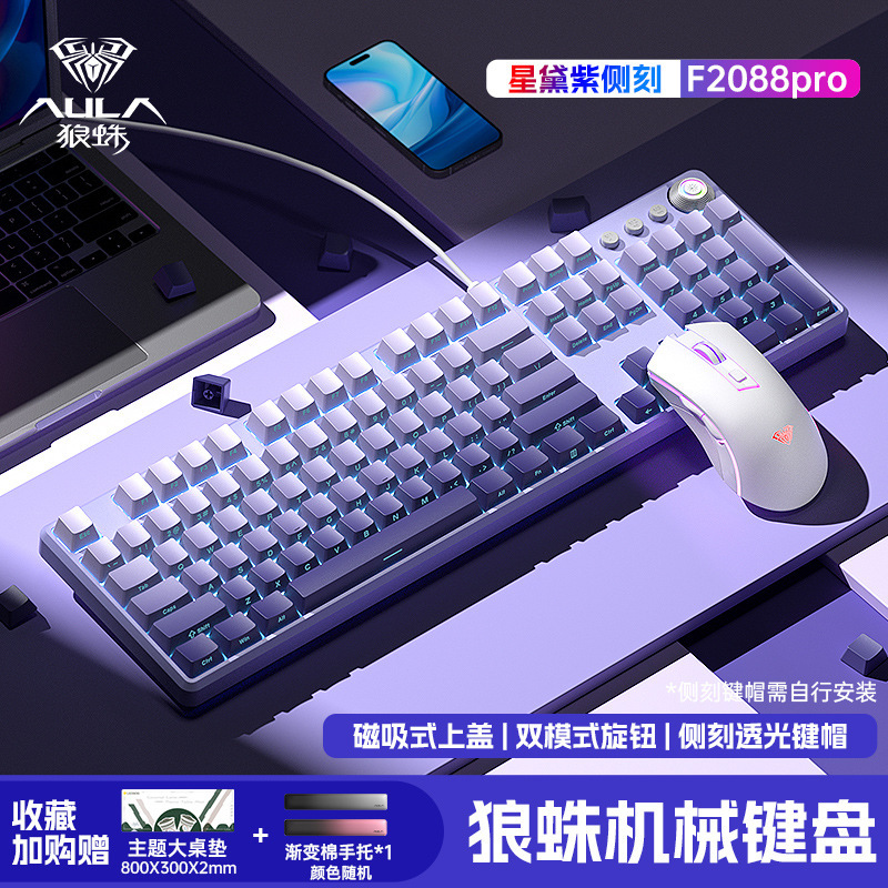 Wolf Spider 기계식 키보드 측면 각인 키 e-스포츠 게임 사무실 데스크탑 컴퓨터 마우스 세트