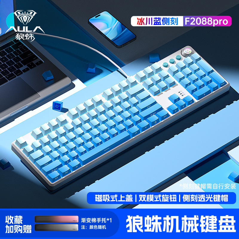 • 녹색 축 - [글레이셔 블루] 측면 각인 그라데이션 키보드 및 마우스 세트 - 무료 대형 마우스 패드 + 손 받침대 - 공식 표준