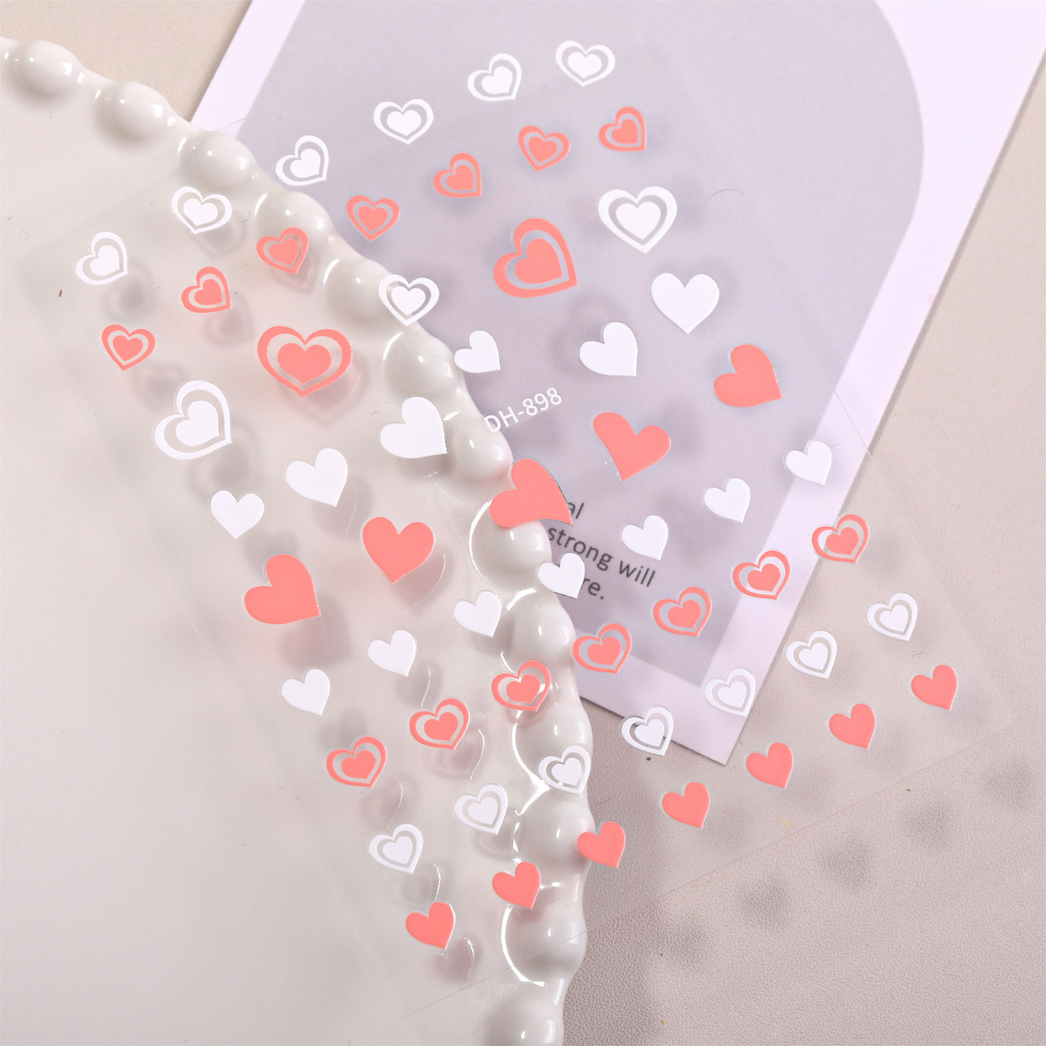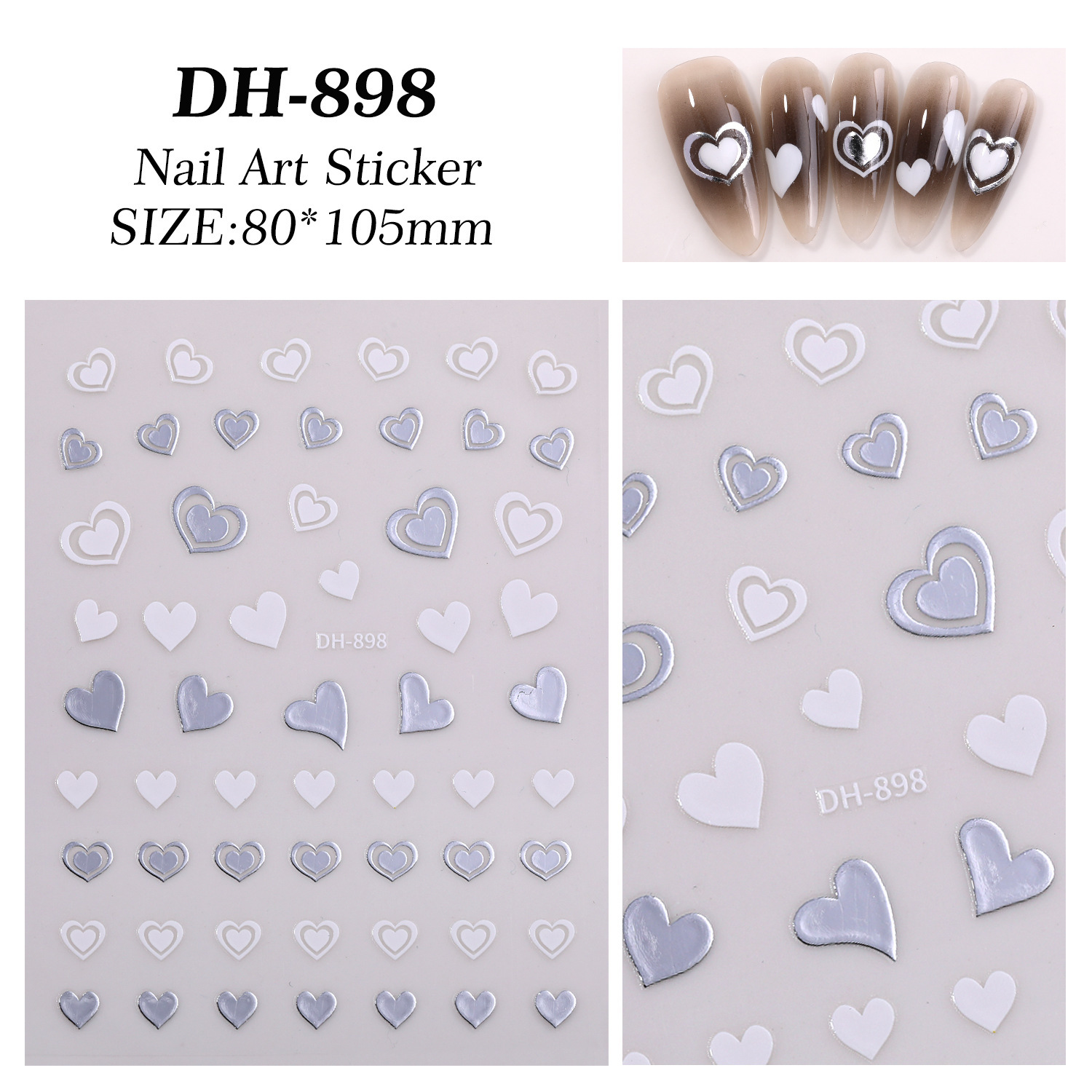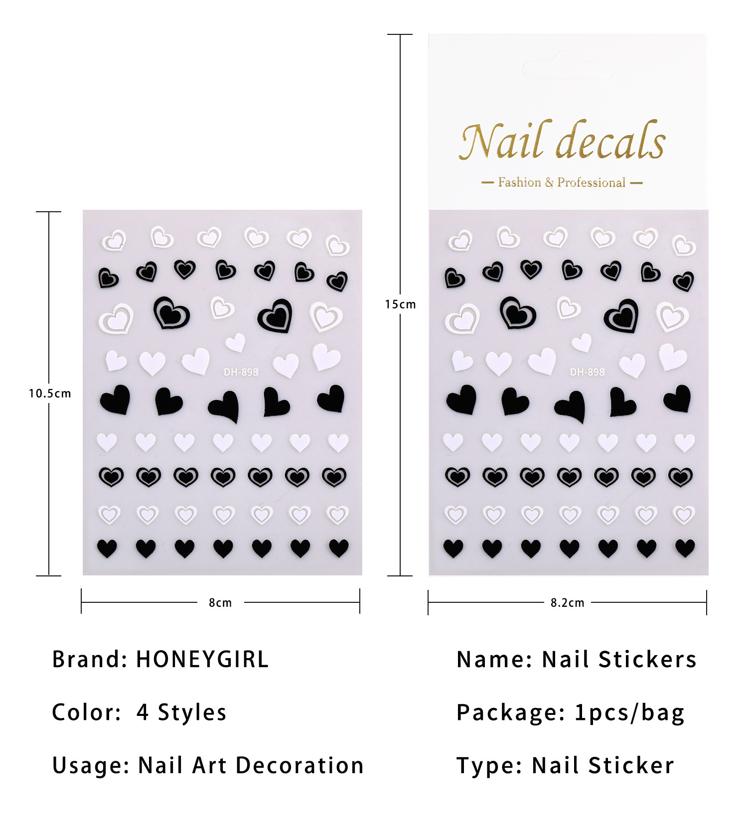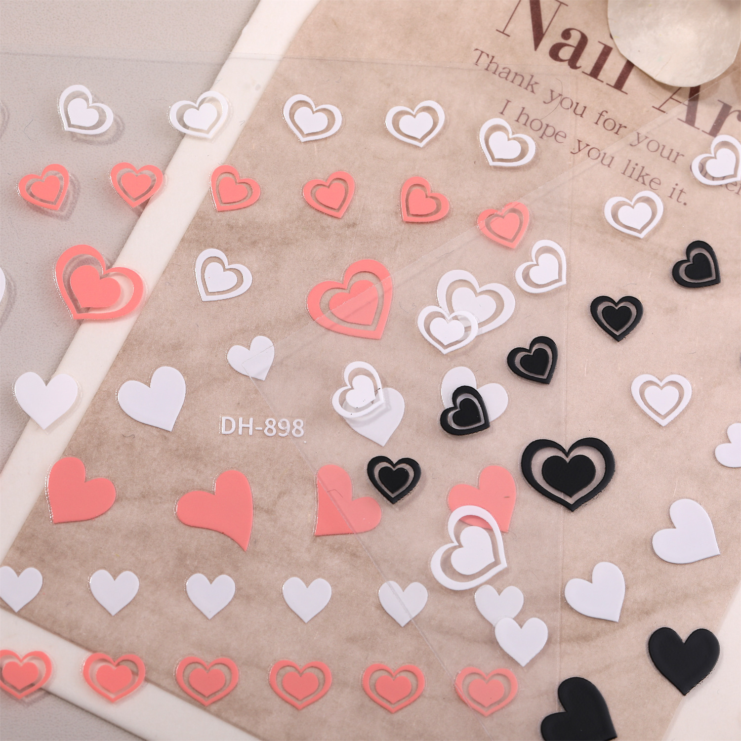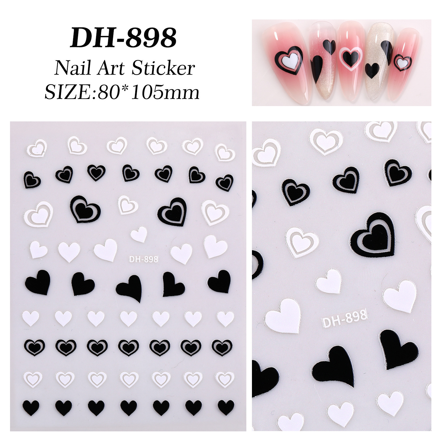 달콤하고 시원한 중공 사랑 네일 스티커 접착제 뒷면이있는 평면 흑백 중공 사랑 네일 아트 스티커 쥬얼리 DH898