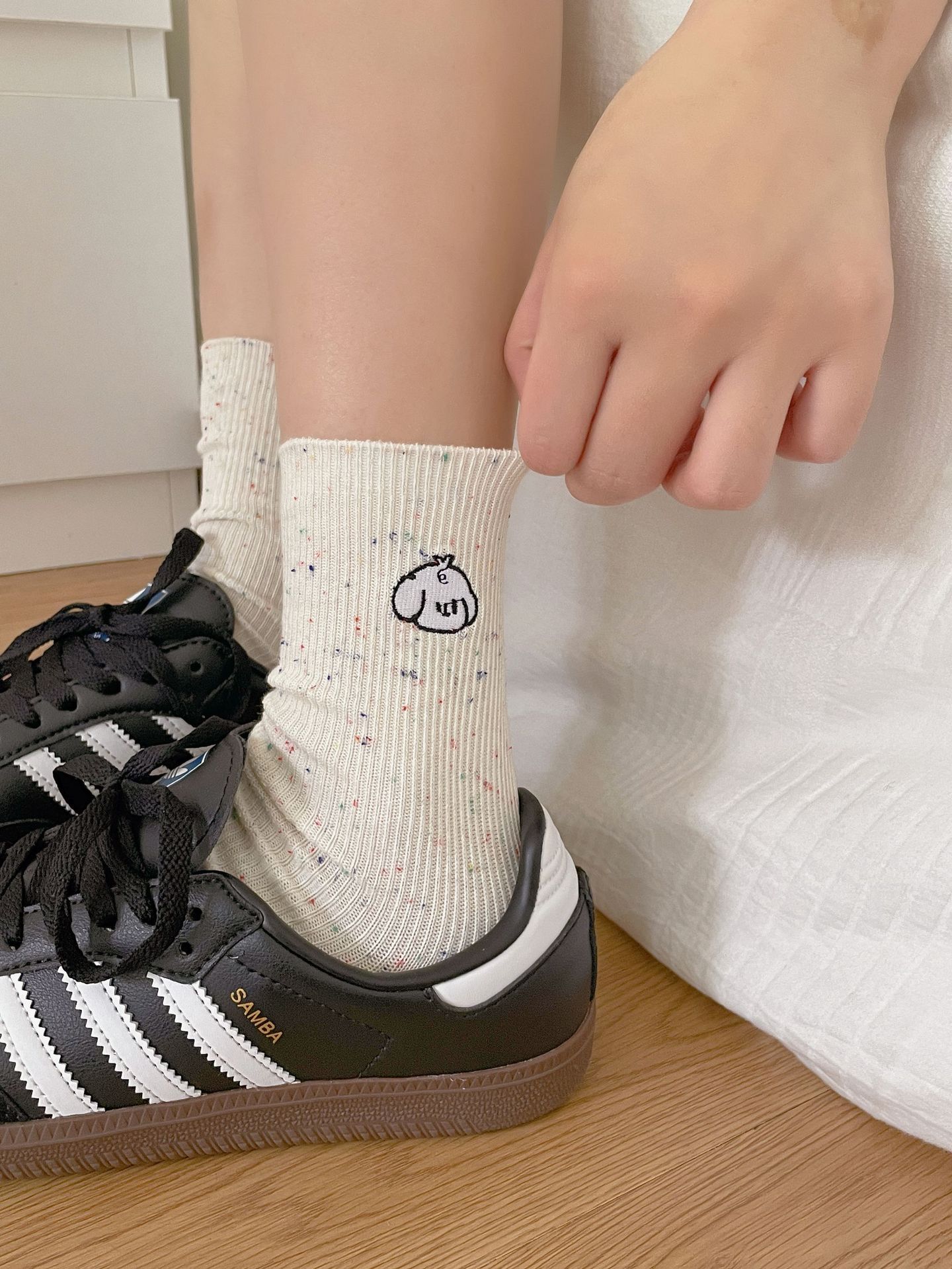 한국 아이디어 원사 봄과 여름 강아지 자수 귀여운 양말 남성과 여성 만화 중간 튜브 양말 푹신한 양말 여성 맞춤형면 양말스토어 가기