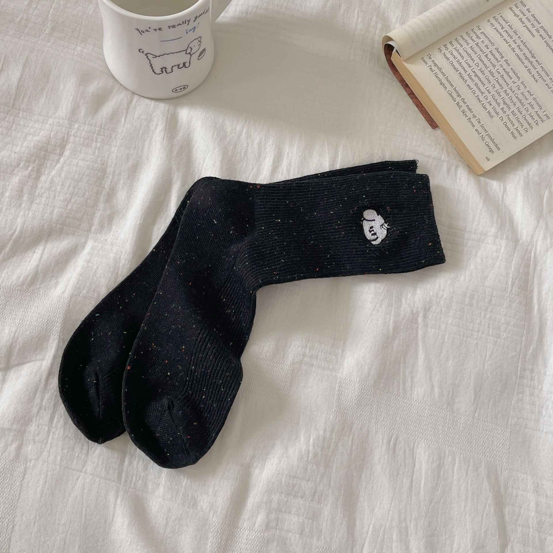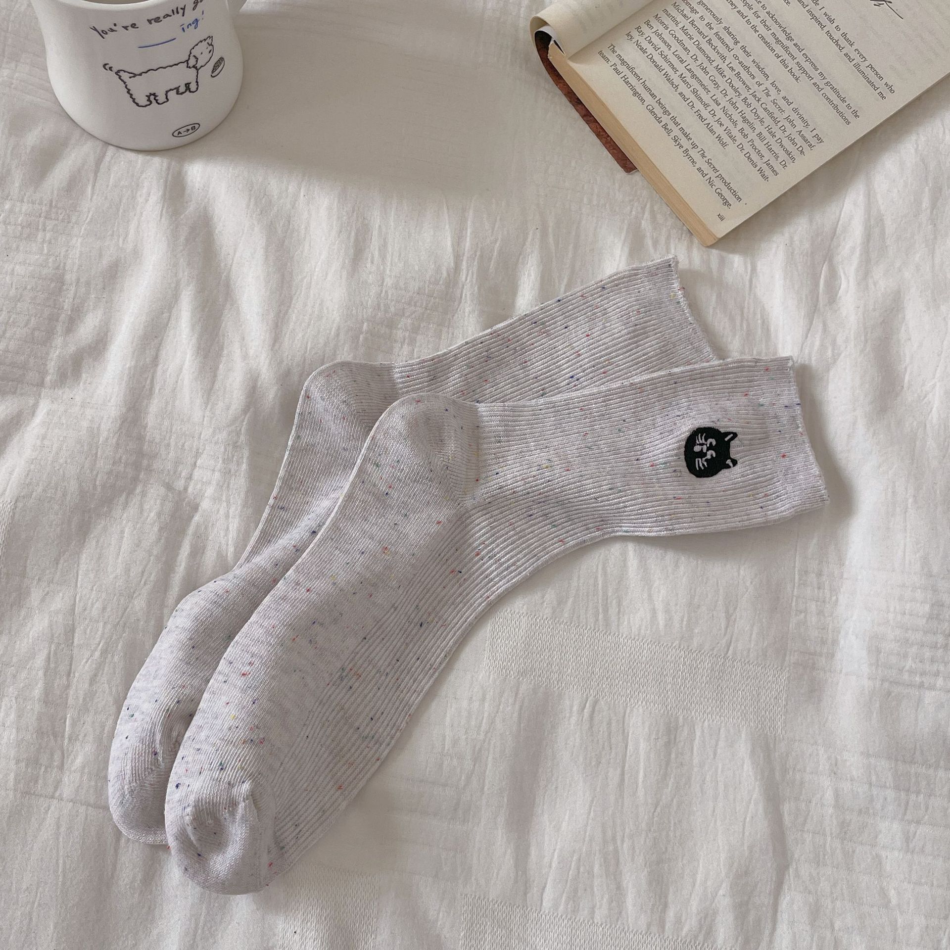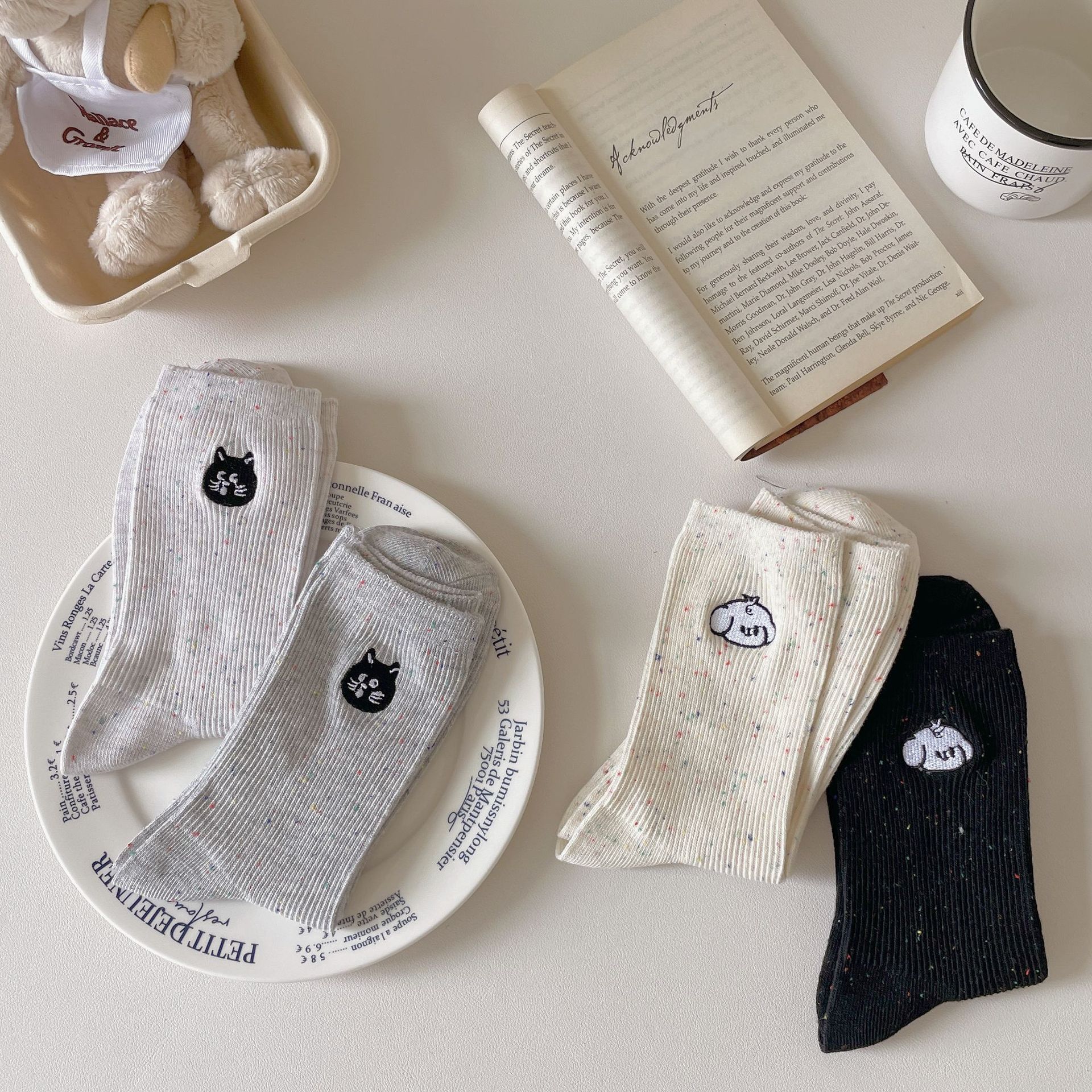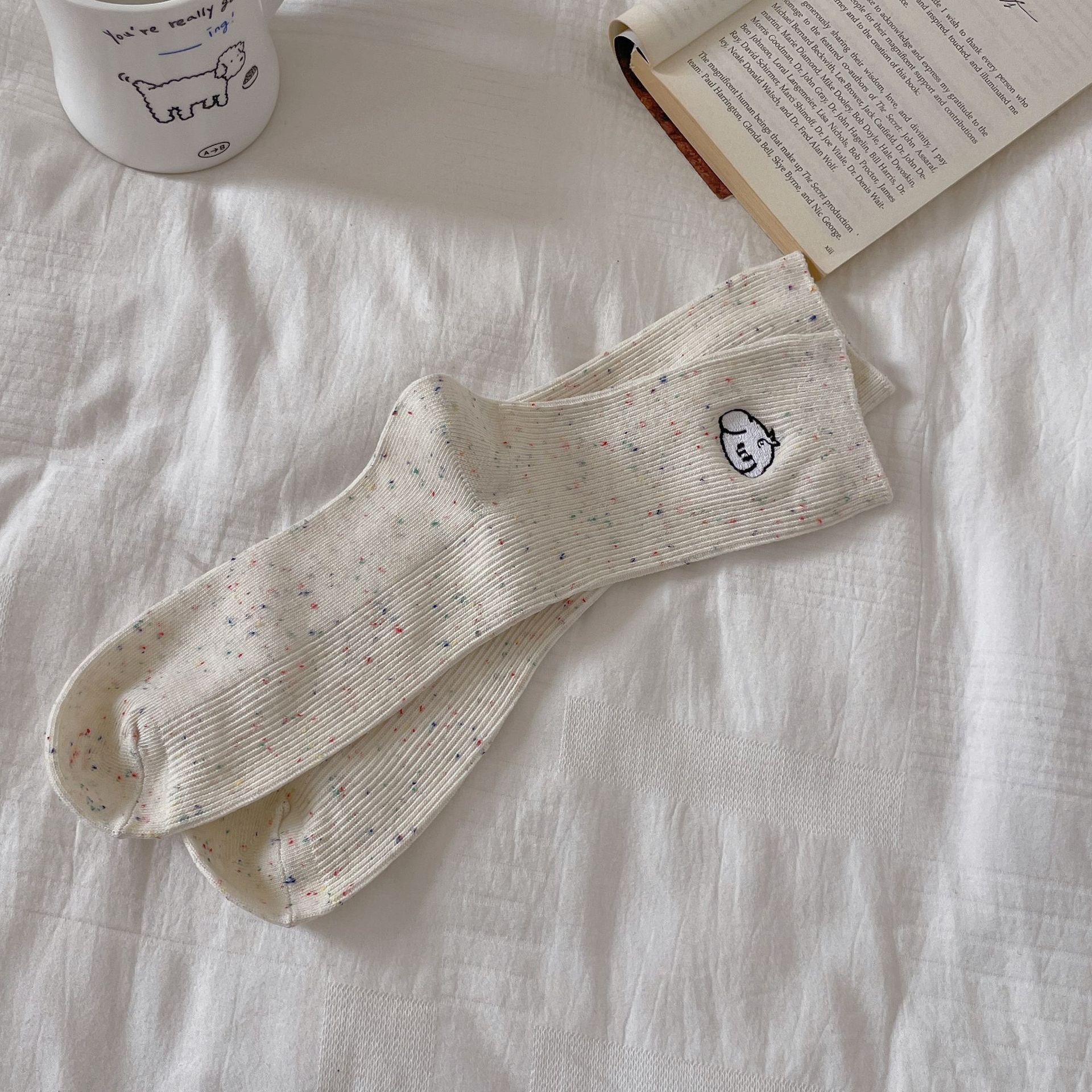 한국 아이디어 원사 봄과 여름 강아지 자수 귀여운 양말 남성과 여성 만화 중간 튜브 양말 푹신한 양말 여성 맞춤형면 양말
