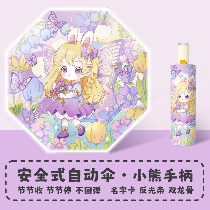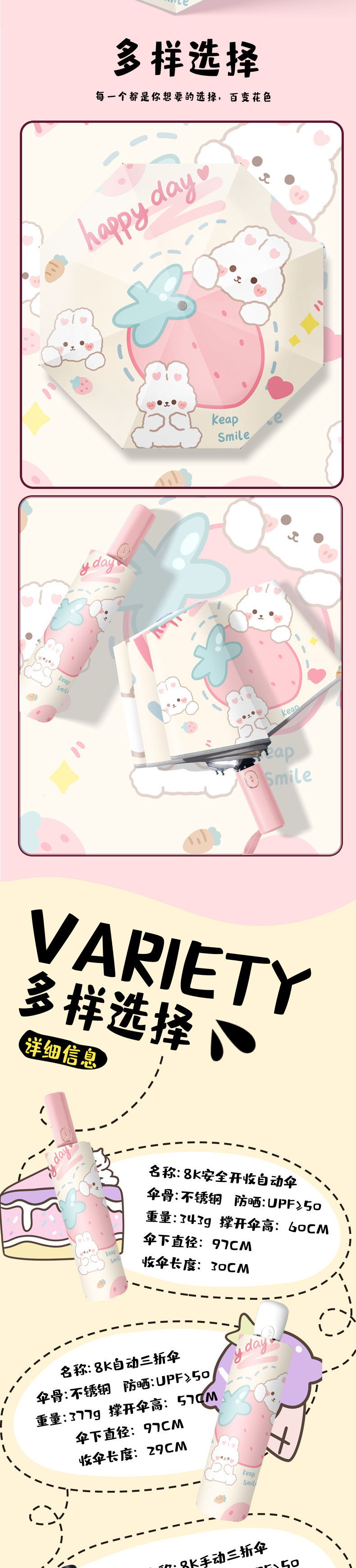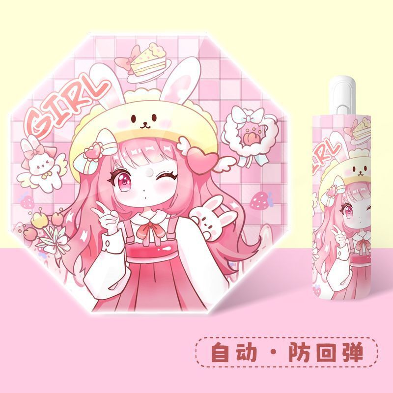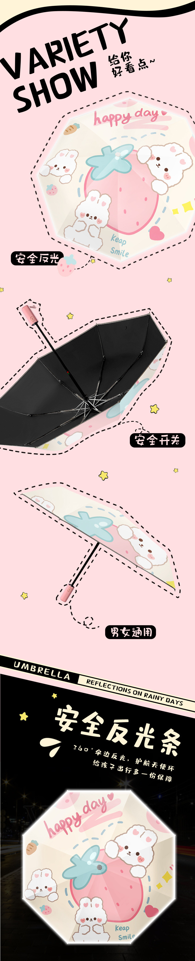 딸기 토끼 안전 자동 반동 방지 어린이 우산 소녀 학교 특수 우산 비 또는 빛 강한 접는 우산스토어 가기