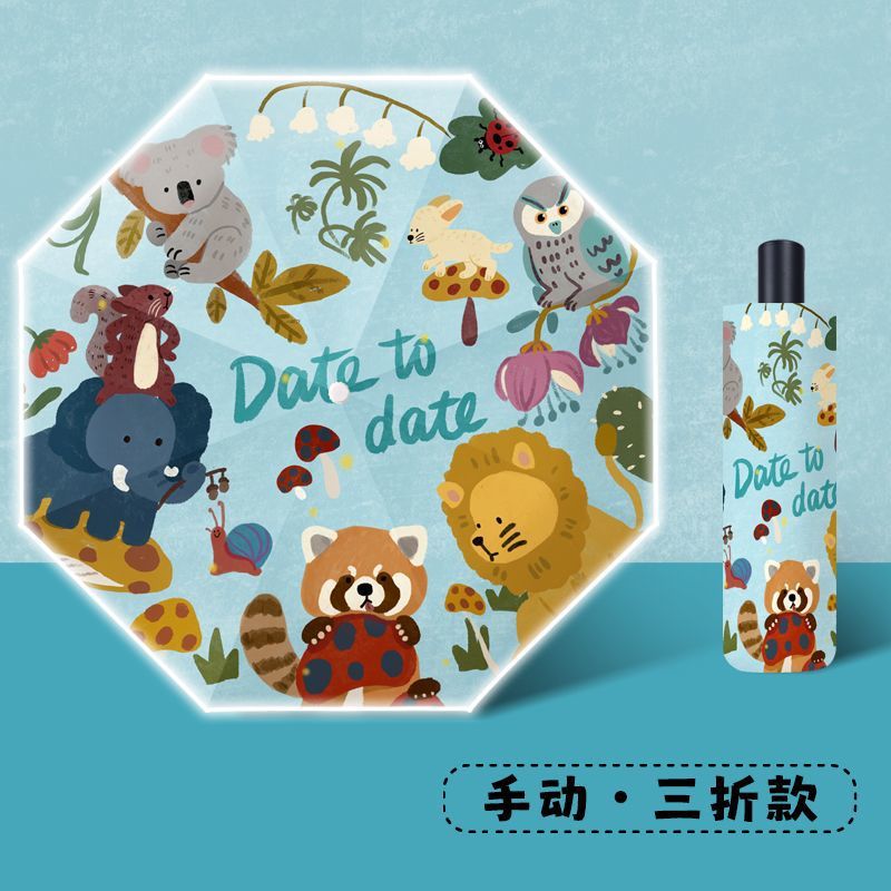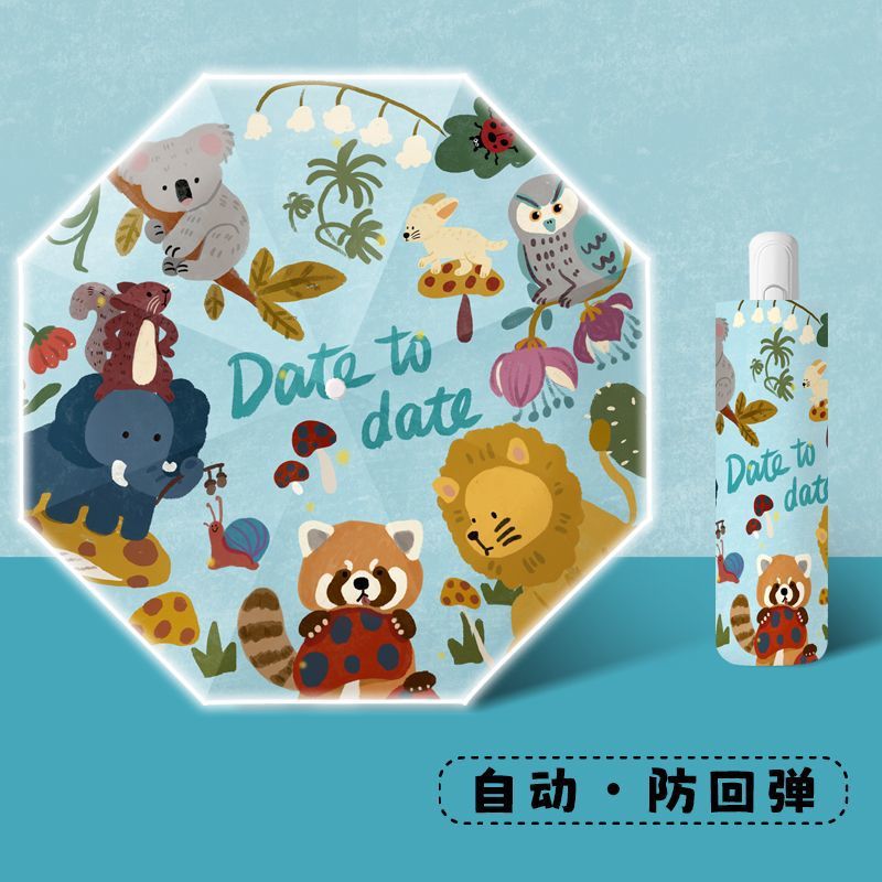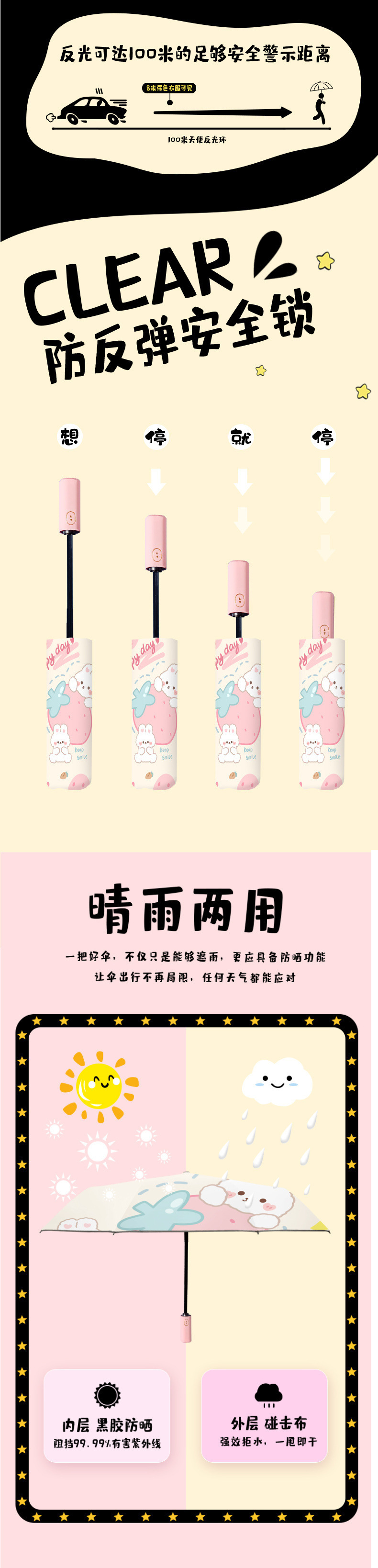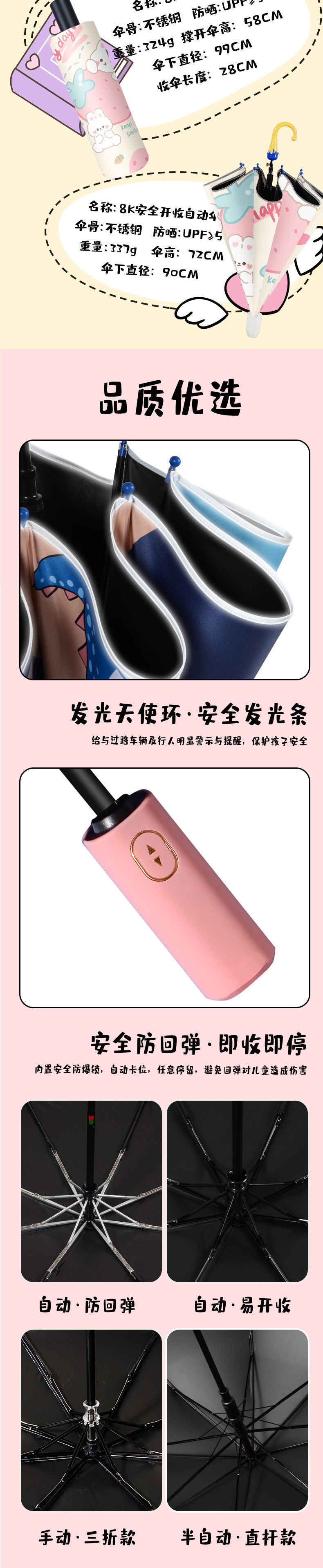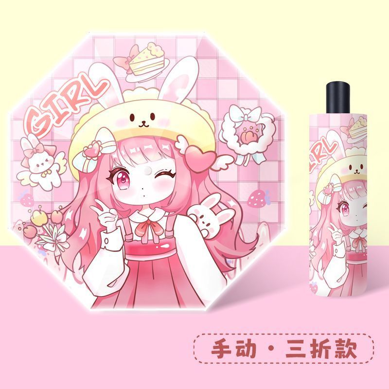 딸기 토끼 안전 자동 반동 방지 어린이 우산 소녀 학교 특수 우산 비 또는 빛 강한 접는 우산스토어 가기