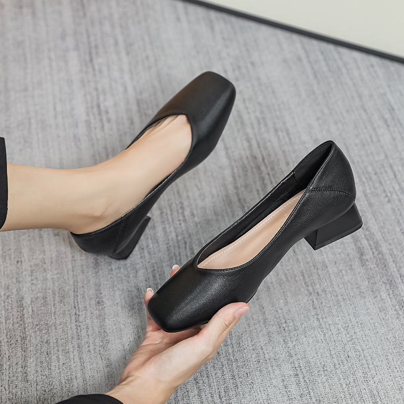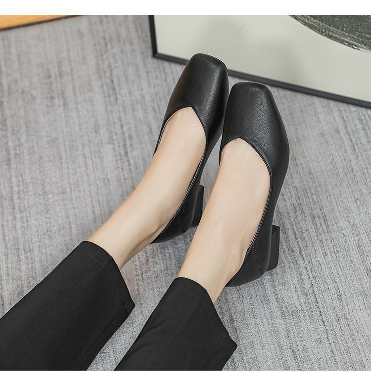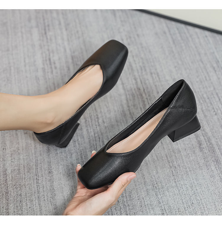 [3372명이 즐겨찾는] 여성용 스퀘어토 싱글슈즈, 두꺼운 굽, 천연가죽, 전문적인 기질, 스튜어디스 워크슈즈, 장시간 서 있어도 편안함스토어 가기