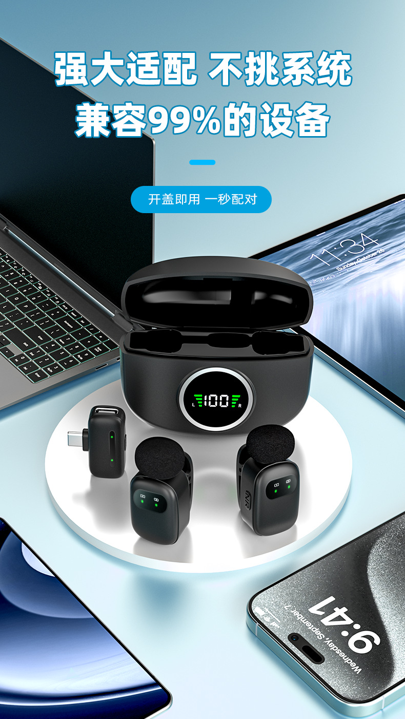 국경 간 새로운 개인 모델 미니 디지털 디스플레이 무선 라발리에 마이크 가변 사운드 직접 소음 감소 라이브 방송 마이크스토어 가기
