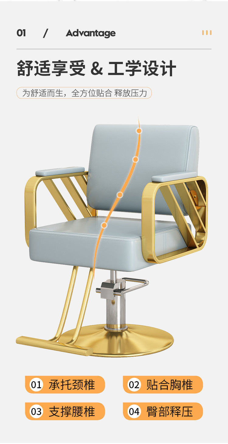 미용실용 이발소 의자, 특수 접이식 미용 의자, 헤어 커팅 의자, 인터넷 연예인 트렌디 스토어, 고급 파마, 염색, 면도 리프팅 의자스토어 가기