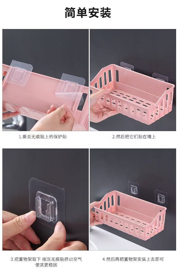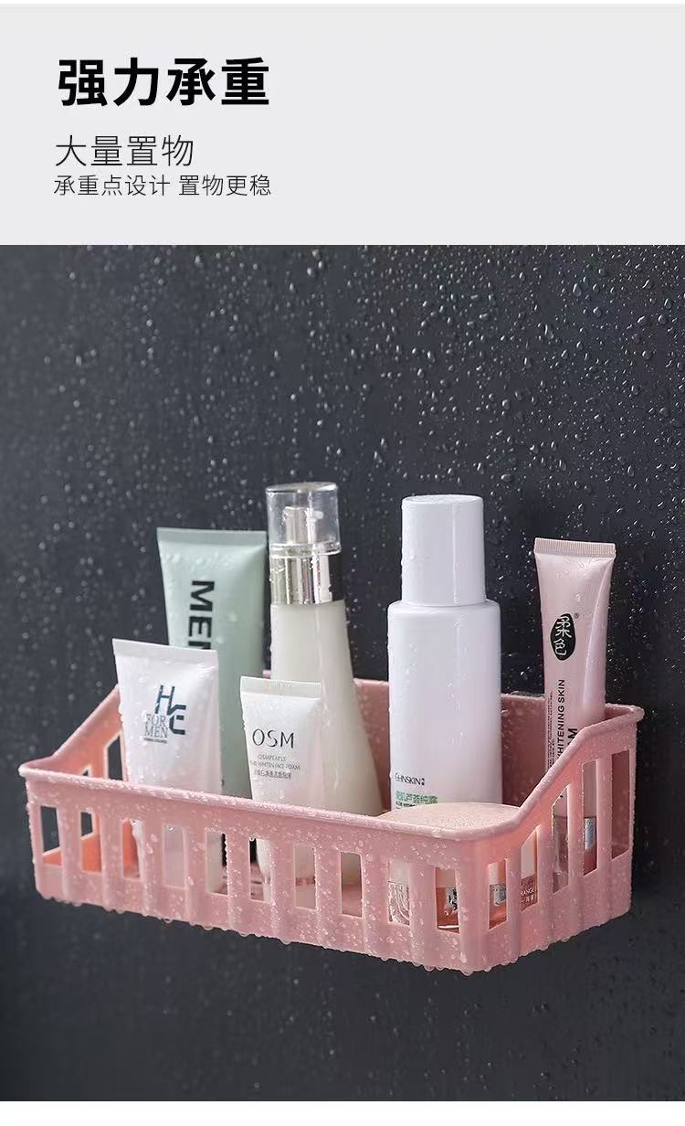 구멍이 없는 욕실 보관 바구니, 흔적 없는 욕실 보관 바구니, 세면도구 보관 랙, 벽걸이형 플라스틱 바구니