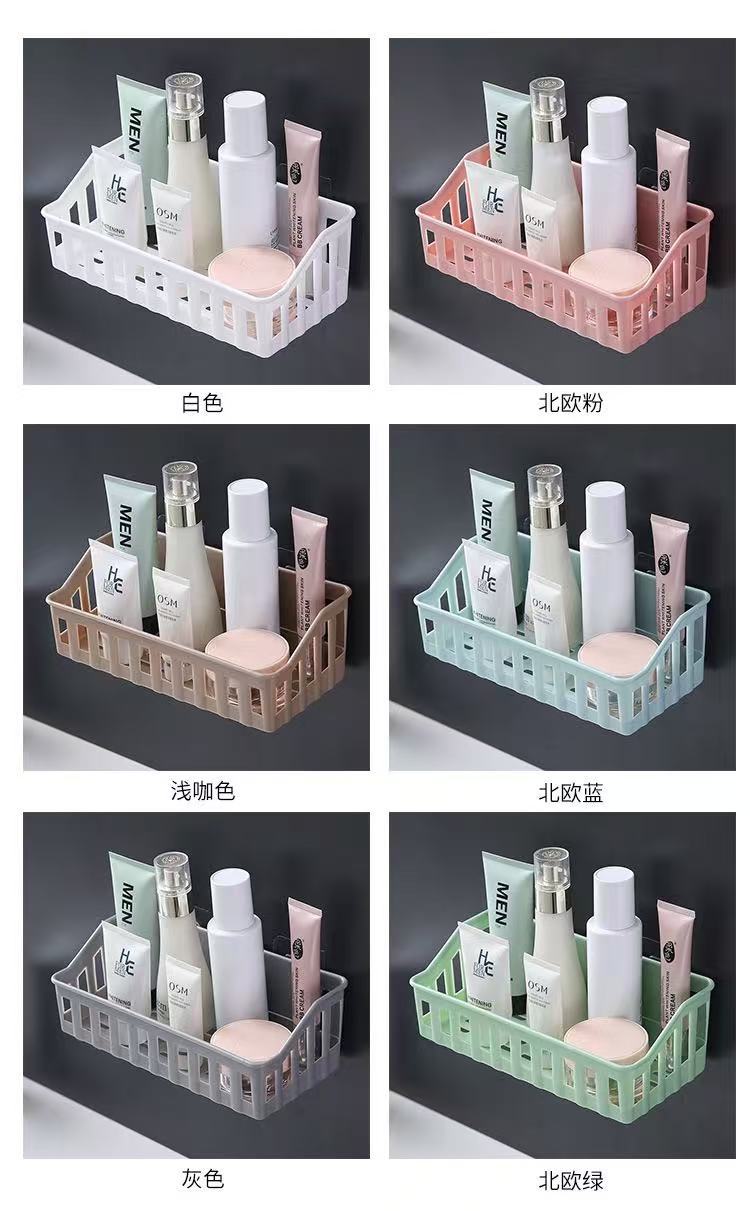 구멍이 없는 욕실 보관 바구니, 흔적 없는 욕실 보관 바구니, 세면도구 보관 랙, 벽걸이형 플라스틱 바구니스토어 가기