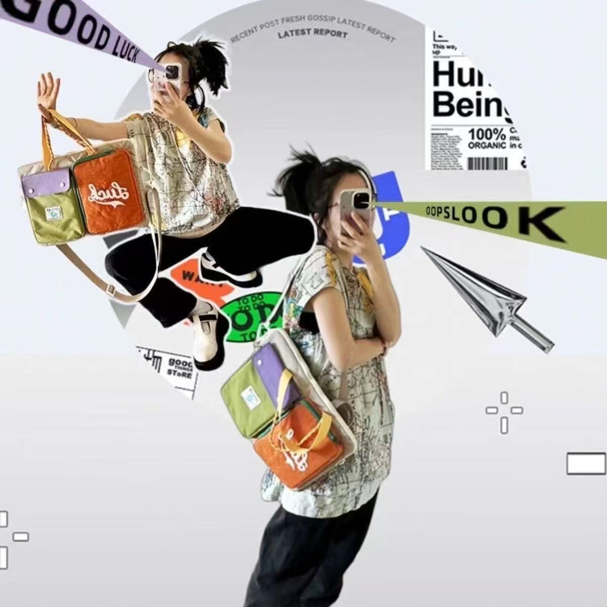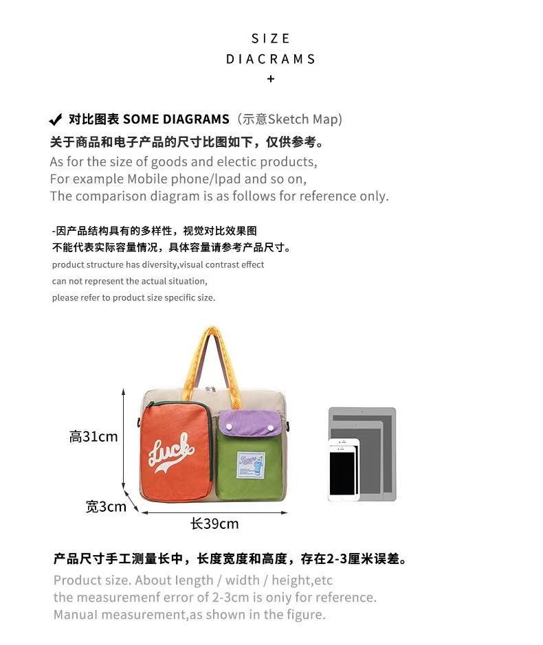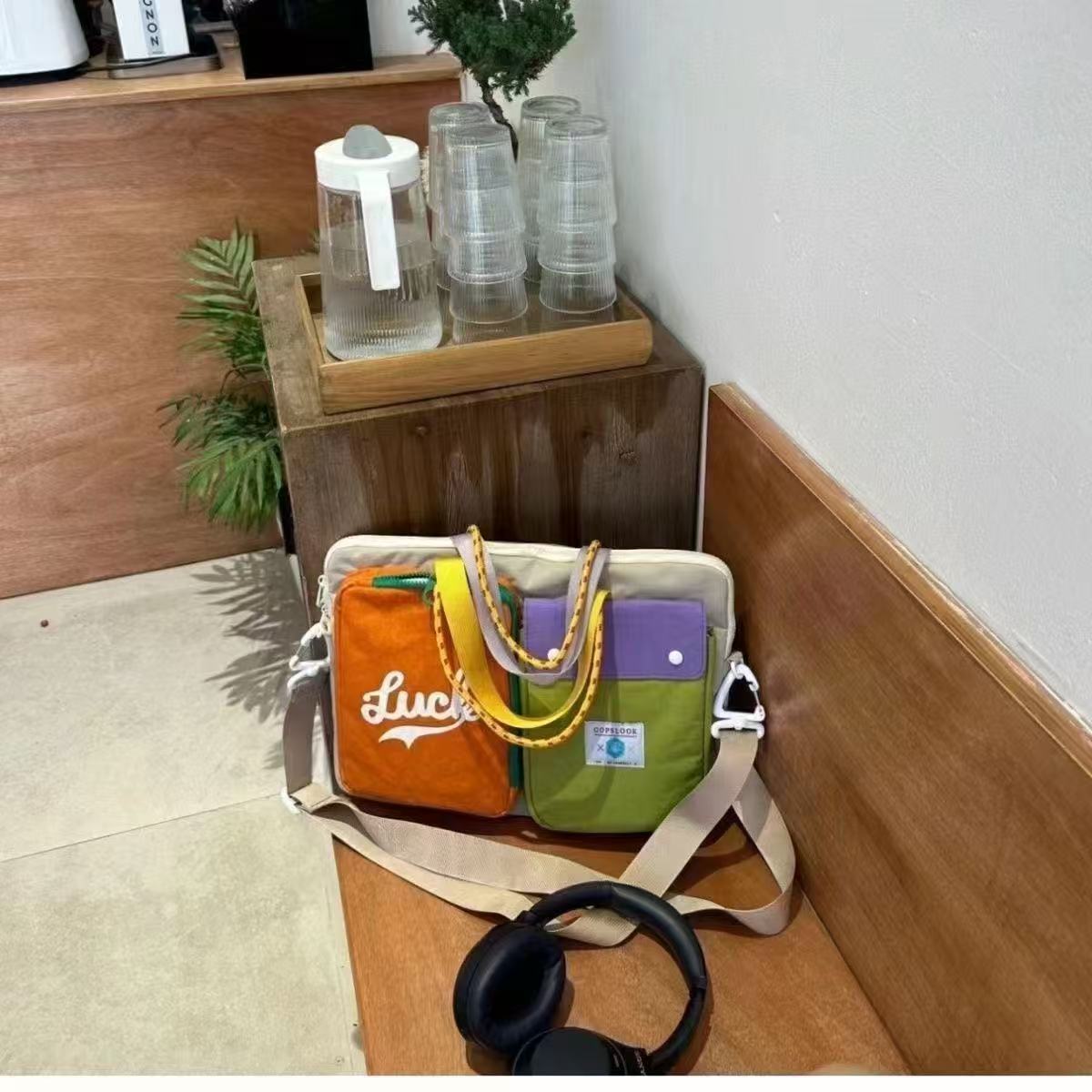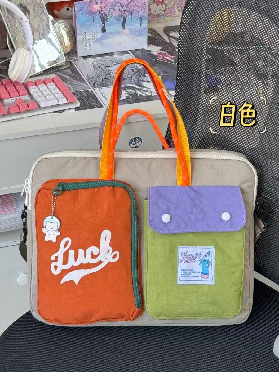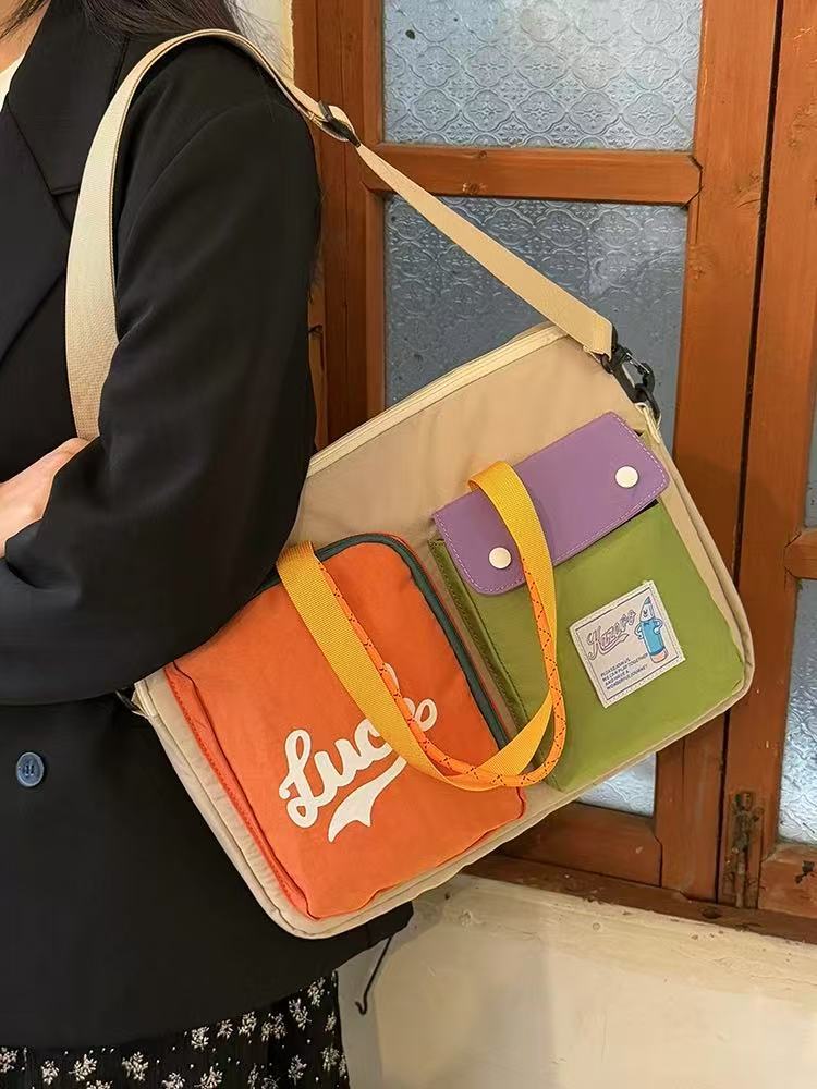 일본 도파민 컬러 매칭 크로스 바디 백 대용량 16 인치 이중 목적 컴퓨터 가방 통근 휴대용 어깨 태블릿 가방스토어 가기
