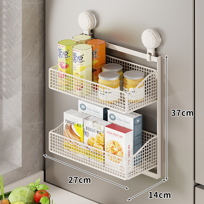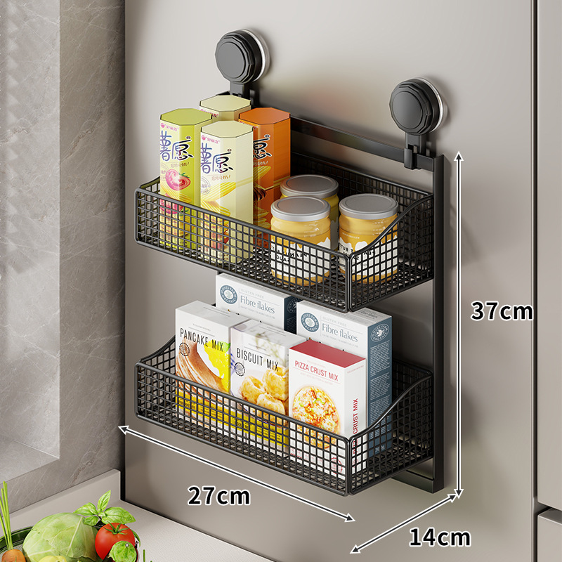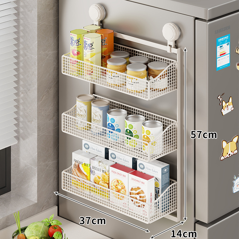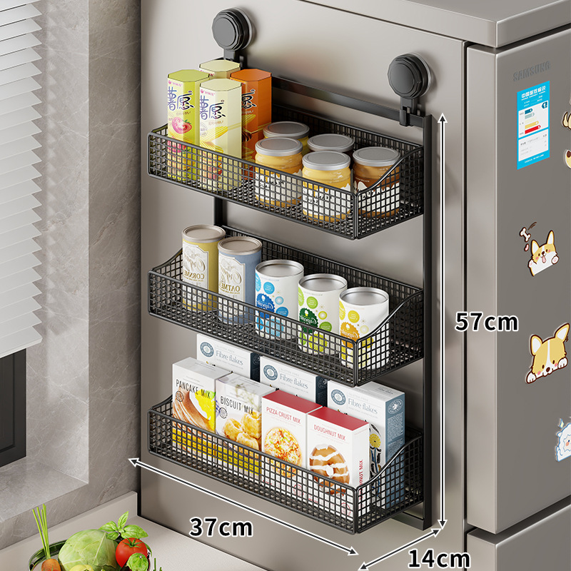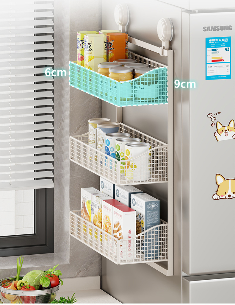 냉장고 선반 측면 수납 흡입 컵 주방 다기능 수납 선반 펀치없는 다층 벽걸이 형 조미료 선반