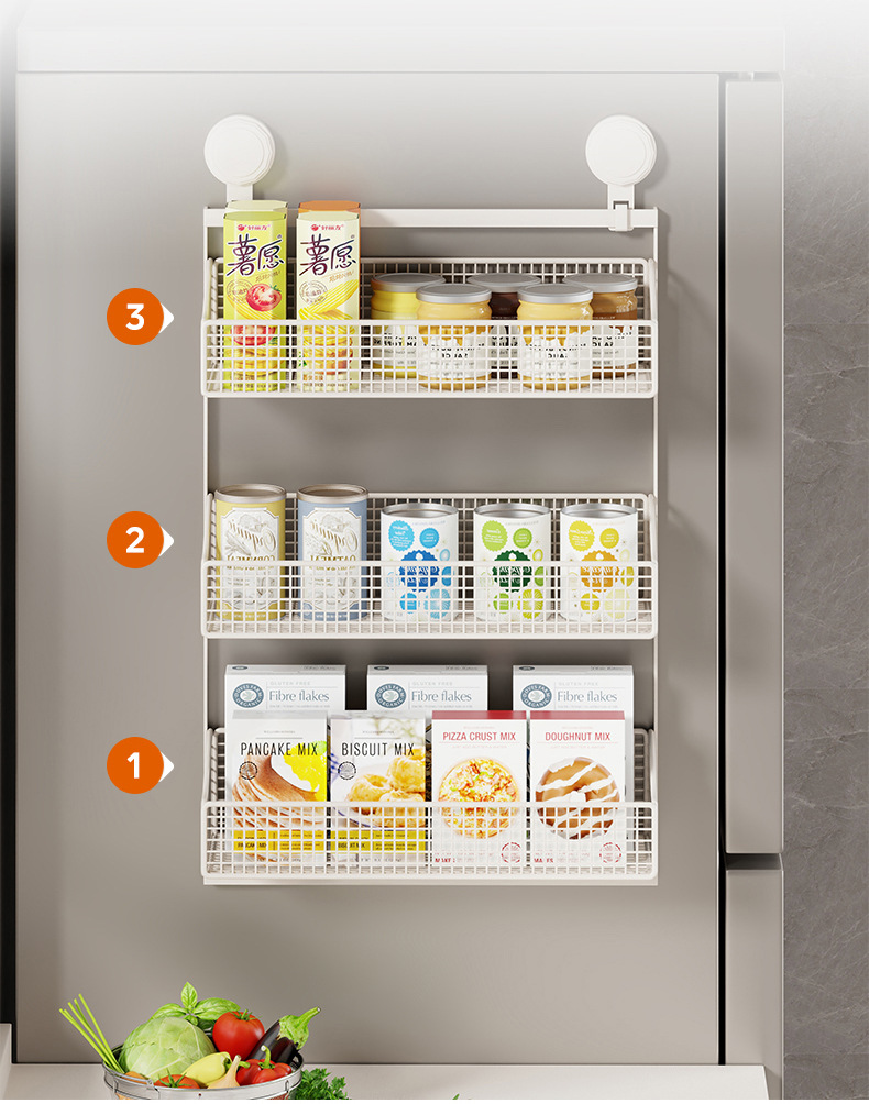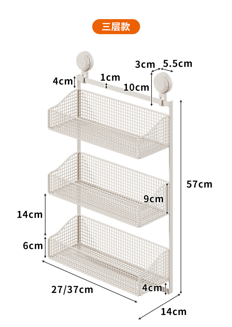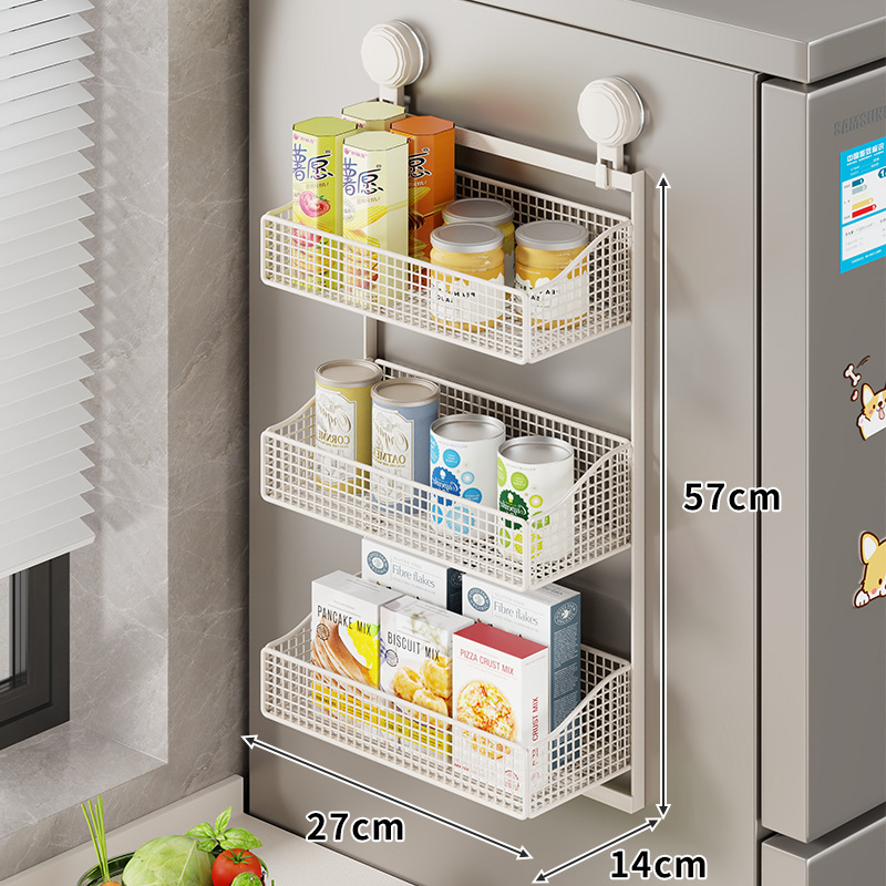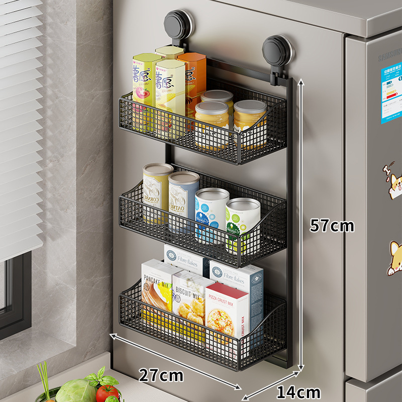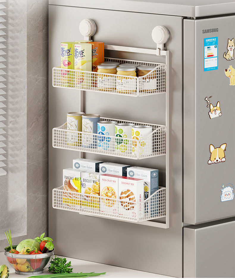 냉장고 선반 측면 수납 흡입 컵 주방 다기능 수납 선반 펀치없는 다층 벽걸이 형 조미료 선반