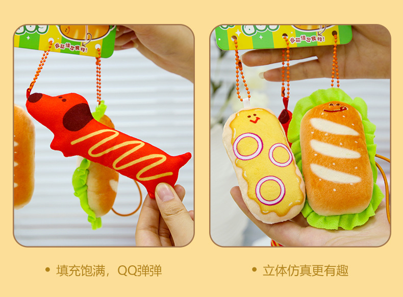 귀엽고 귀여운 빵 핫도그 열쇠고리 펜던트, 맞춤형 다용도 액세서리, 간단한 만화 펜던트, 가방 펜던트스토어 가기