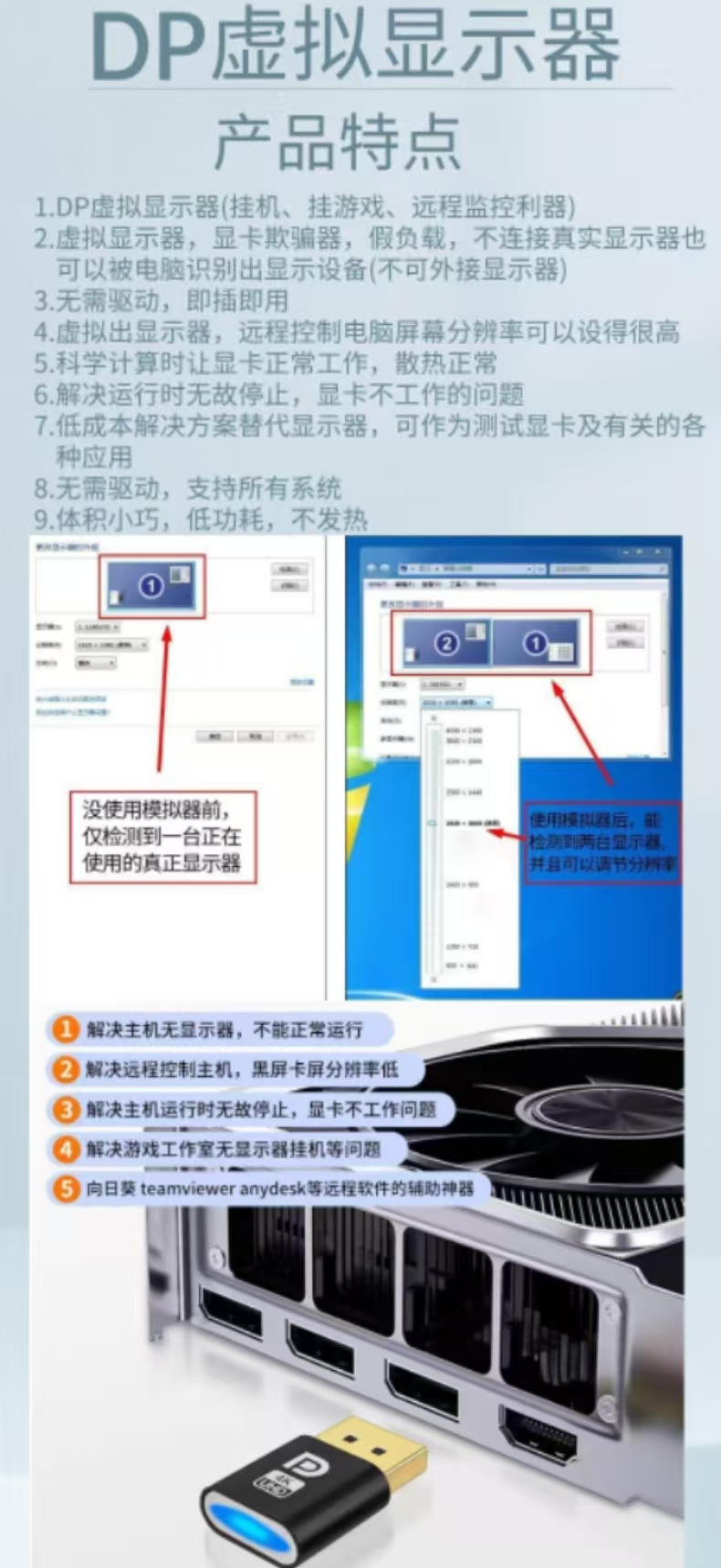 HDMI 그래픽 카드 디코더 DP 가상 디스플레이 DVI 게임 스튜디오 멀티 오픈 원격 오프라인 VGA 가짜 부하