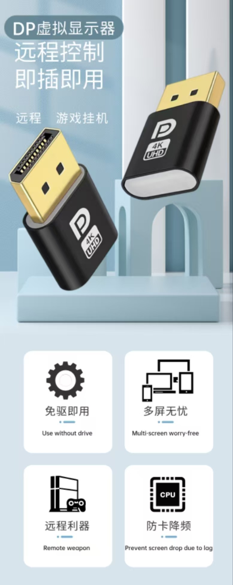 HDMI 그래픽 카드 디코더 DP 가상 디스플레이 DVI 게임 스튜디오 멀티 오픈 원격 오프라인 VGA 가짜 부하스토어 가기