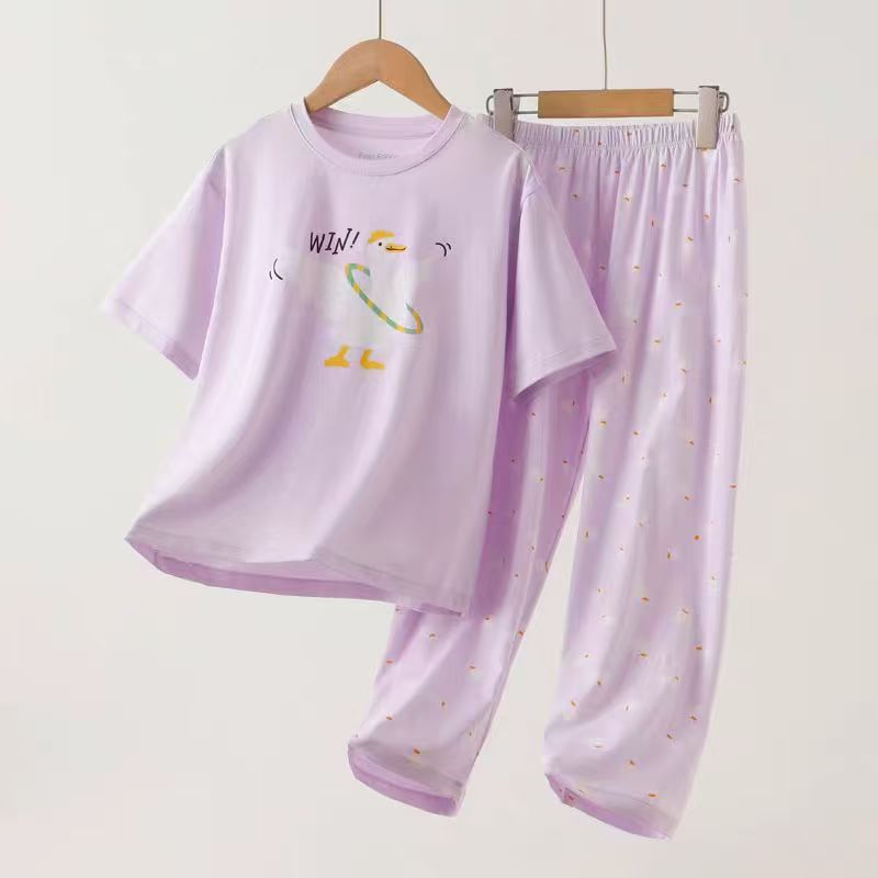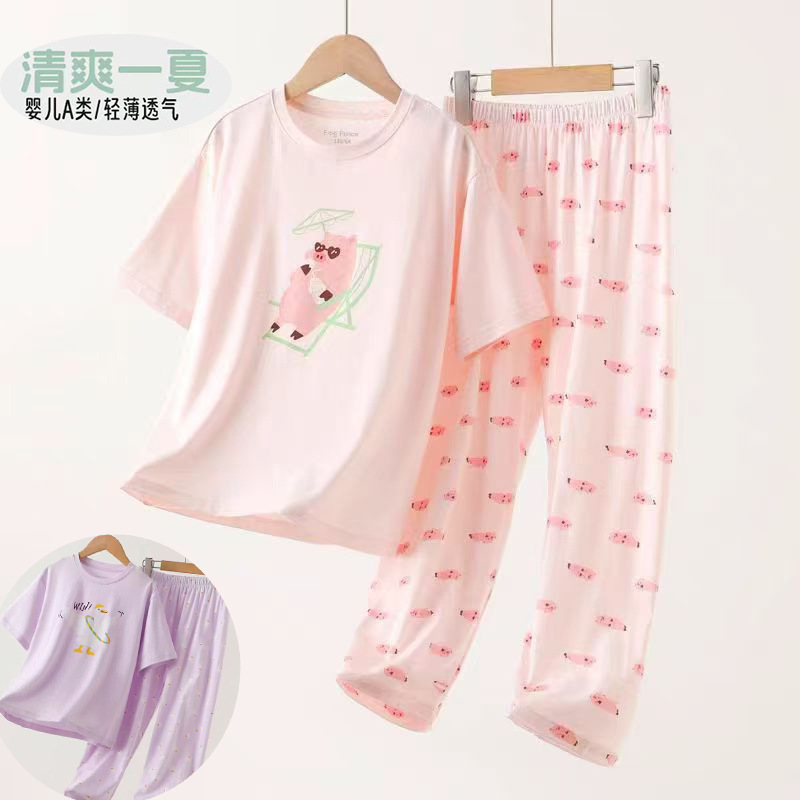 여자 홈웨어 2025 새로운 만화 잠옷 세트 여름 얇은 느슨한 통기성 반팔 투피스 세트 도매스토어 가기