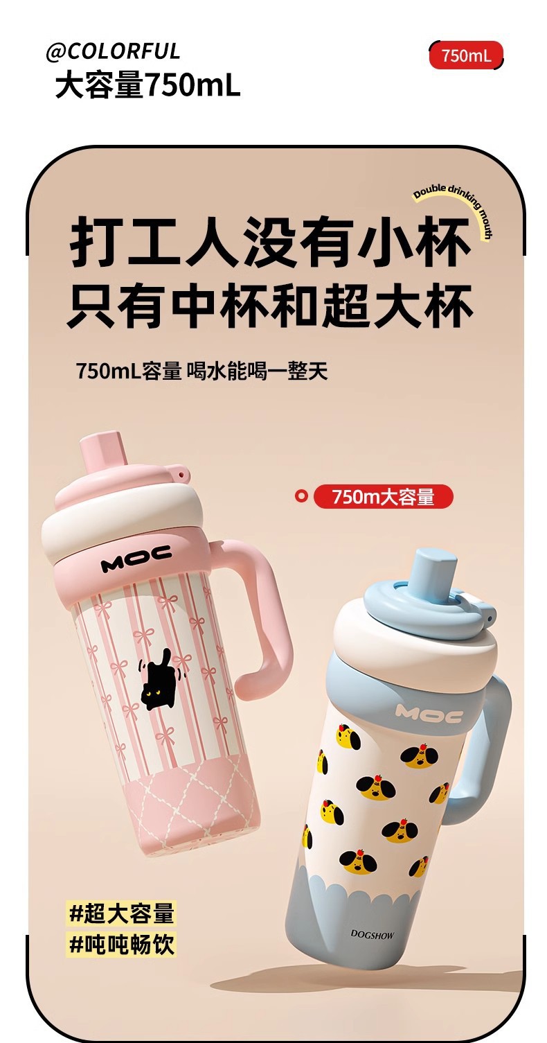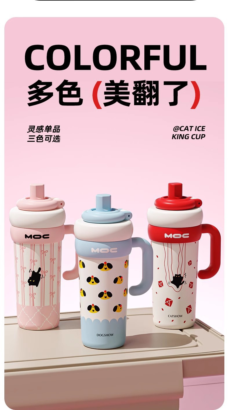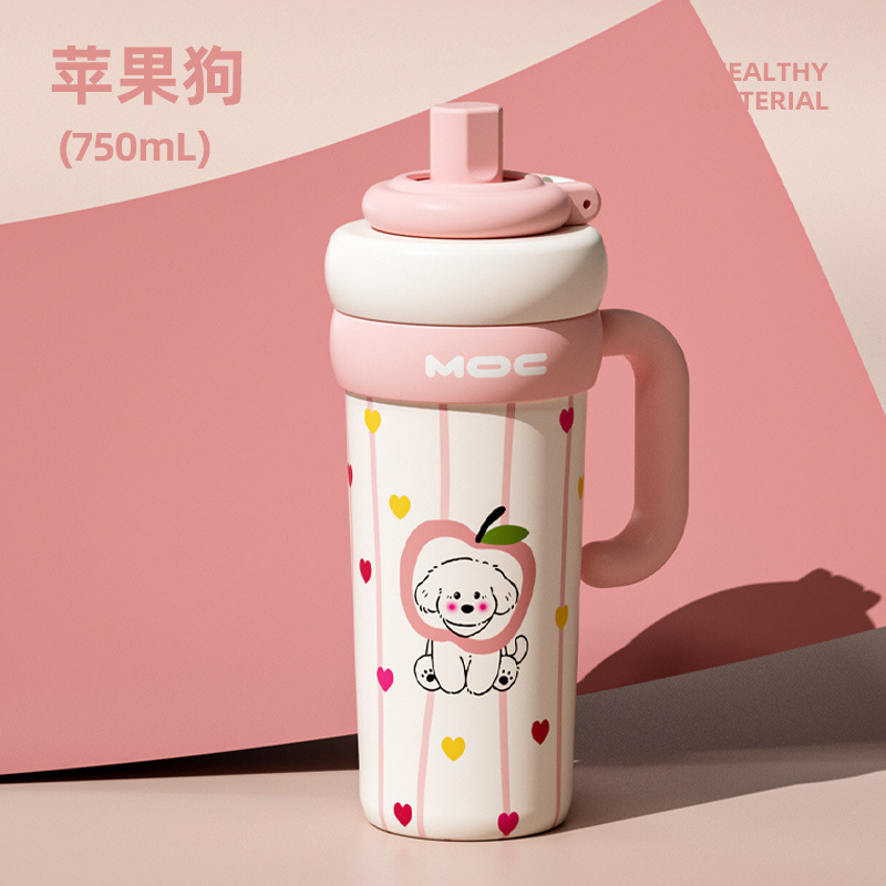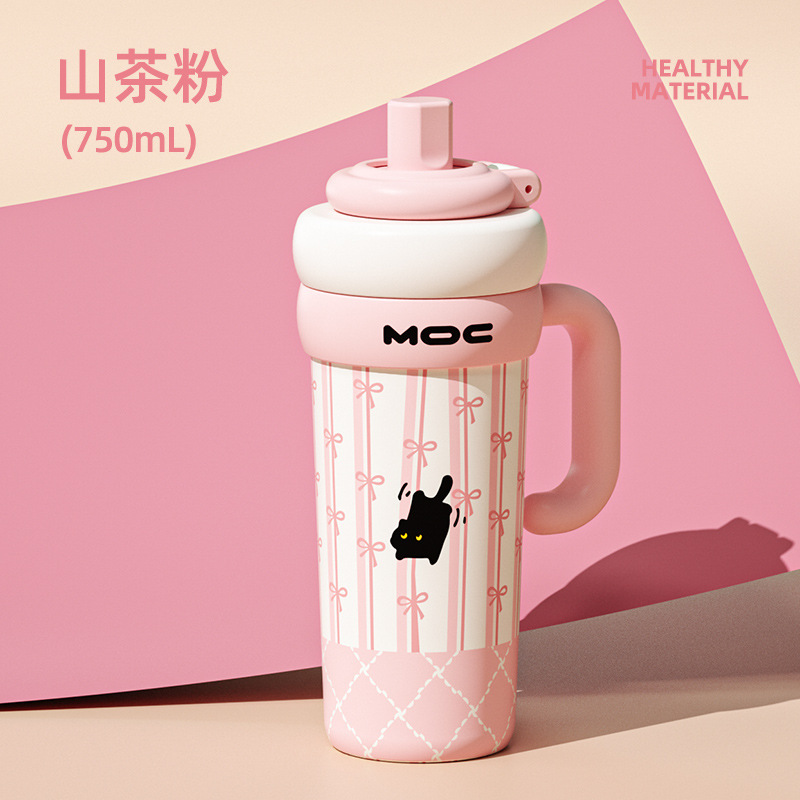 MOC 신형 귀여운 스테인리스 보온병, 여학생용, 예쁜 디자인, 대용량, 손잡이, 아이스컵, 빨대컵, 도매
