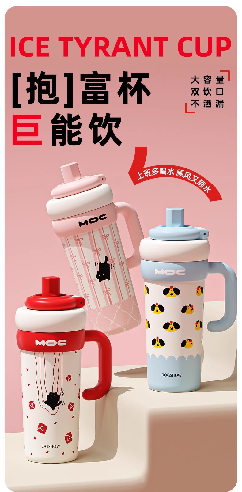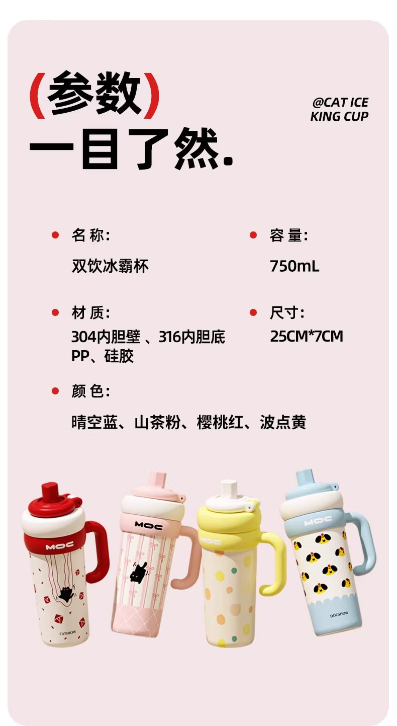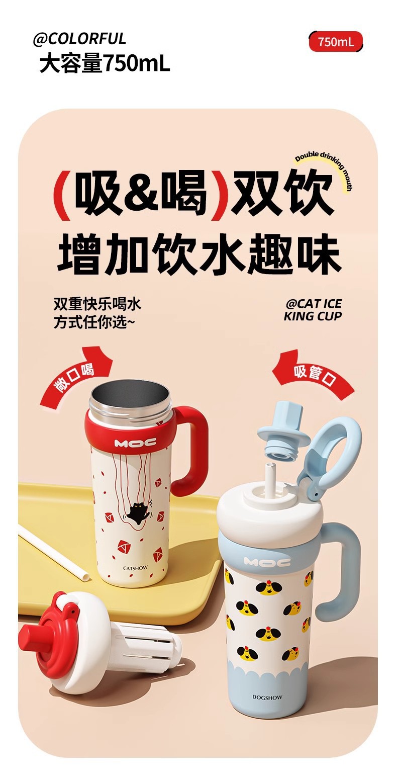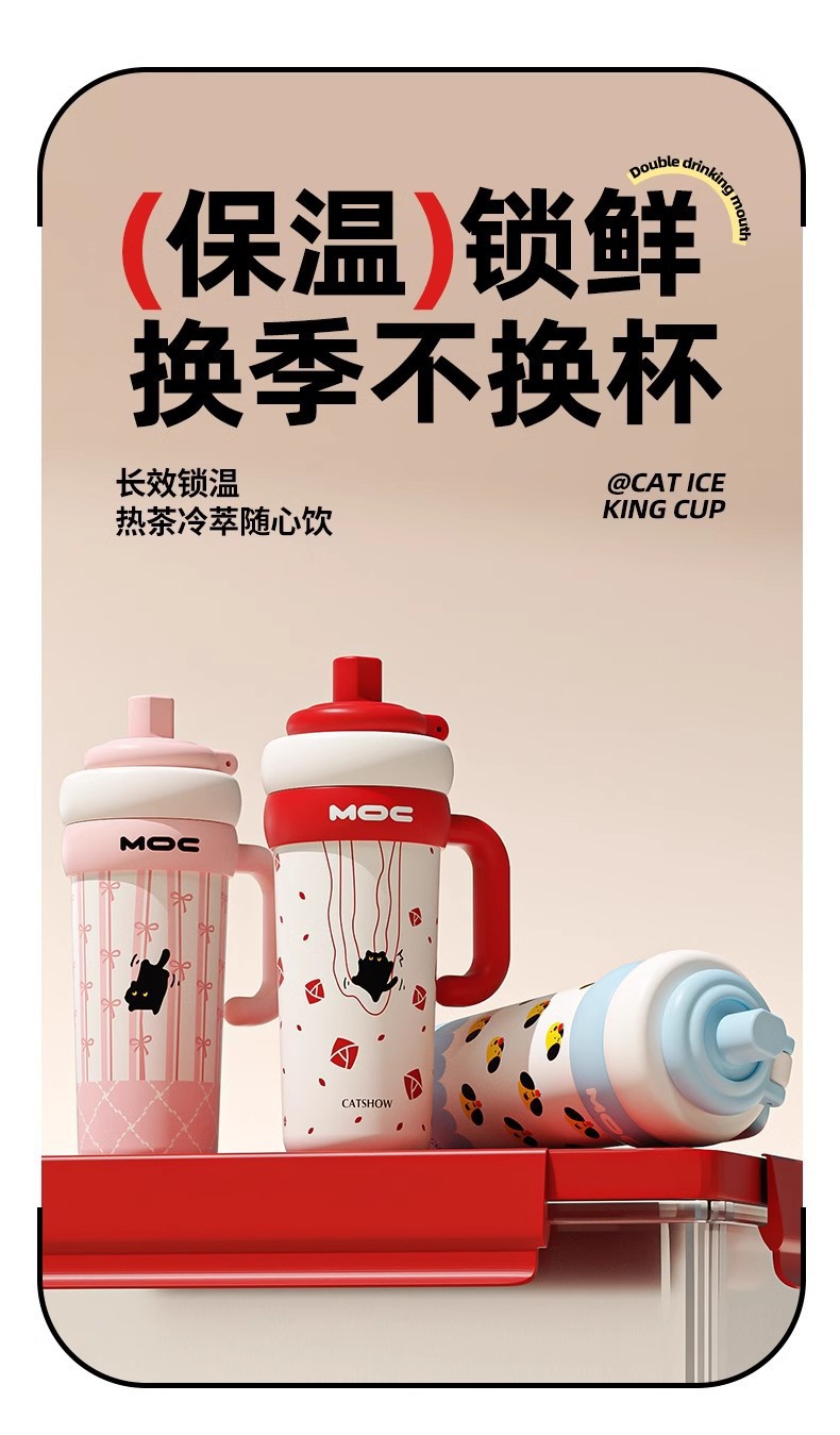 MOC 신형 귀여운 스테인리스 보온병, 여학생용, 예쁜 디자인, 대용량, 손잡이, 아이스컵, 빨대컵, 도매