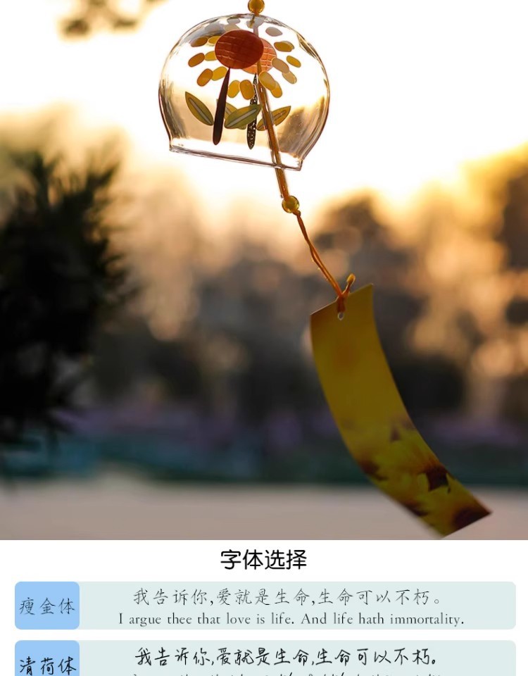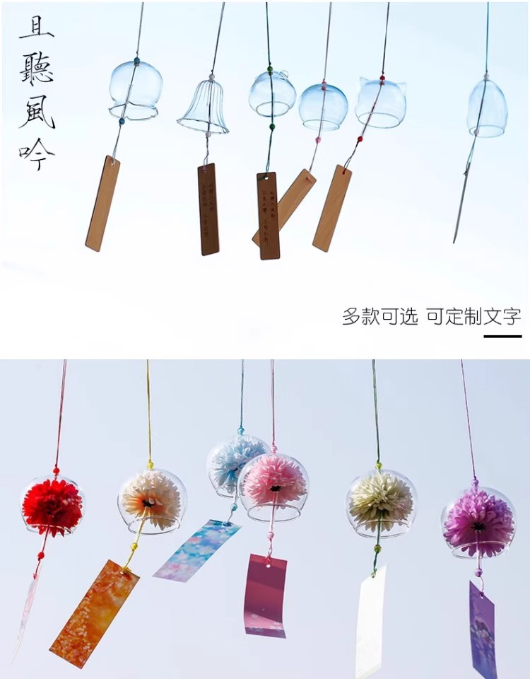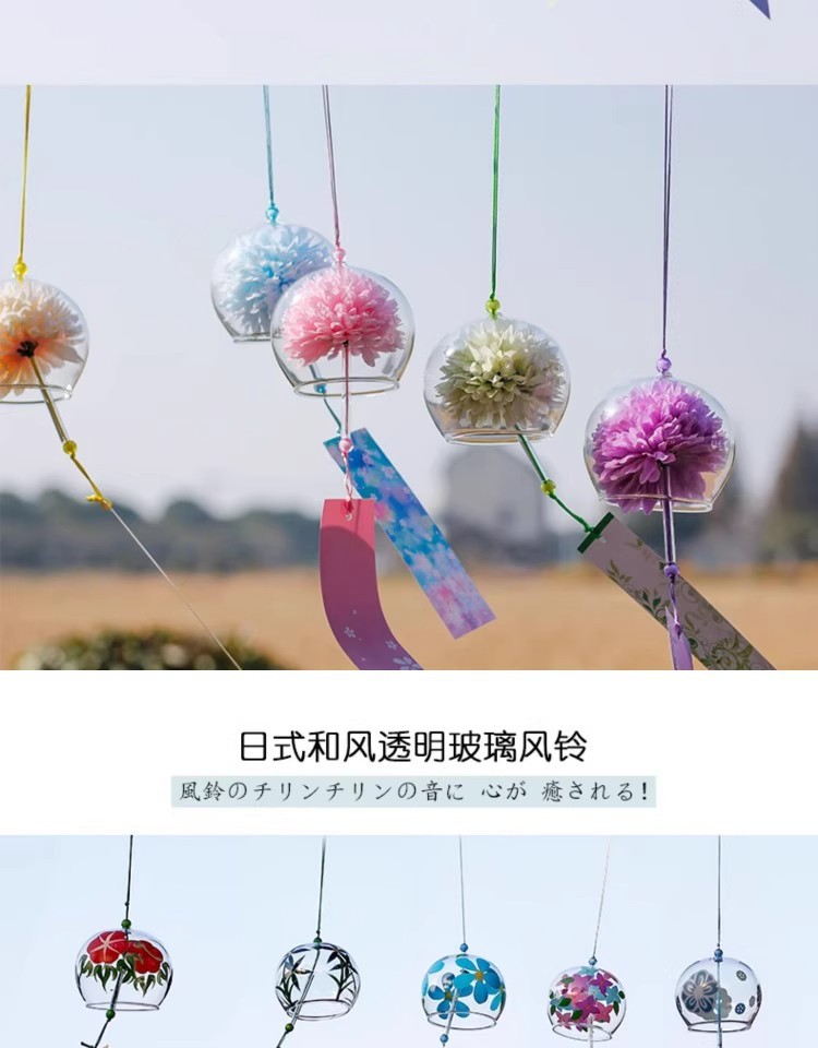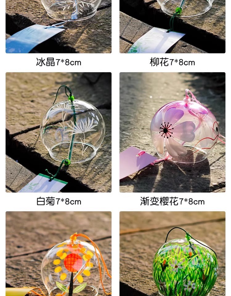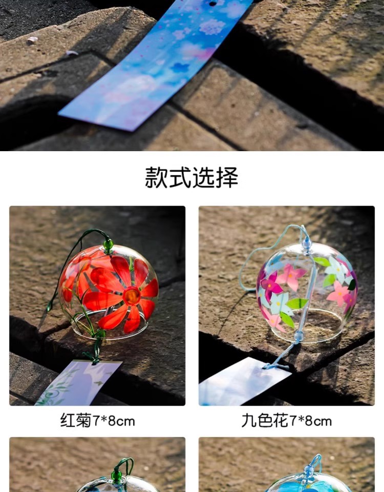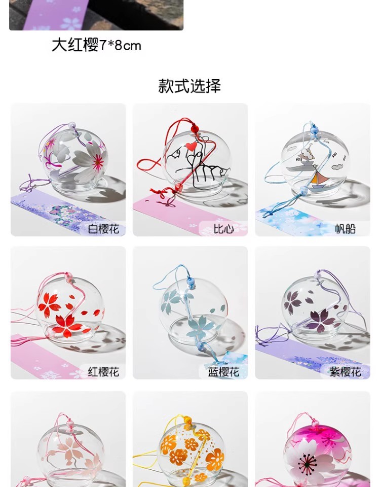 일본 벚꽃 바람 종소리 수제 유리 일본식 선물 펜던트 귀여운 작은 펜던트 신선한 침실 펜던트