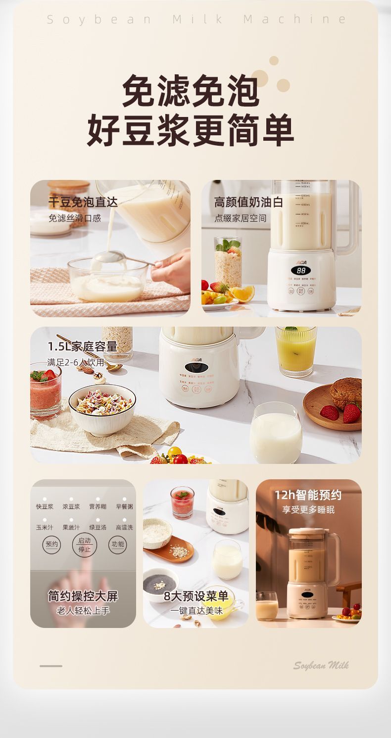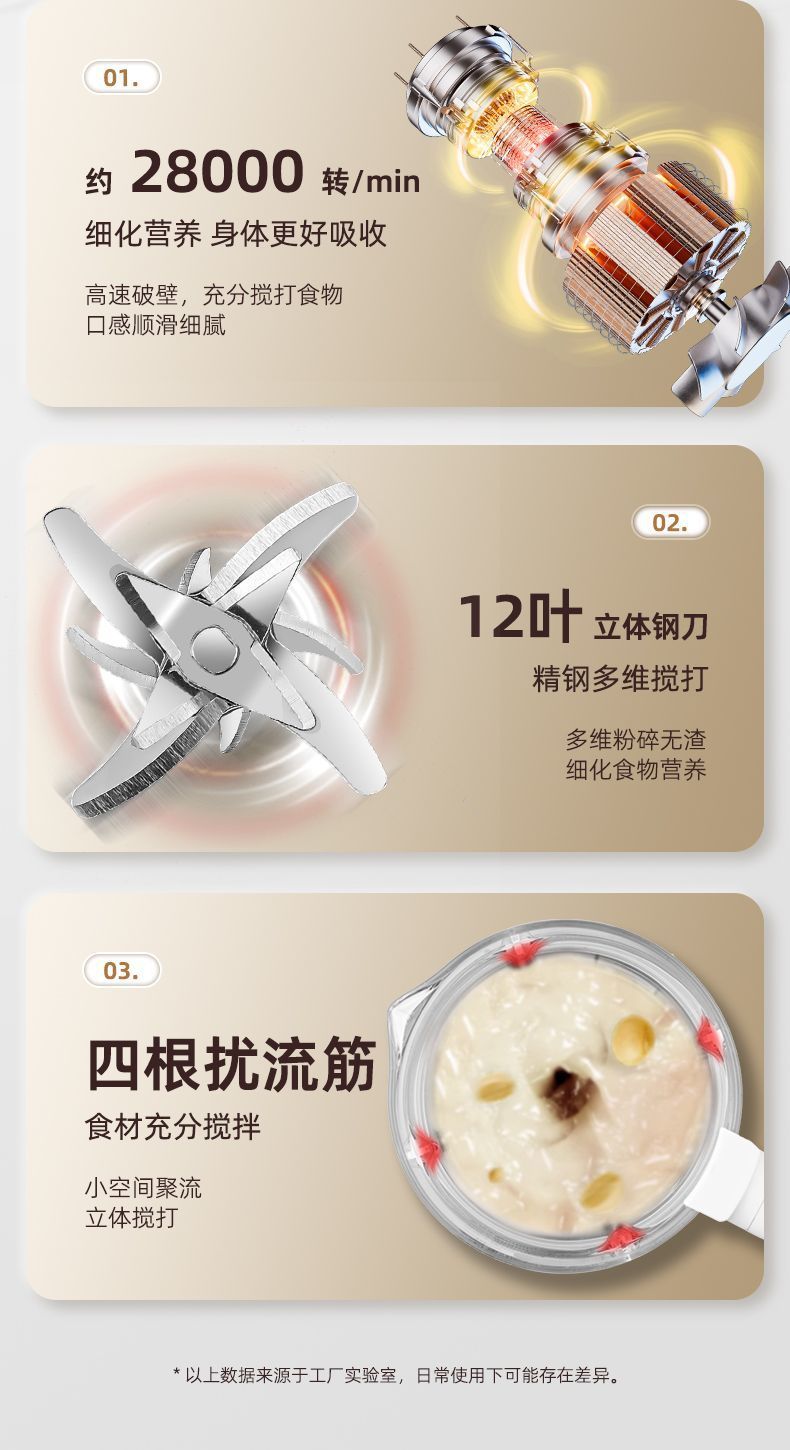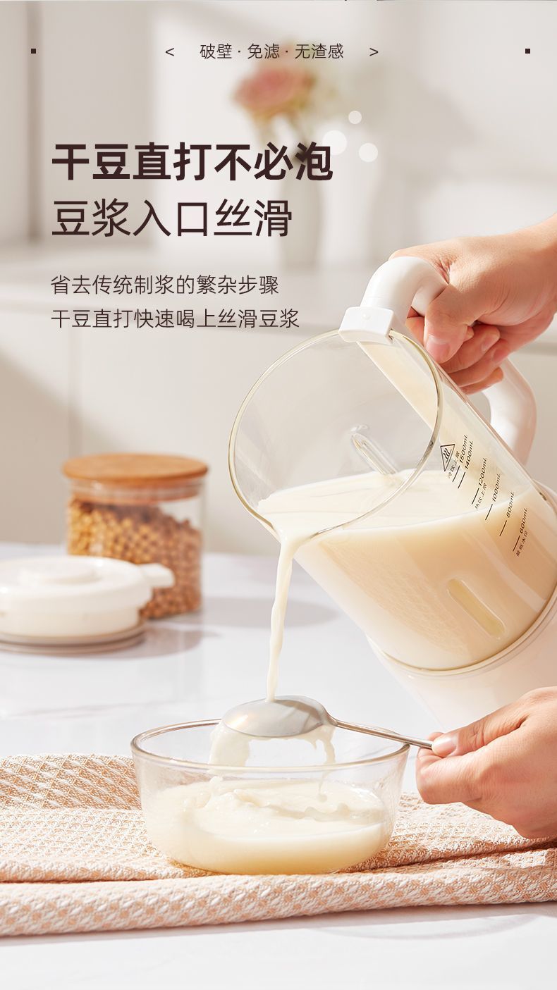 • 1200ML [걸림 방지 바닥 12날 칼, 필터 없음, 벽 깨는 두유 기계]