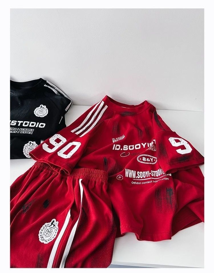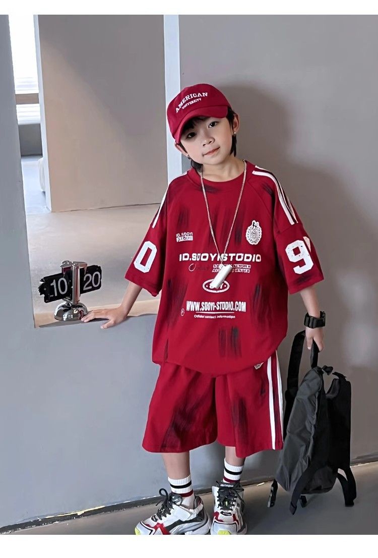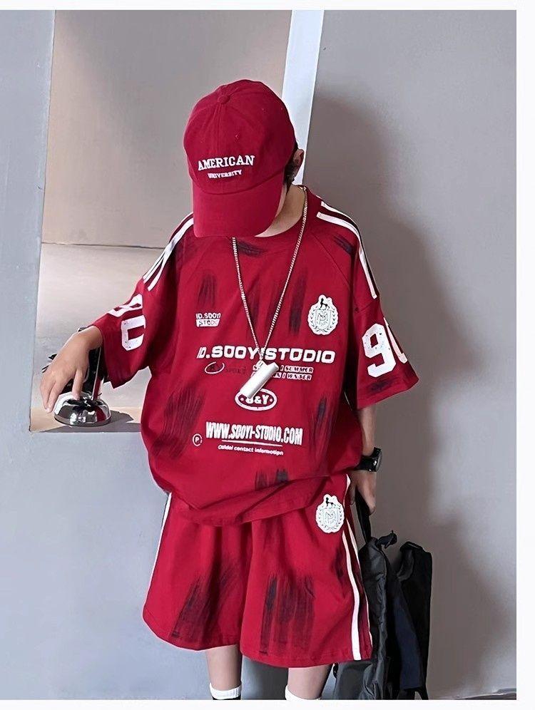 남아용 여름 반팔 양복, 새로운 스타일, 중대형 남아용 반바지, 멋진 아동용 여름 옷, 남아용 투피스 세트, 트렌디함